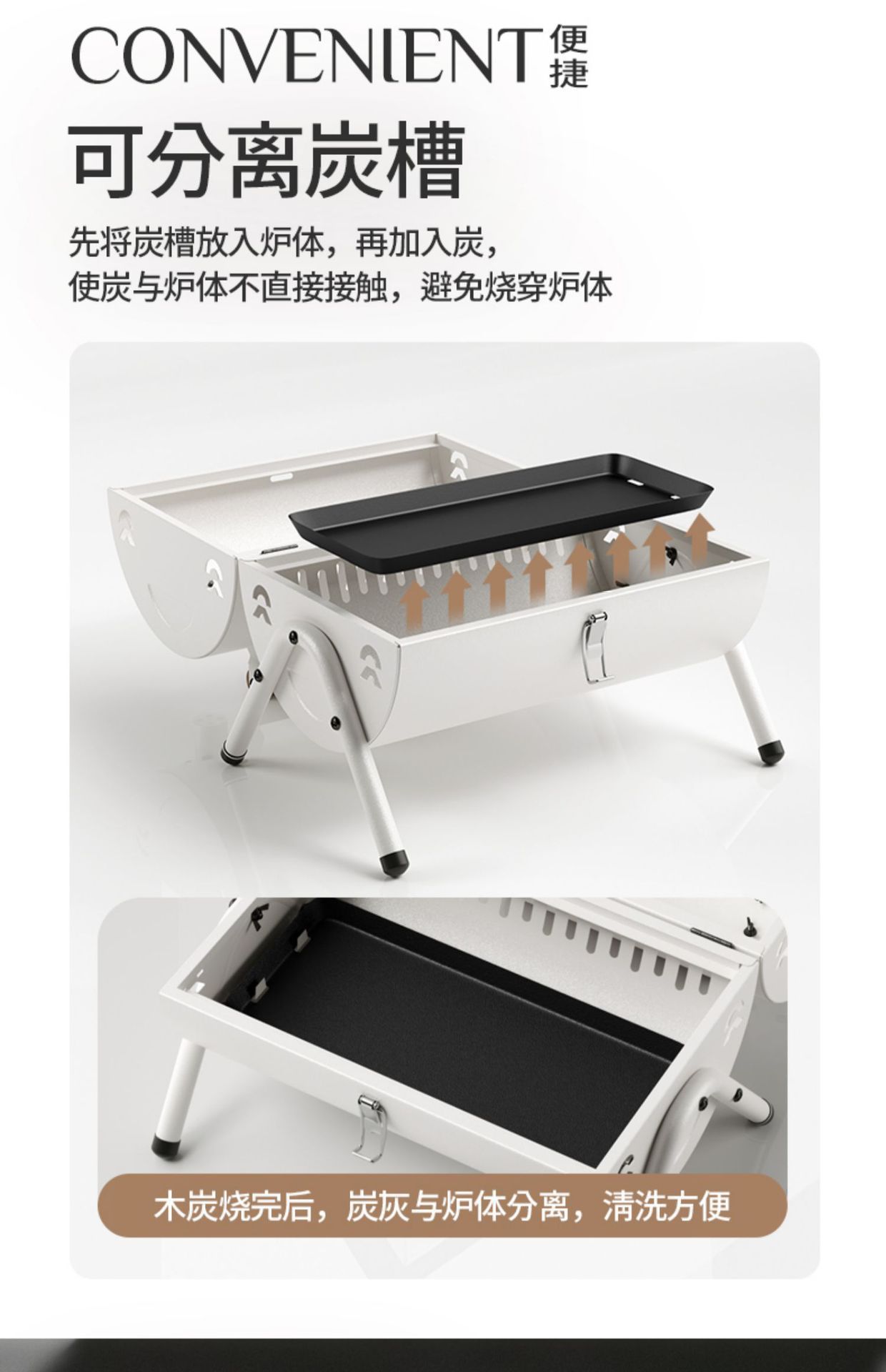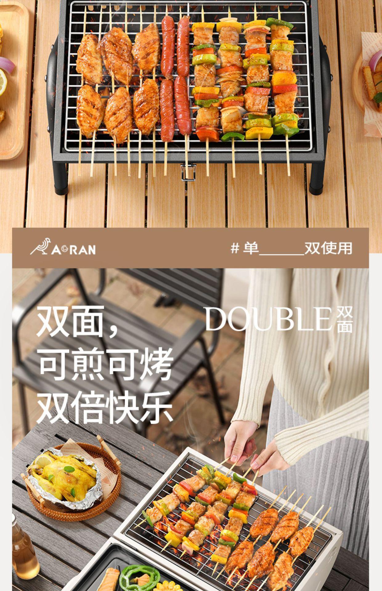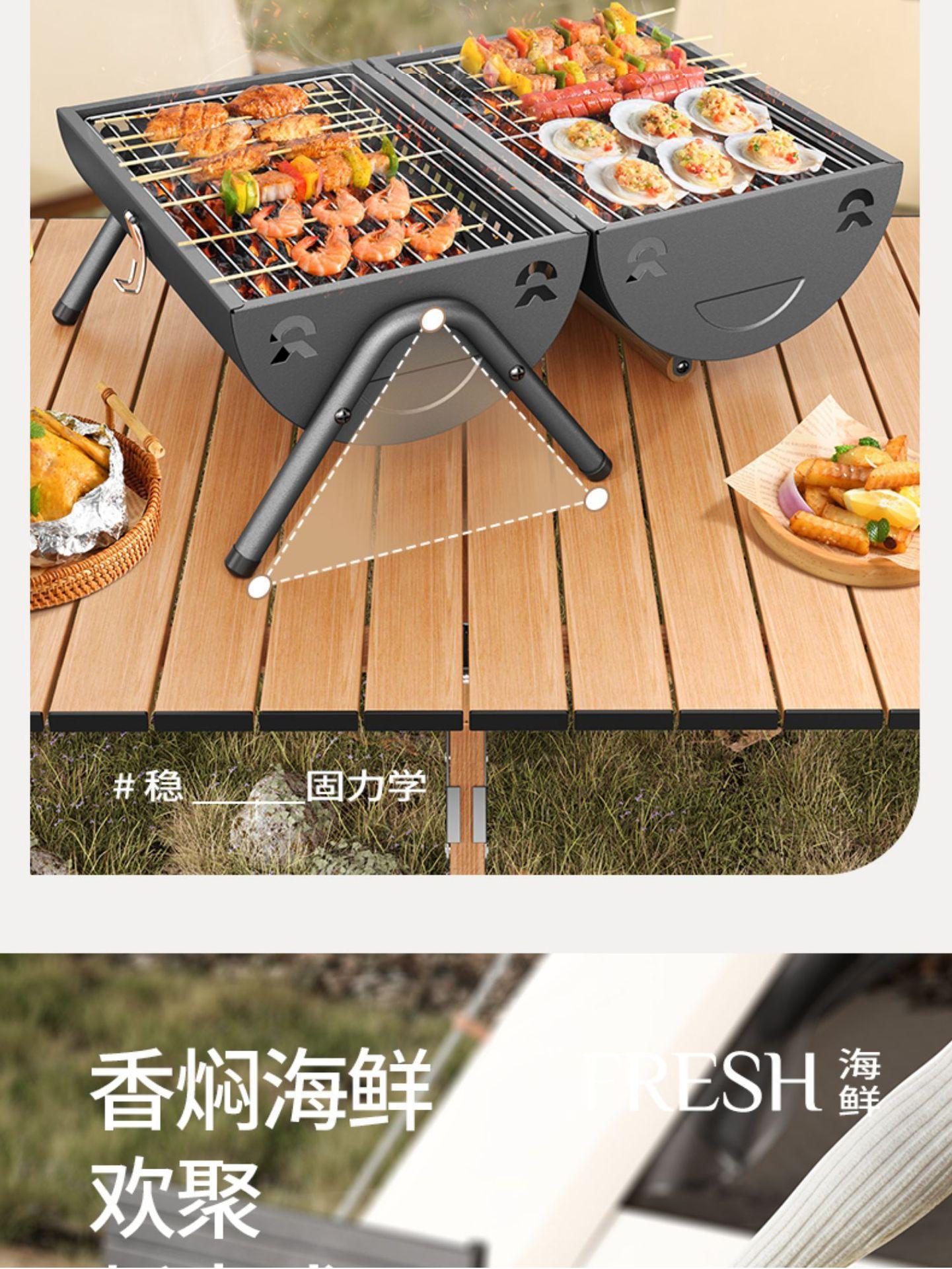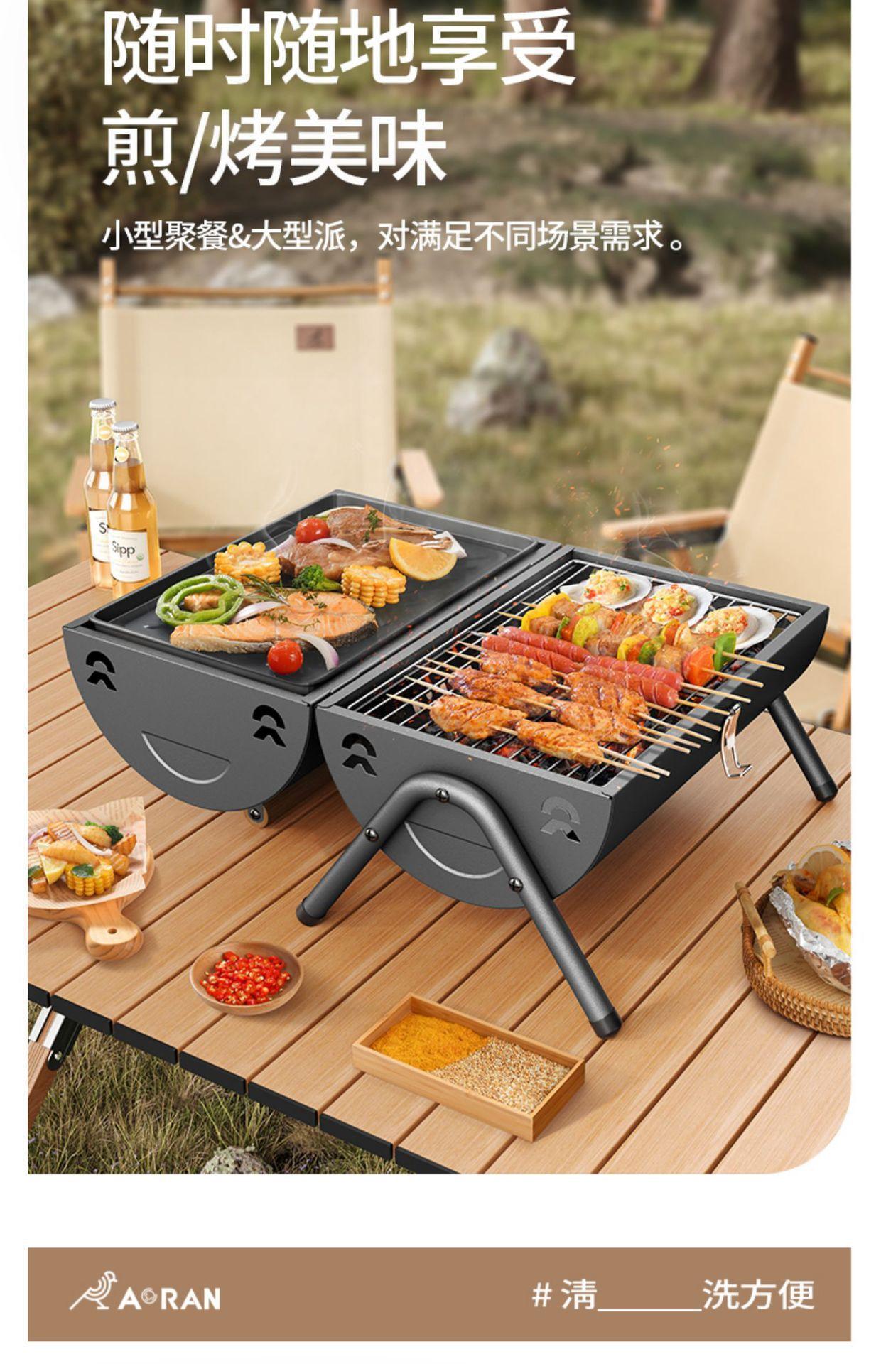 Horno de barbacoa al aire libre de doble cara, portátil, de doble uso, sencillo, para el hogar, para camping, picnic, pequeño horno portátil de carbón.