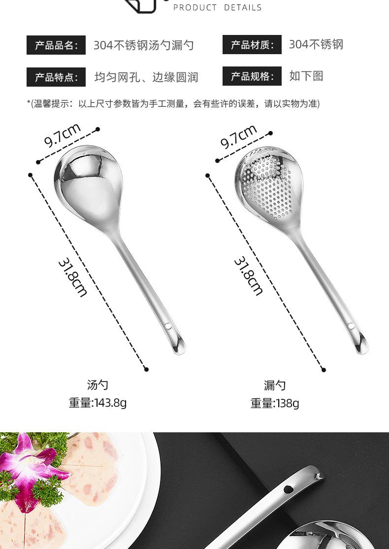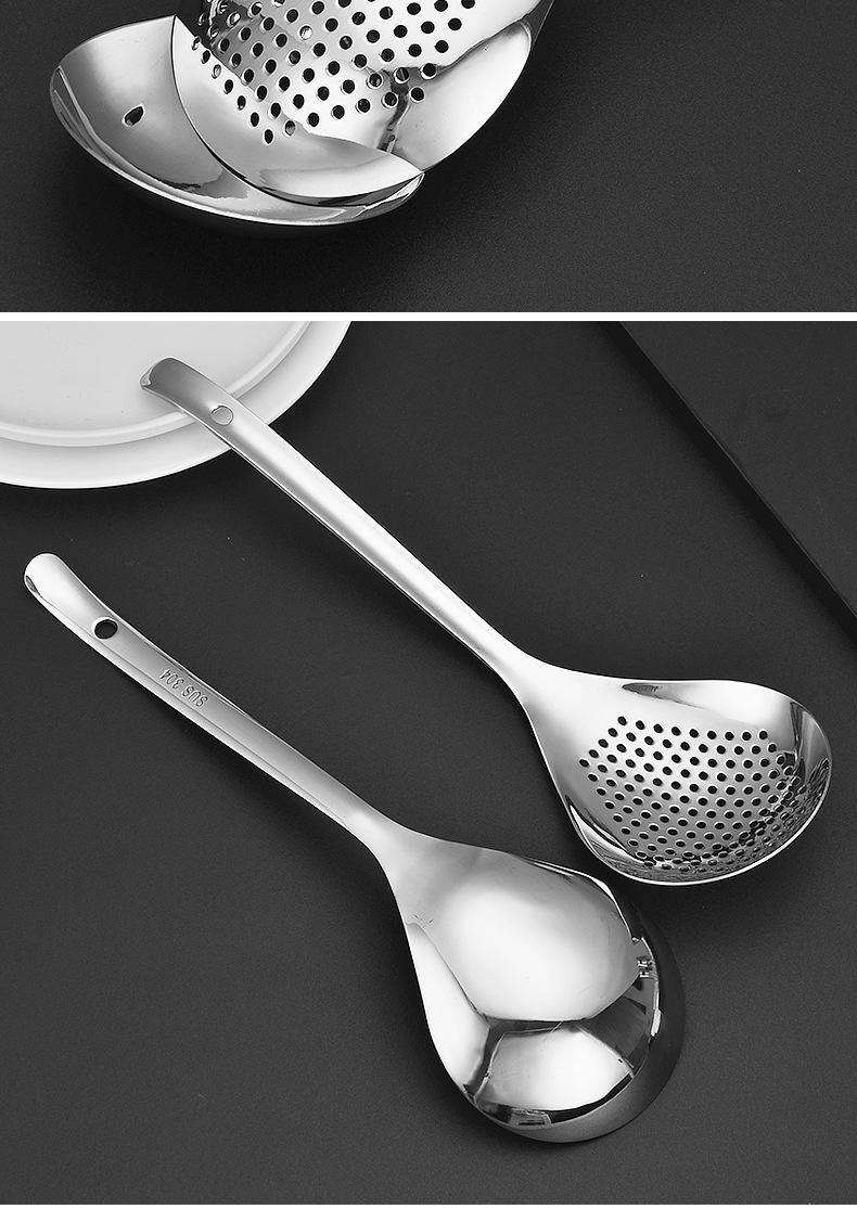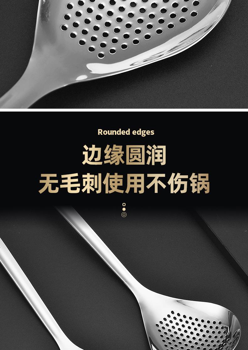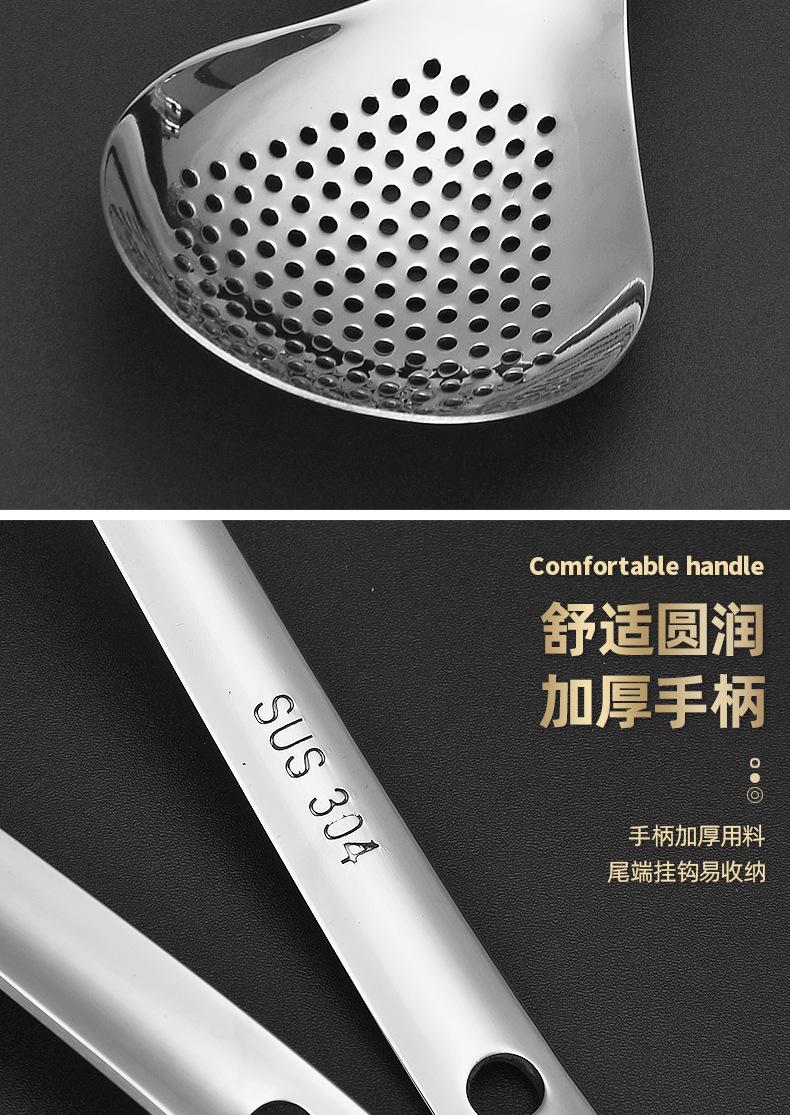 Colador de aceite de una sola pieza engrosado de acero inoxidable 304, colador de cuchara, colador de drenaje para fideos, colador de pimienta grande