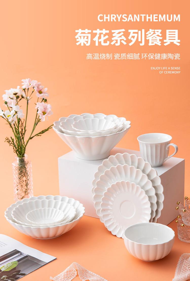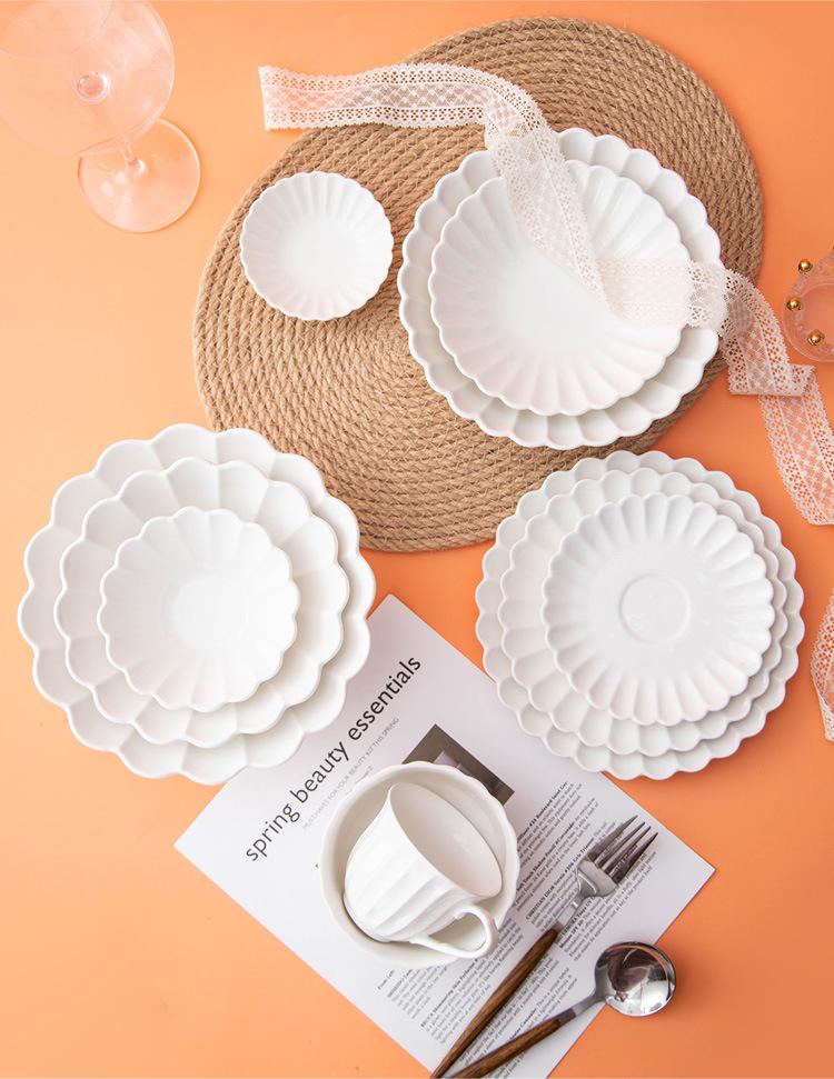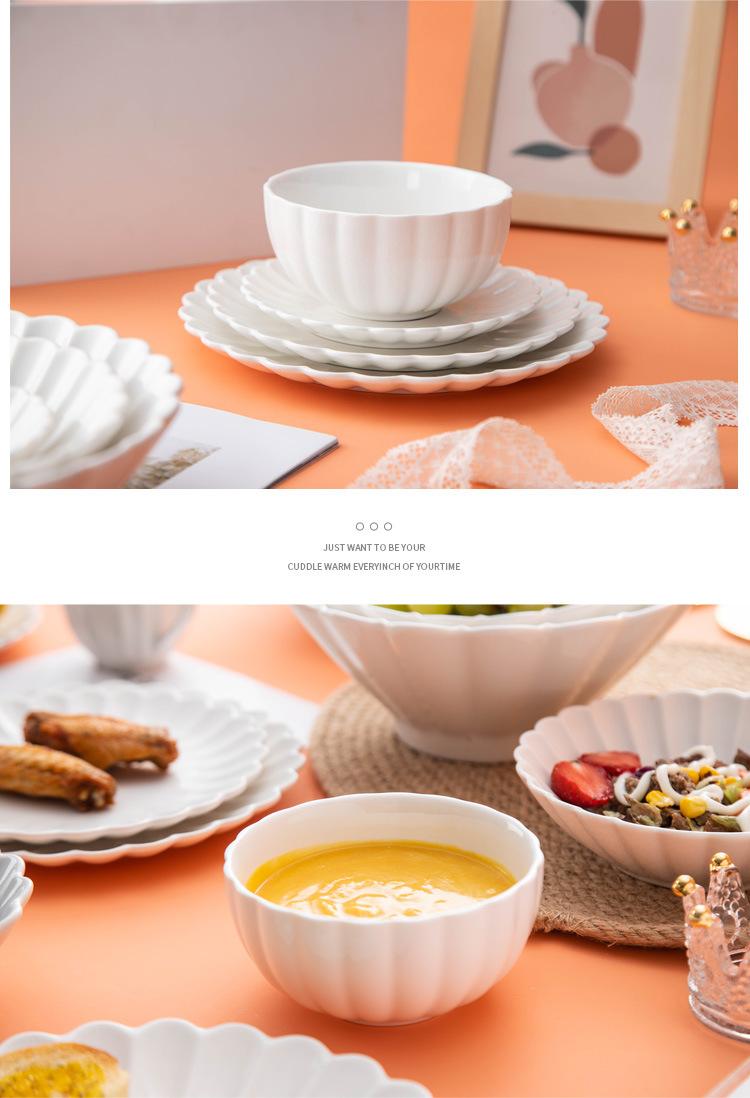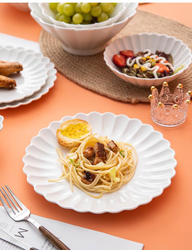 Plato de Crisantemo de Cerámica Blanco Puro Plato de Encaje Plato Creativo para Comida Occidental Plato para Pasta Plato para Snacks Caseros Tazón para Ensalada de Frutas
