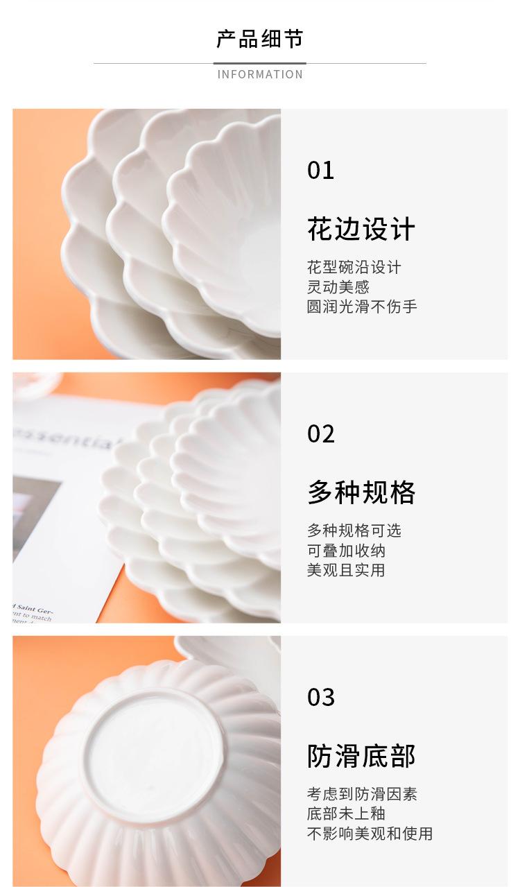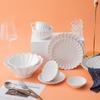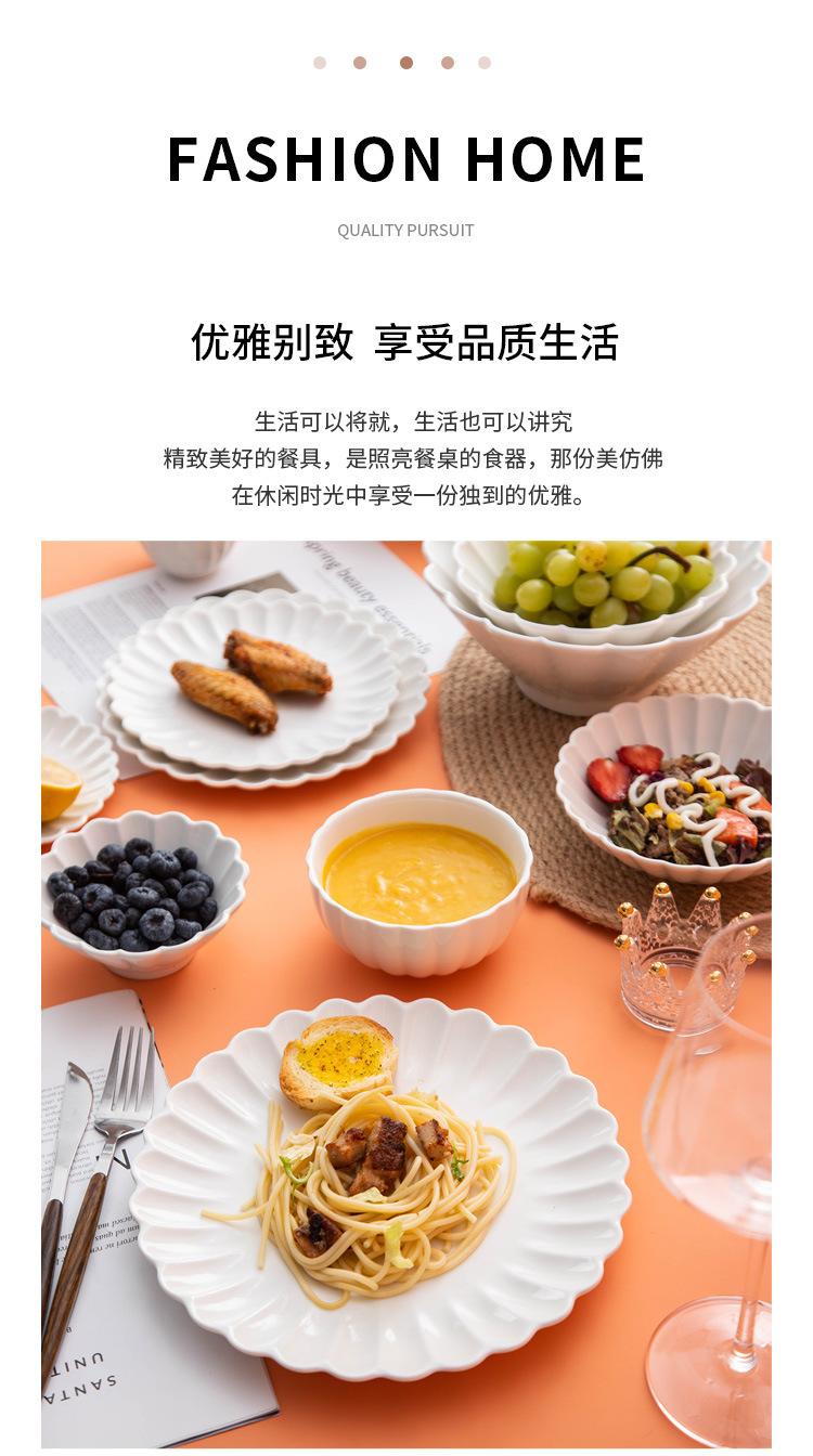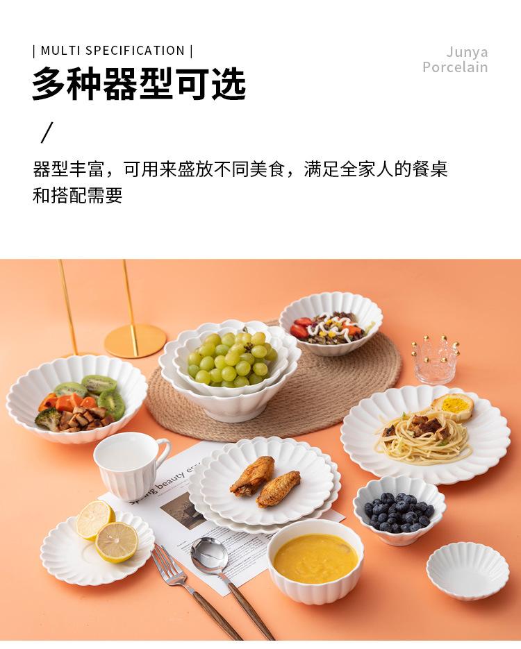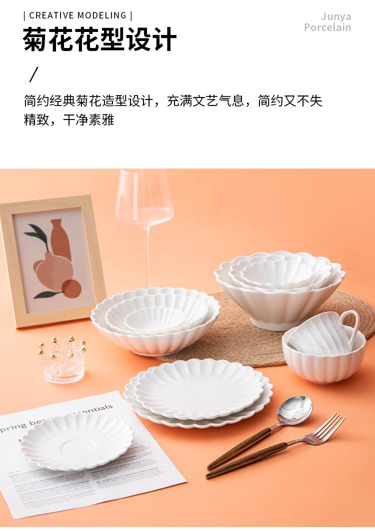 Plato de Crisantemo de Cerámica Blanco Puro Plato de Encaje Plato Creativo para Comida Occidental Plato para Pasta Plato para Snacks Caseros Tazón para Ensalada de Frutas