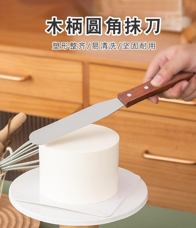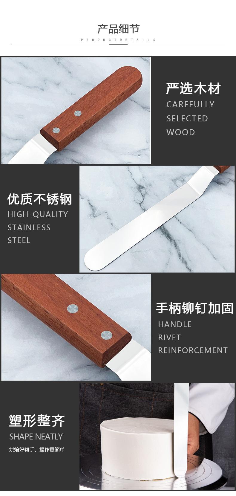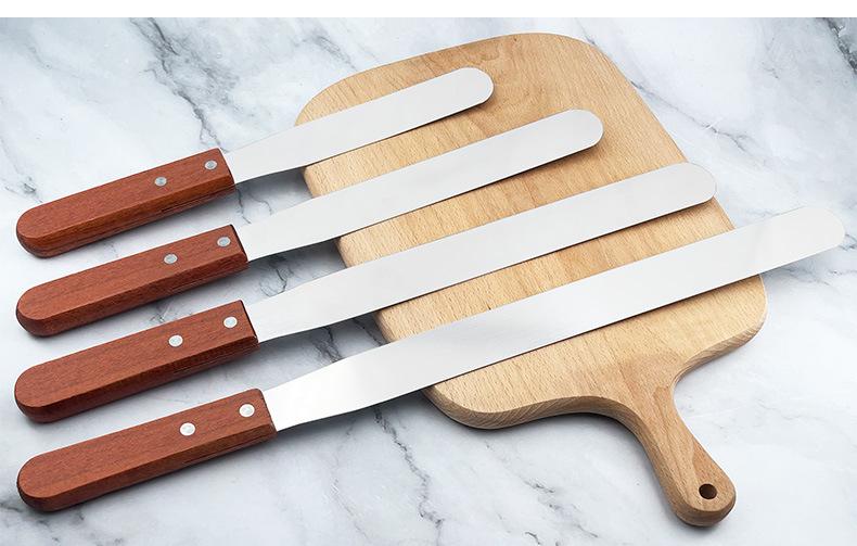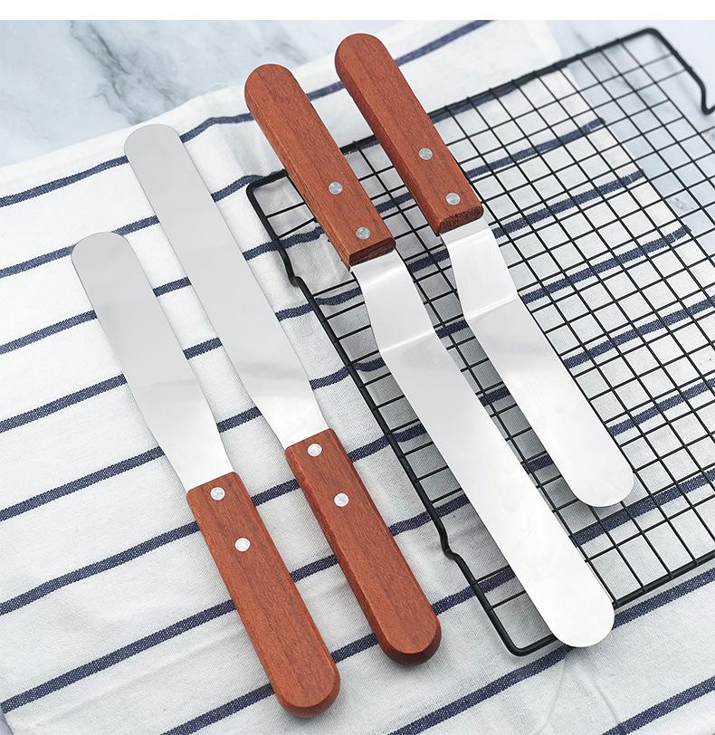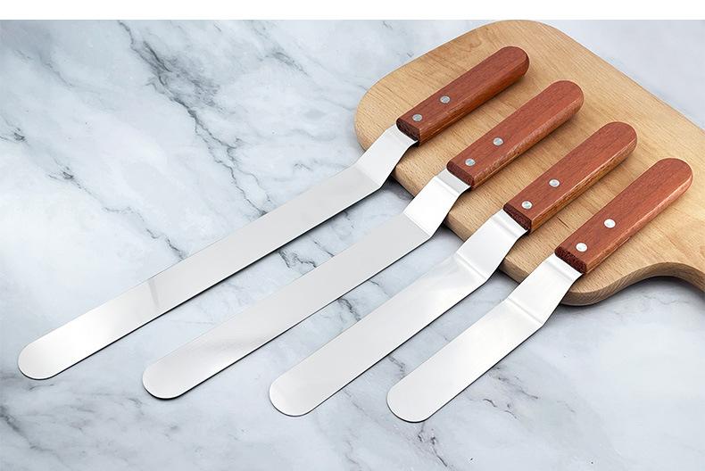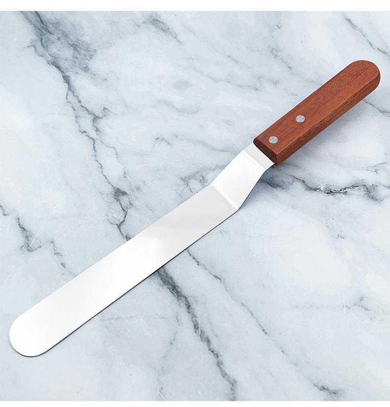 Espátula redondeada con mango de madera, espátula para hornear de acero inoxidable, espátula multifuncional y duradera para pasteles, cuchillo moldeador, espátula para crema.