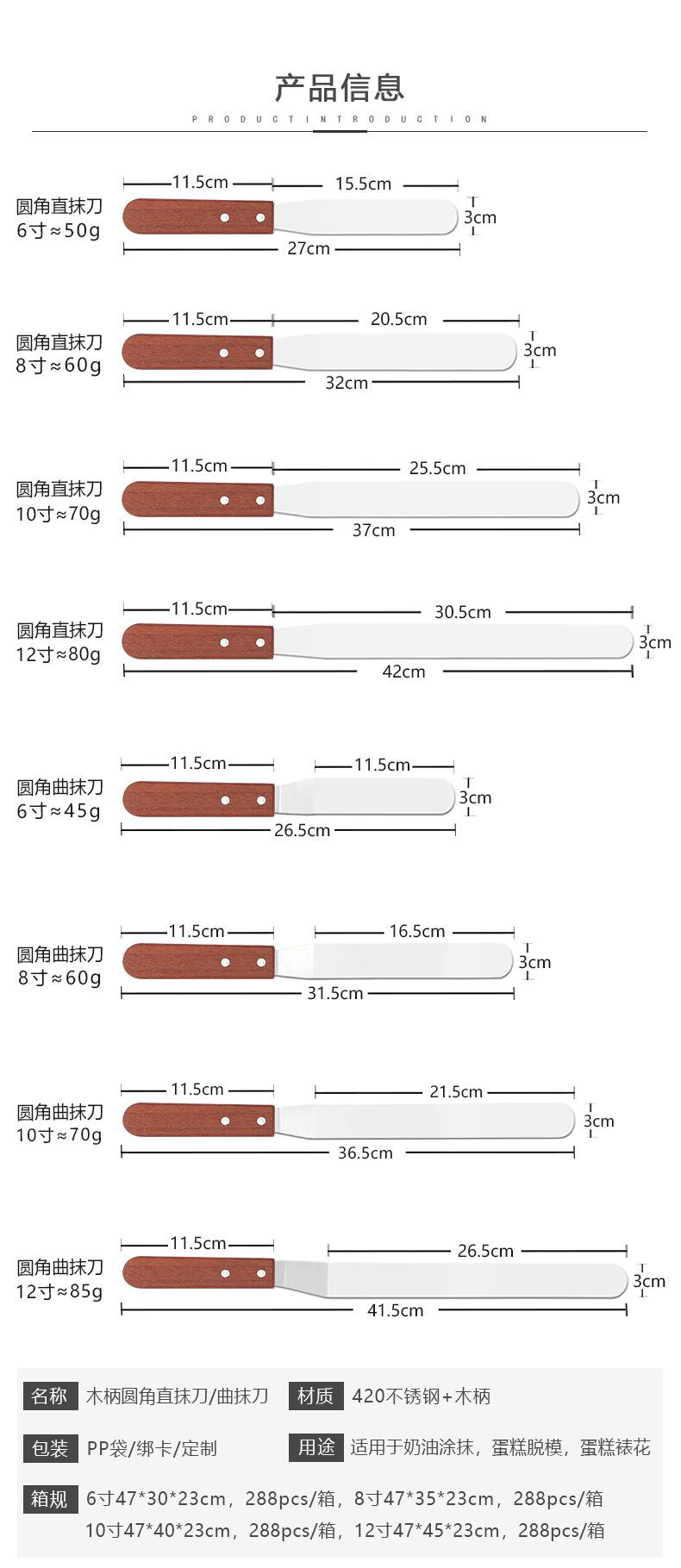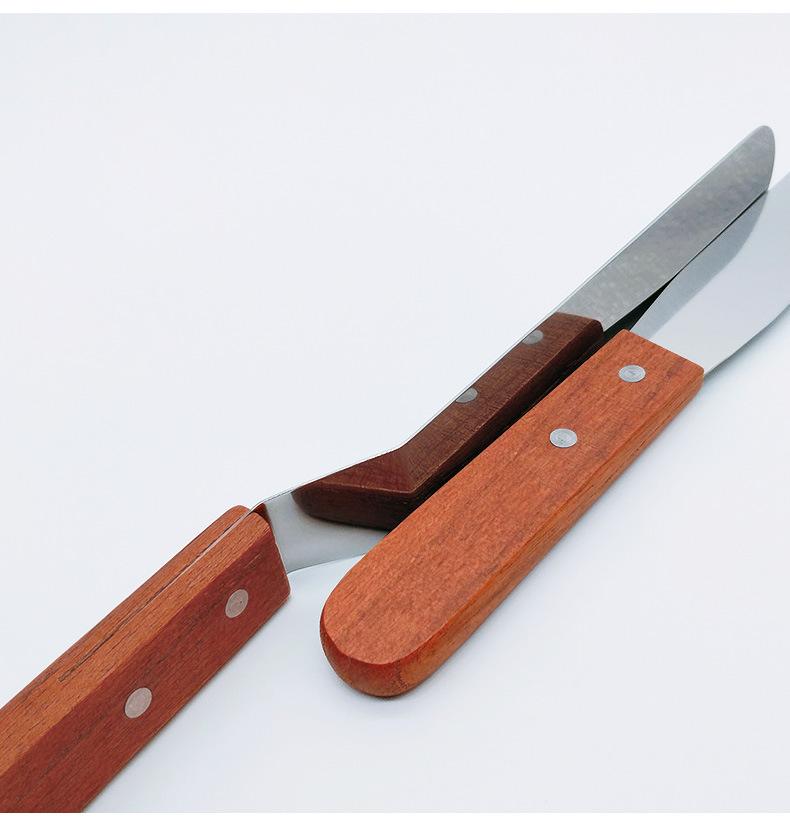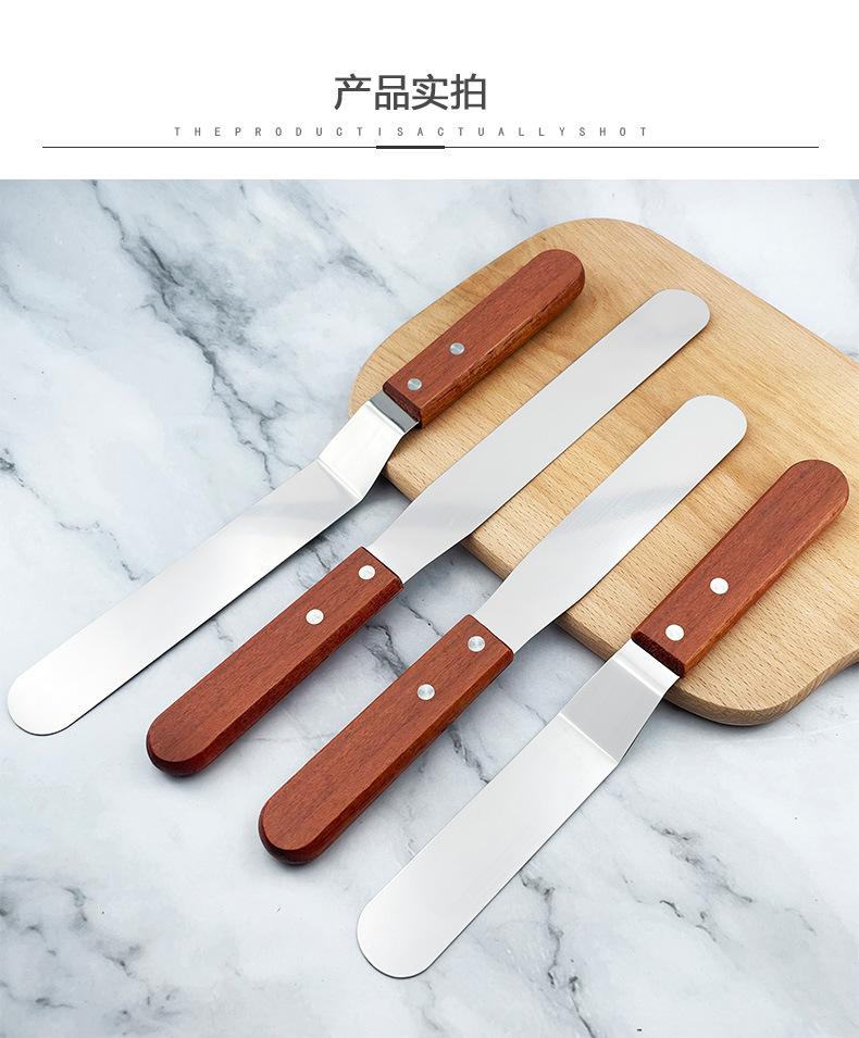 Espátula redonda de mango de madera raspador de acero inoxidable para hornear multifuncional duradero raspador para pasteles cuchillo para dar forma espátula para crema