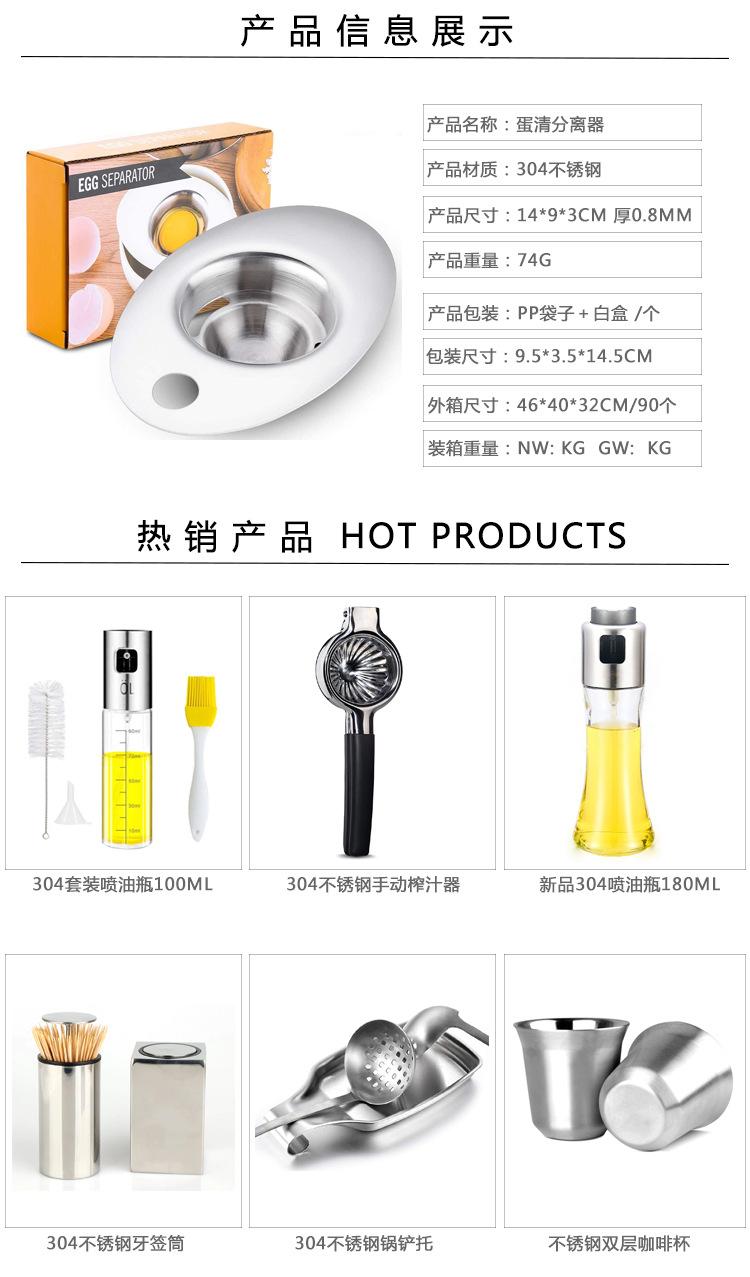 Nuevo separador de clara de huevo de acero inoxidable 304, separador de yema de huevo, separador de clara de huevo, filtro de líquido de huevo, repostería de cocina