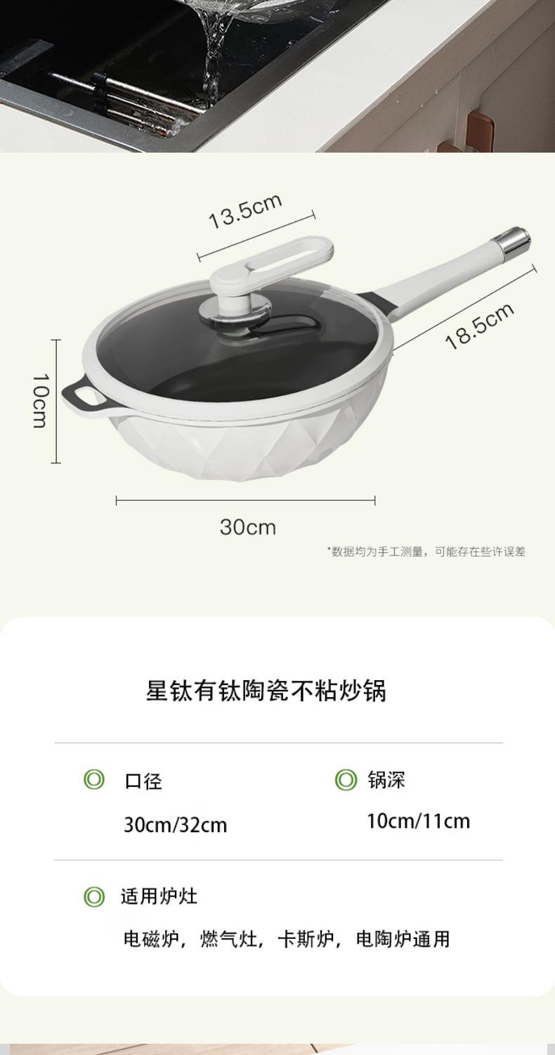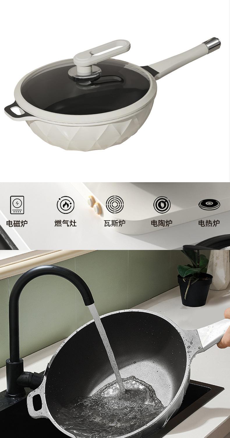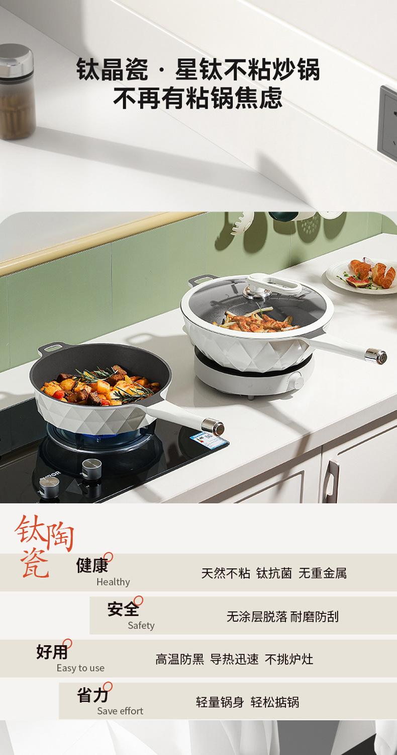 Olla de titanio, olla de cerámica, sartén antiadherente, wok doméstico, antiadherente sin humo, fácil de limpiar, cocina de inducción, estufa de gas universal