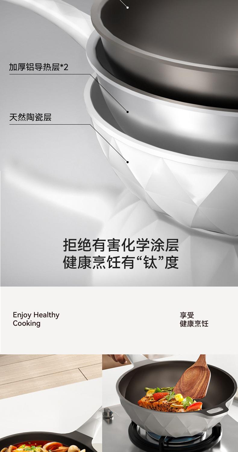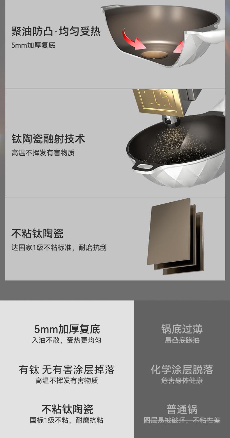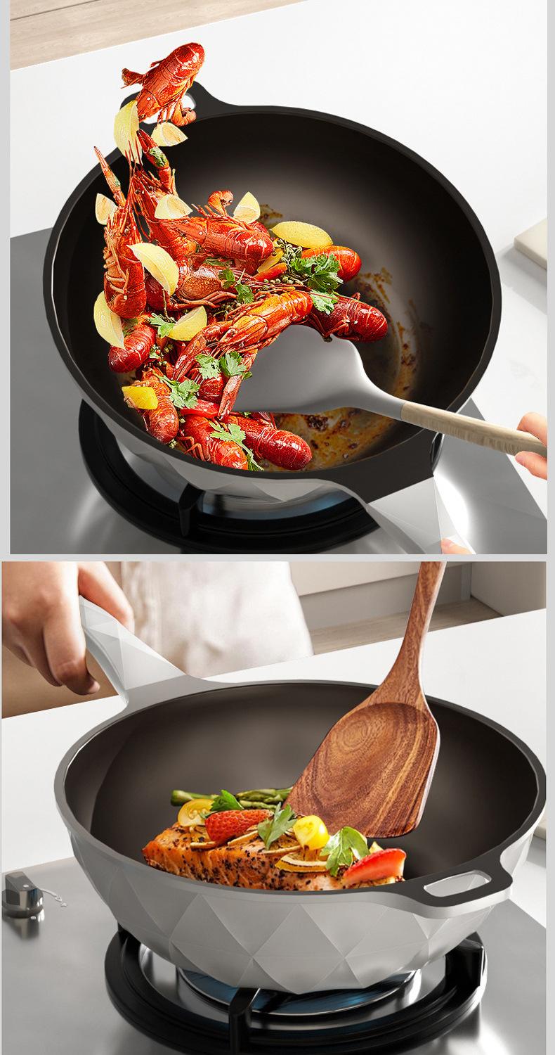 Olla de titanio, olla de cerámica, sartén antiadherente, wok doméstico, antiadherente sin humo, fácil de limpiar, cocina de inducción, estufa de gas universal