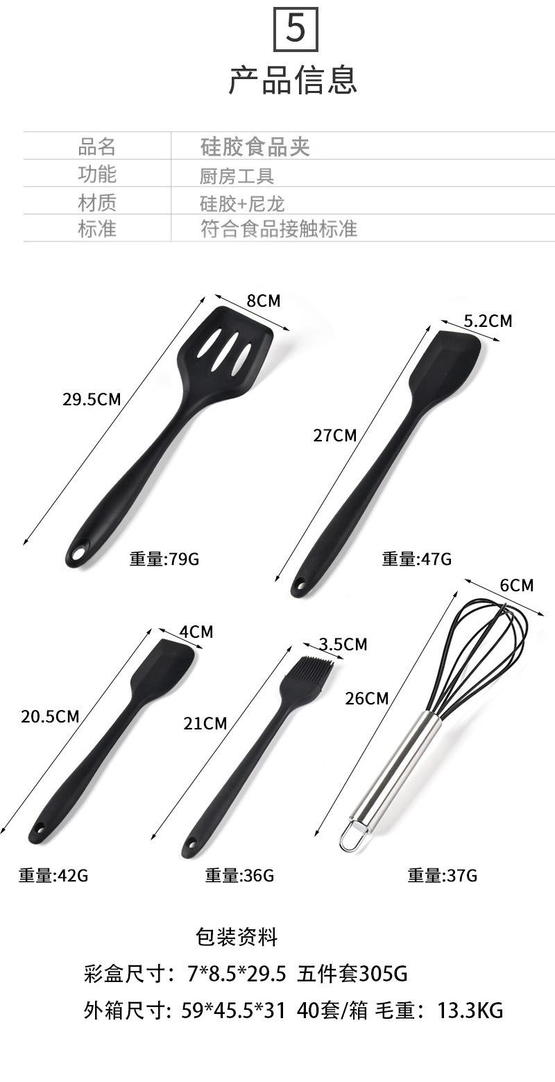 Espátula de silicona para hornear herramienta juego de cinco piezas raspador batidor de huevos cepillo para hornear juego de 5 piezas