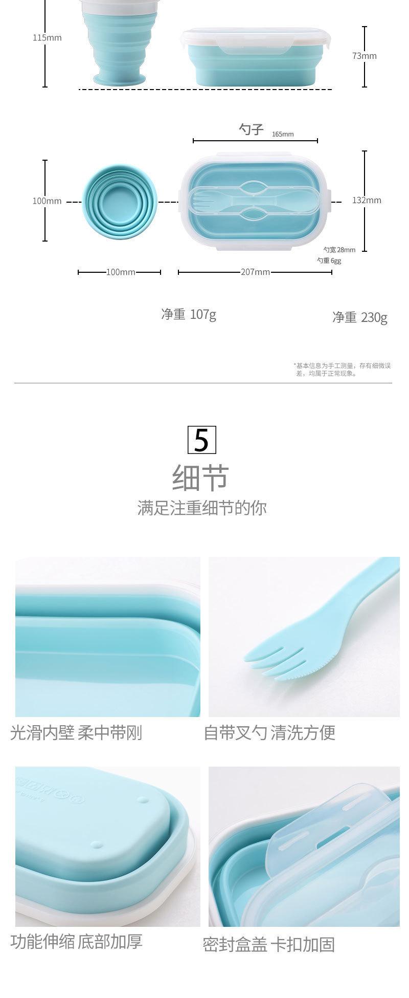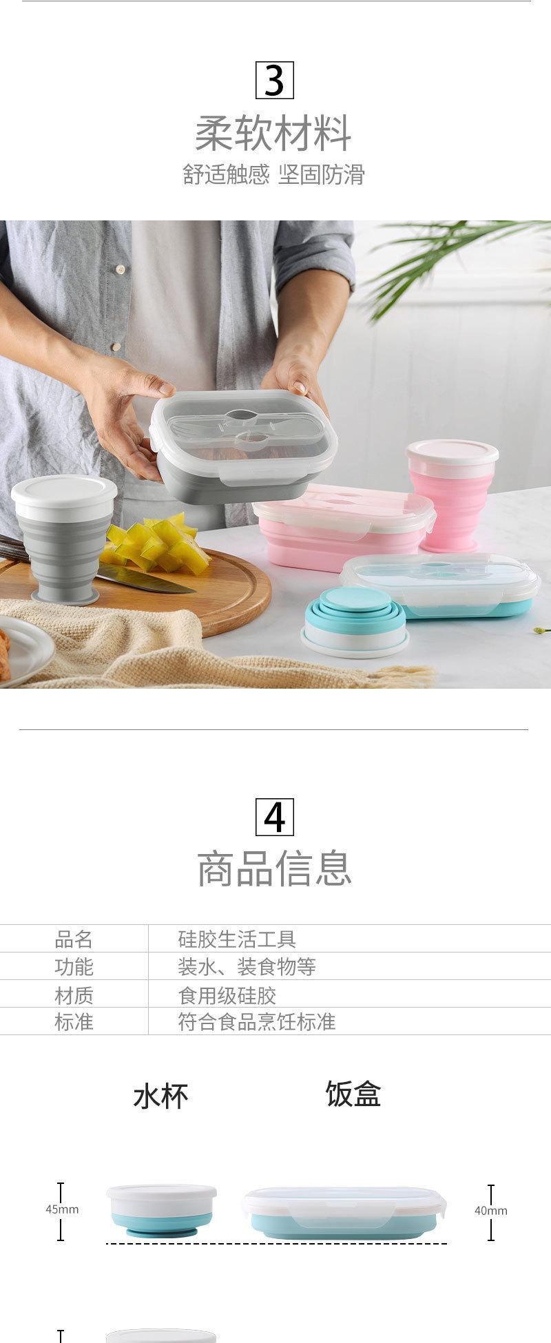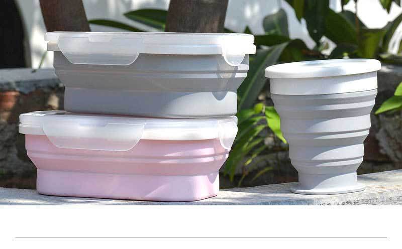 Lonchera de silicona retráctil portátil, taza de agua, juego de dos piezas de lonchera plegable de fácil almacenamiento