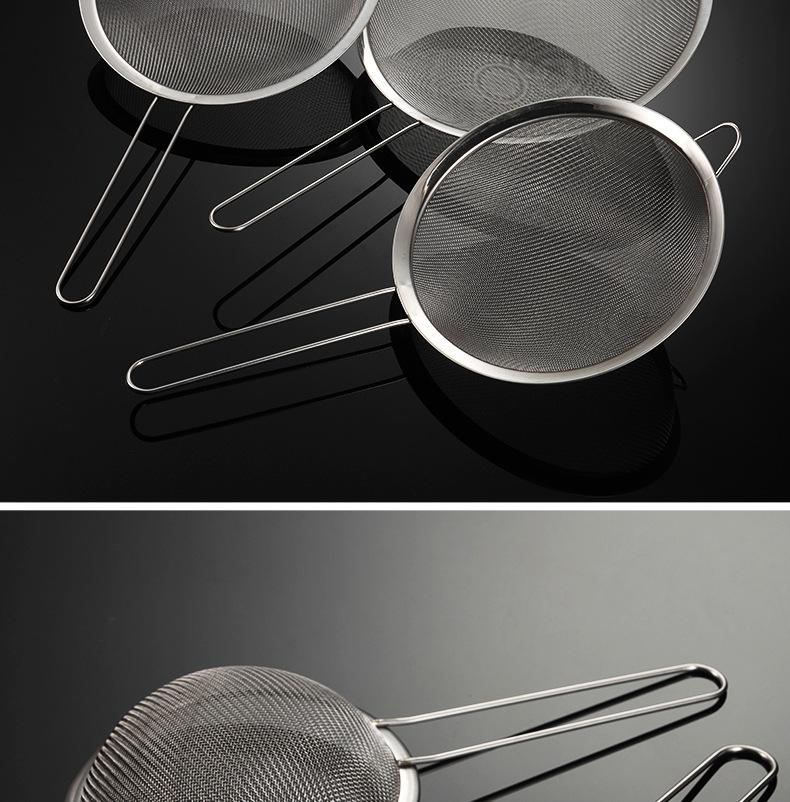 Colador de acero inoxidable, cuchara con filtro para leche de soja, colador de aceite multifuncional para el hogar, colador de malla para olla caliente con mango largo y orejas puntiagudas, venta al por mayor