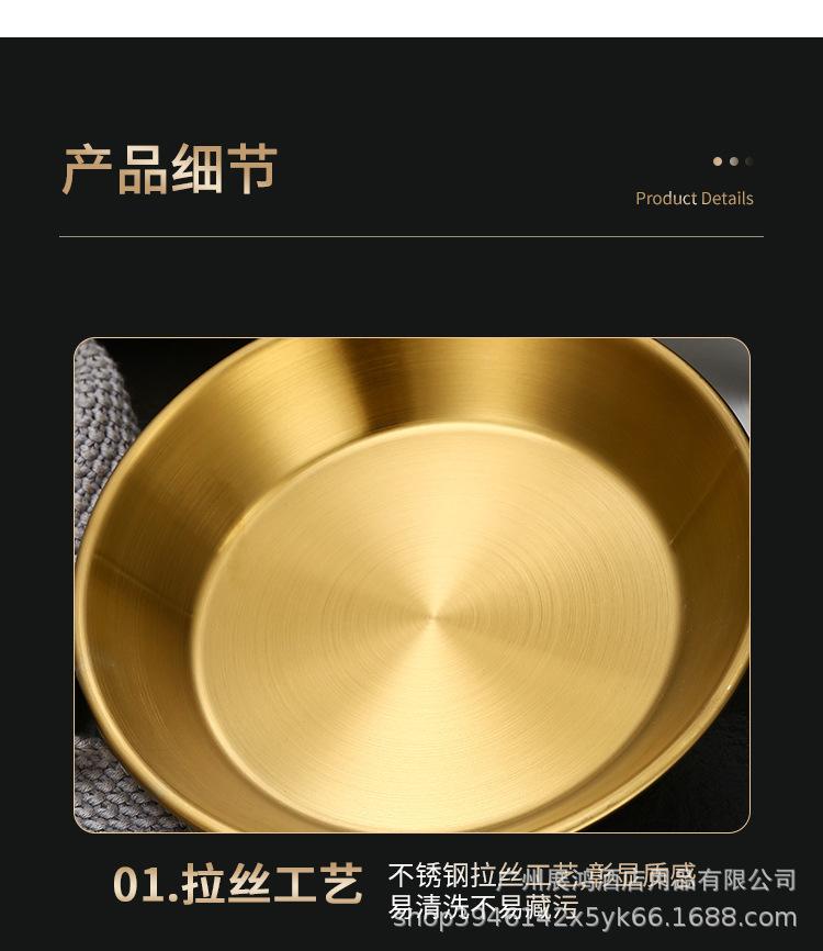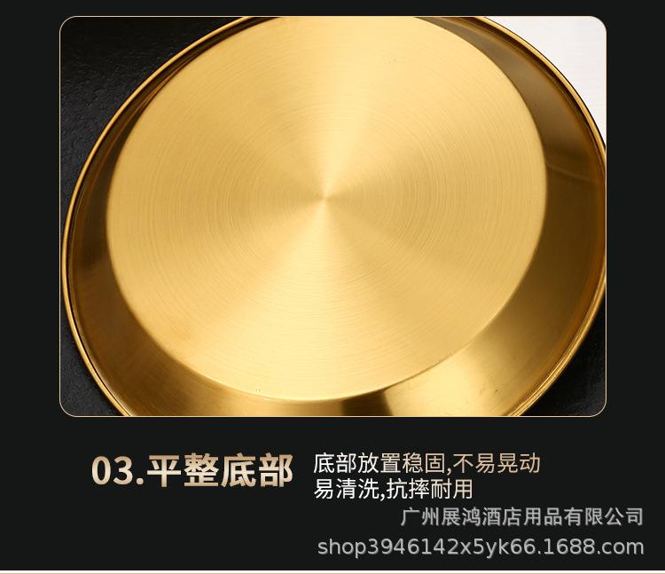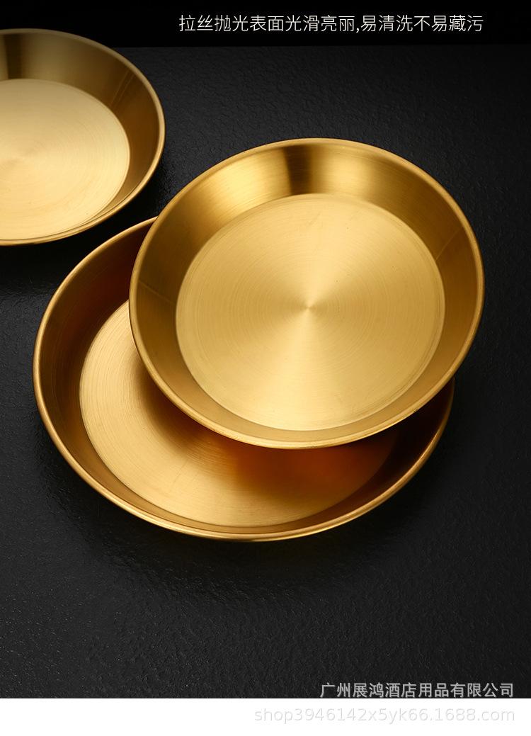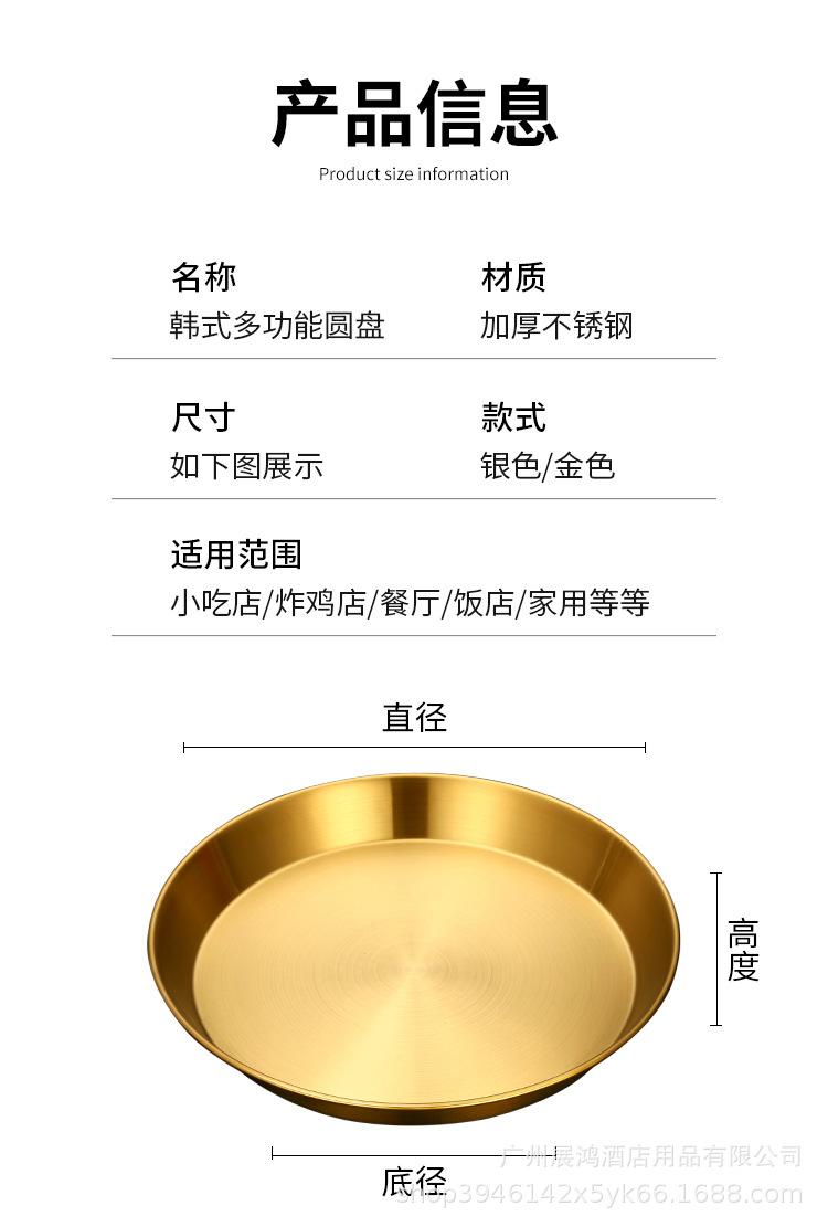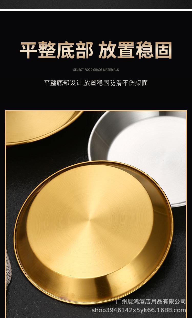 Plato de mariscos al estilo coreano, plato de acero inoxidable, disco de fondo plano, plato de pizza comercial, plato para barbacoa, bandeja redonda dorada