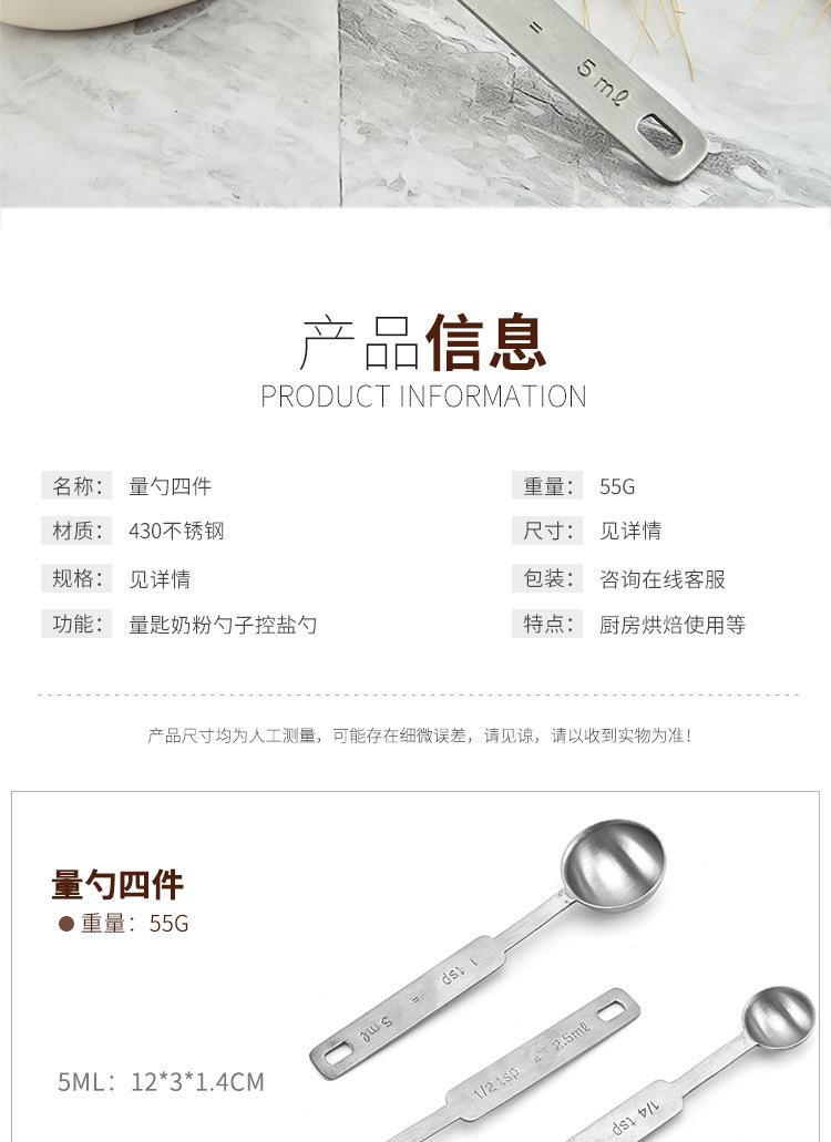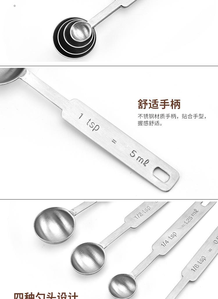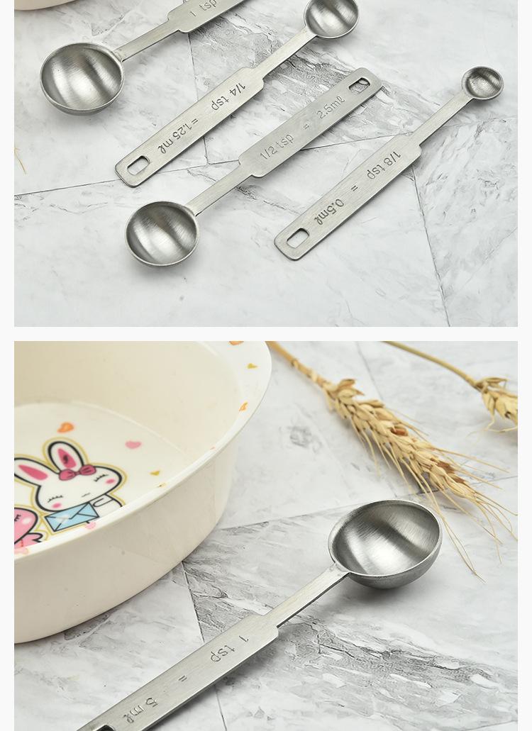 Compra Juego de cuatro cucharas medidoras de acero inoxidable con escala, cuchara para condimentar, cuchara medidora, cuchara medidora de cuatro piezas, herramienta para hornear al por mayor en Joom.pro