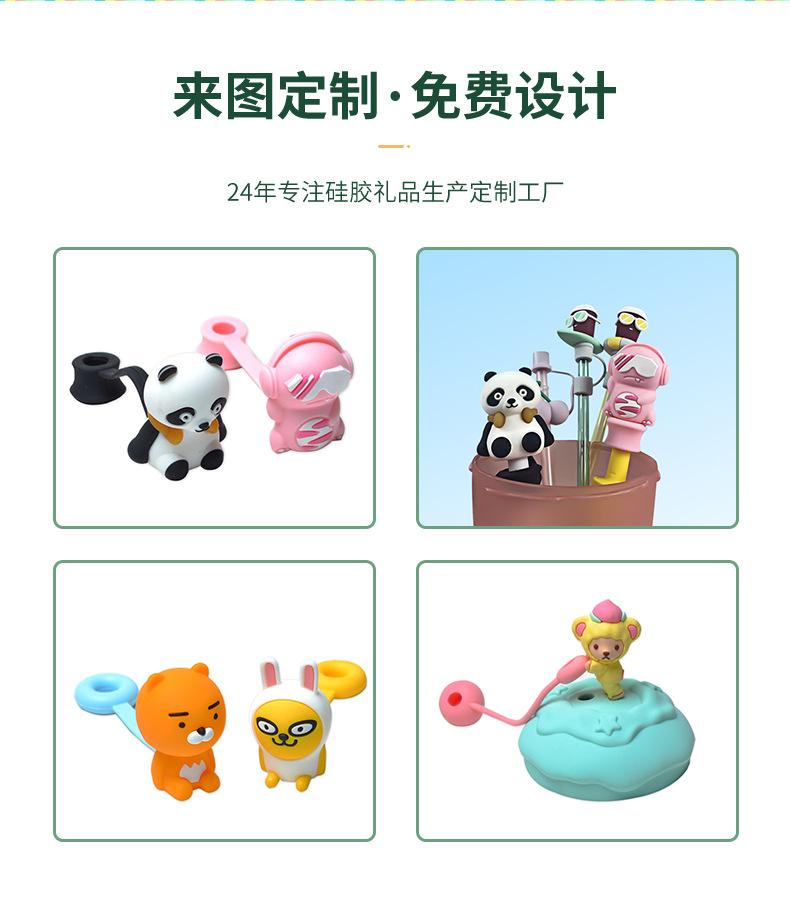 Cubierta de silicona de grado alimenticio para pajita, caricatura, linda, muñeca de PVC, tapa de plástico para pajita, DIY, tapón para pajita de vidrio, personalización