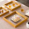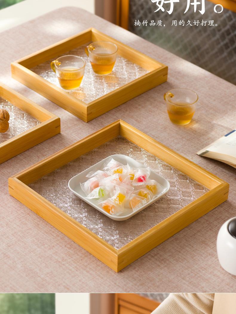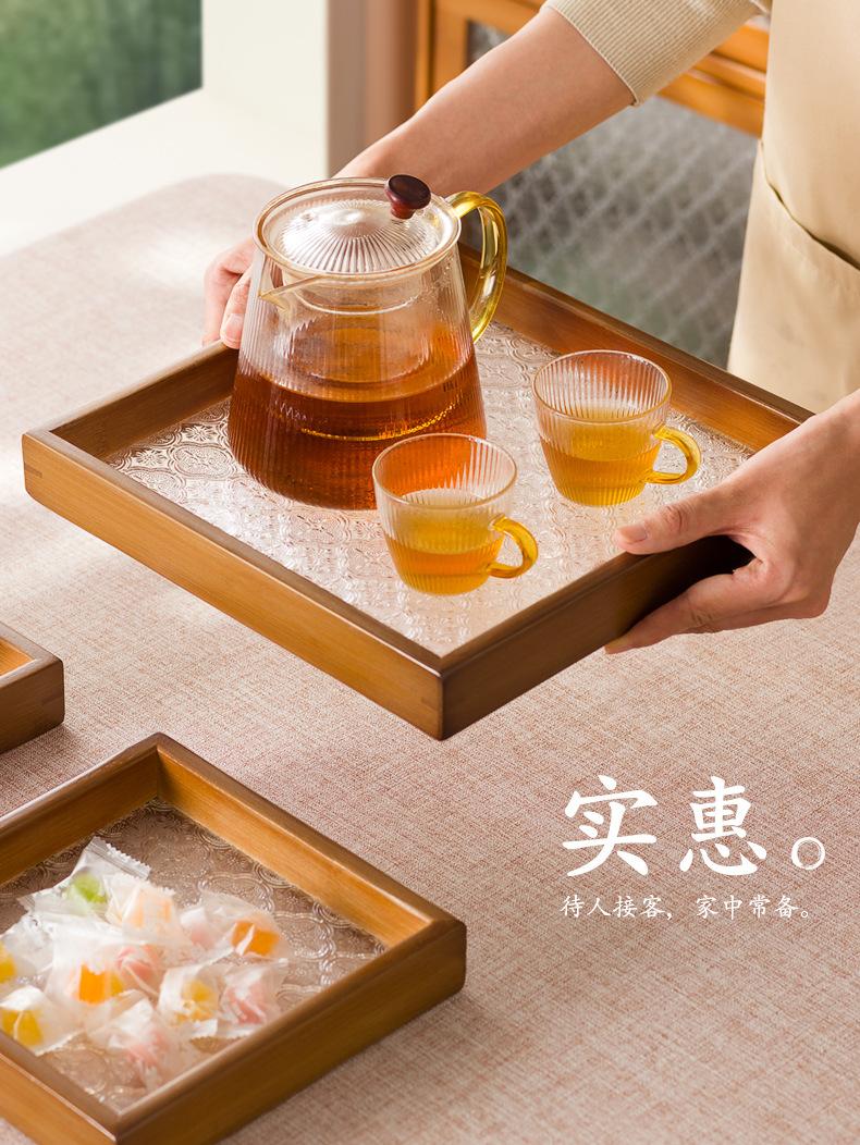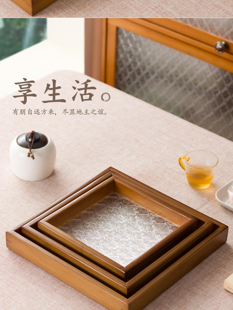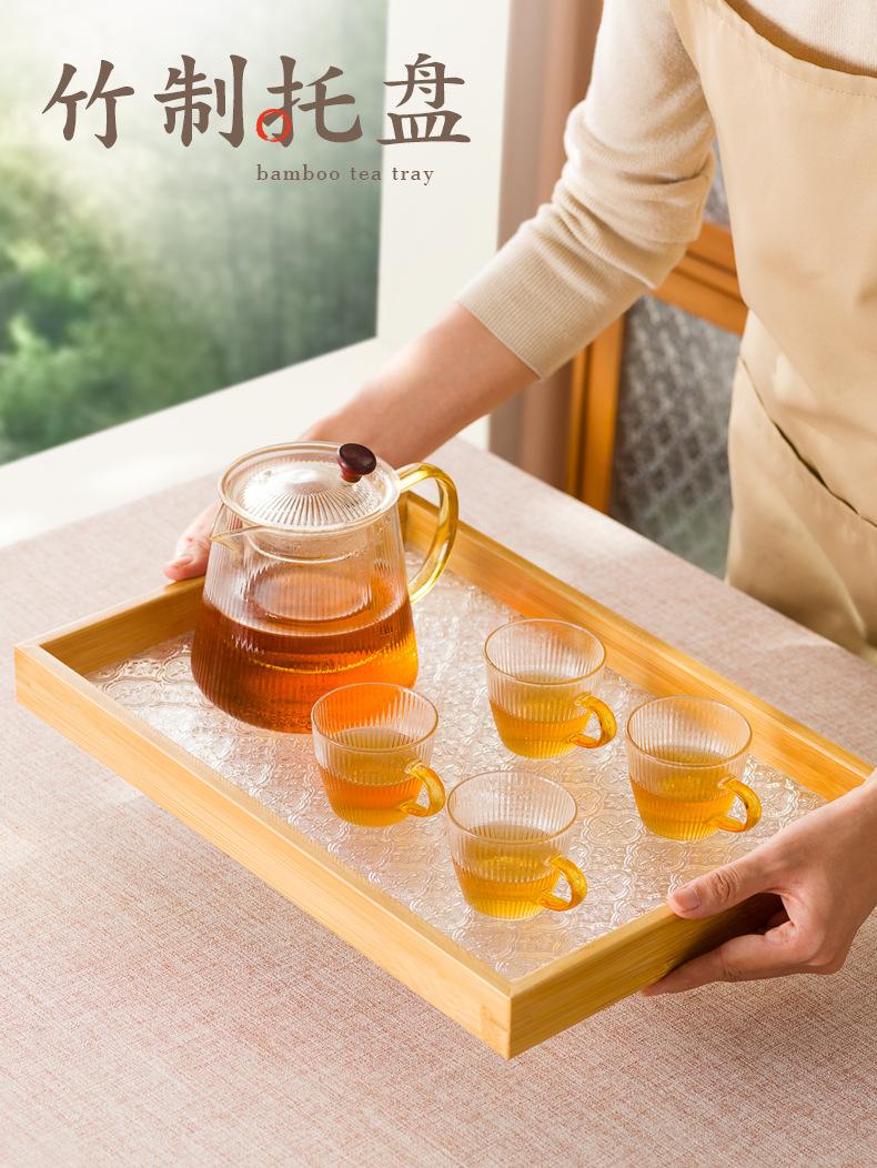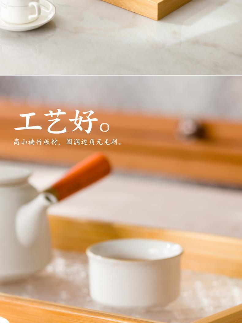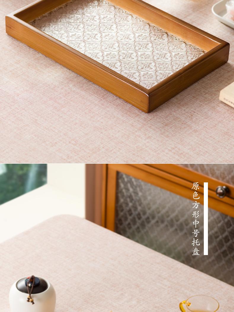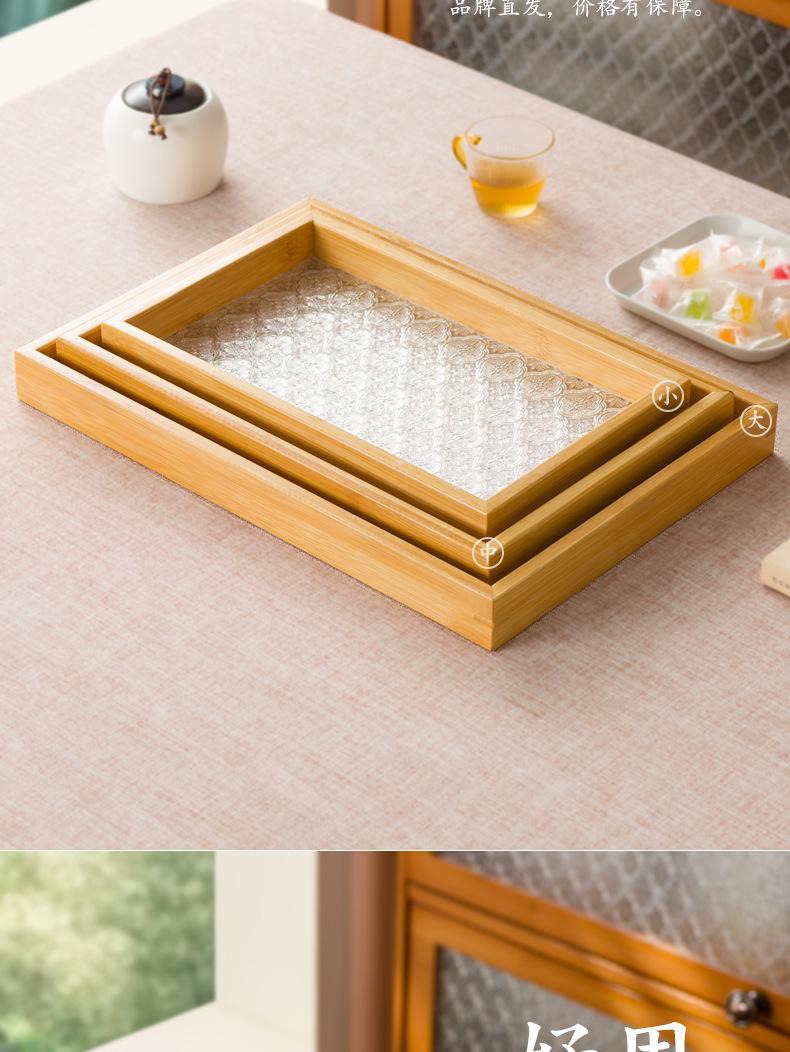 Bandeja de té de madera de bambú, rectangular, para uso comercial, para el hogar, taza de agua de bambú, almacenamiento, estilo chino, plato grande simple.