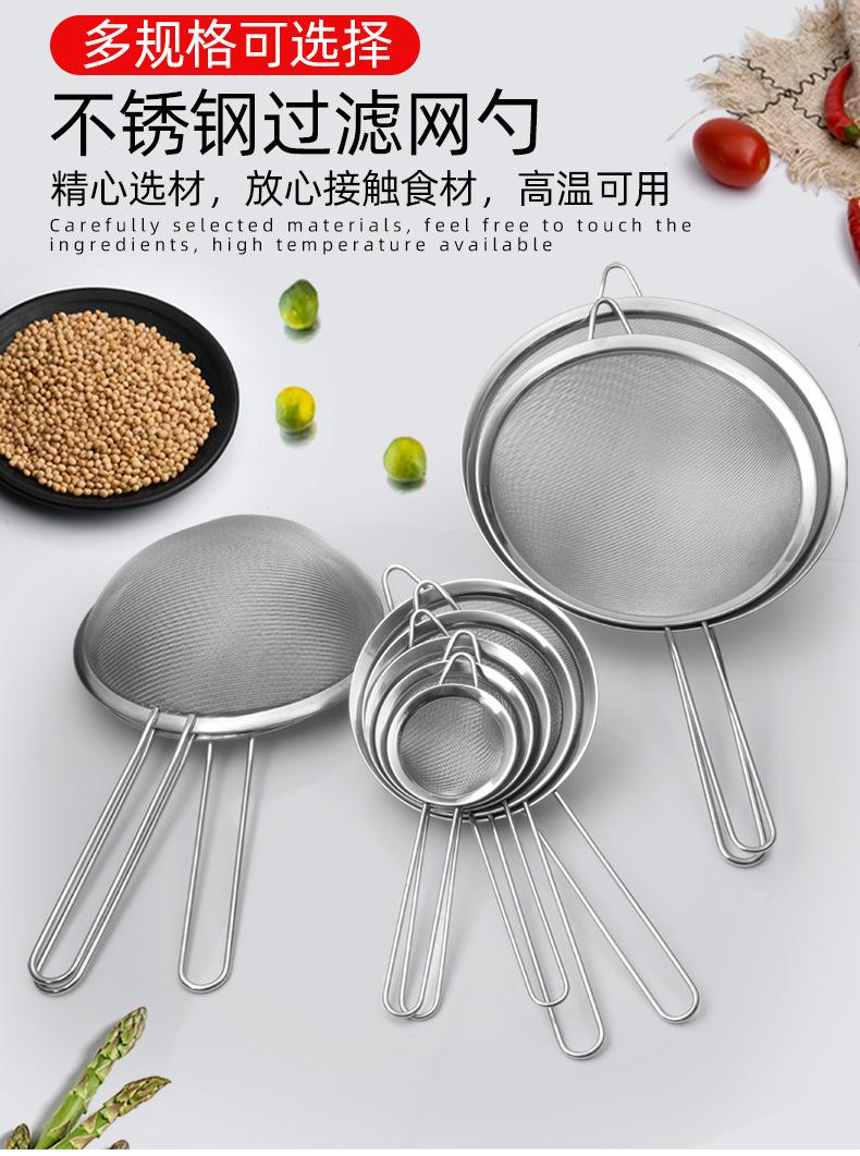 Colador de acero inoxidable ultrafino de gran densidad con filtro, cuchara, colador de leche de soja perlada, red para freír, cocina, hogar, leche, tienda de té