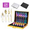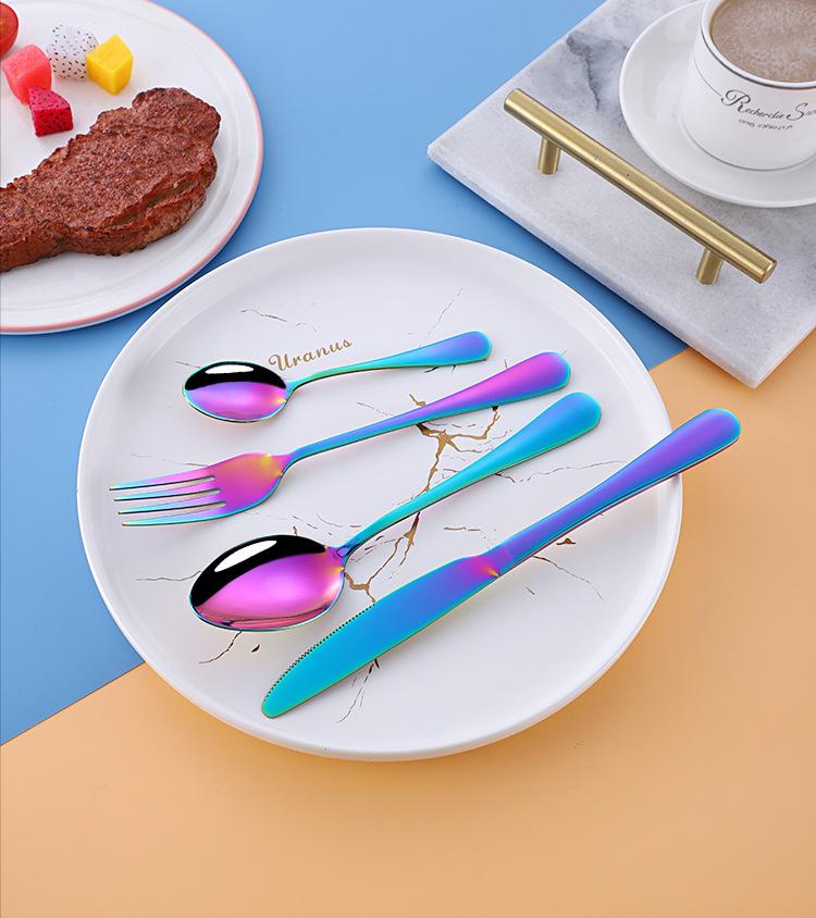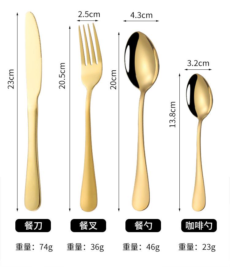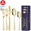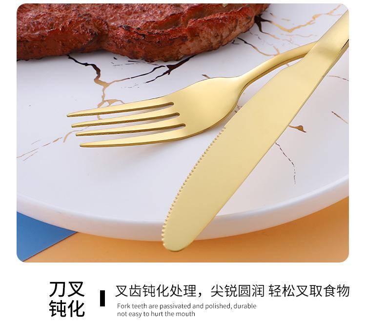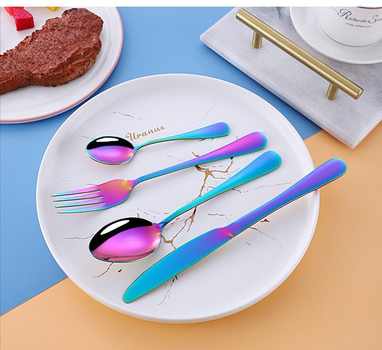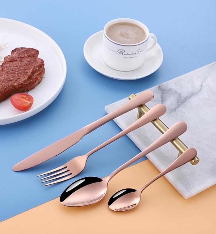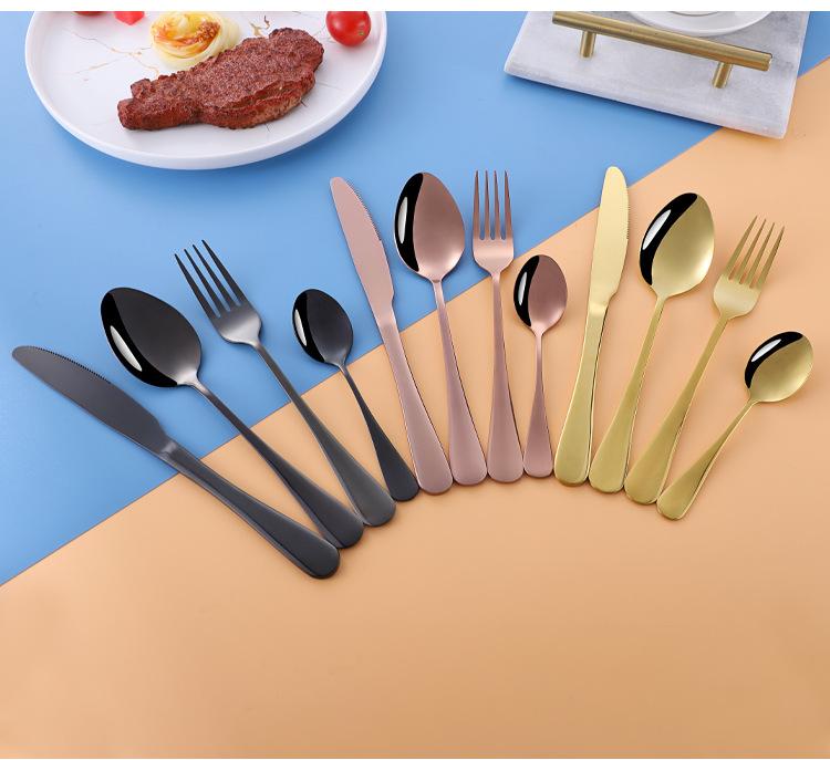Juego de cubiertos de acero inoxidable 1010 de Amazon transfronterizo, dorado titanio, cuchillo occidental, cuchara, tenedor, cuchara, juego de 4 piezas