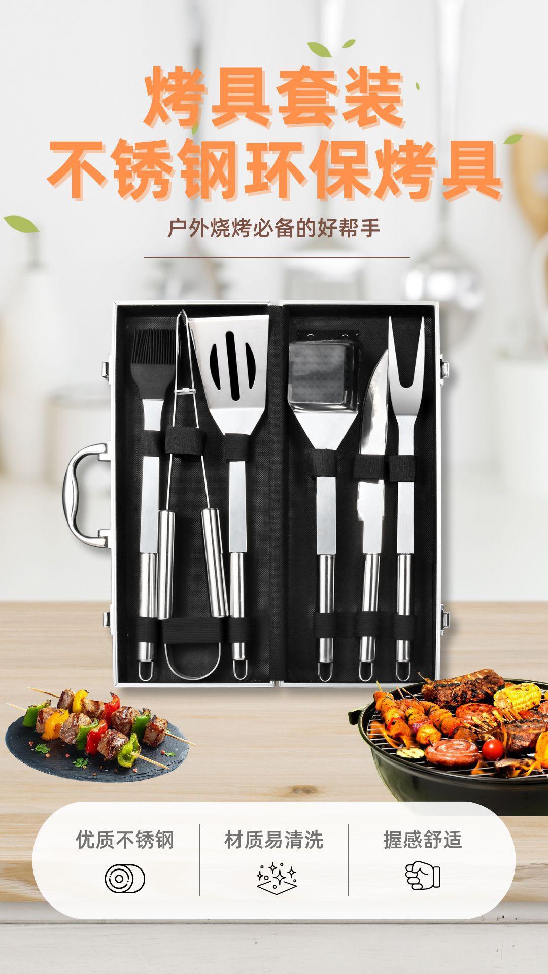 Juego de herramientas para barbacoa al aire libre de Amazon, seis piezas, caja de aluminio para hornear, venta directa al extranjero