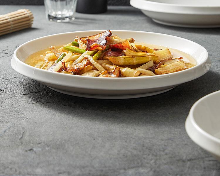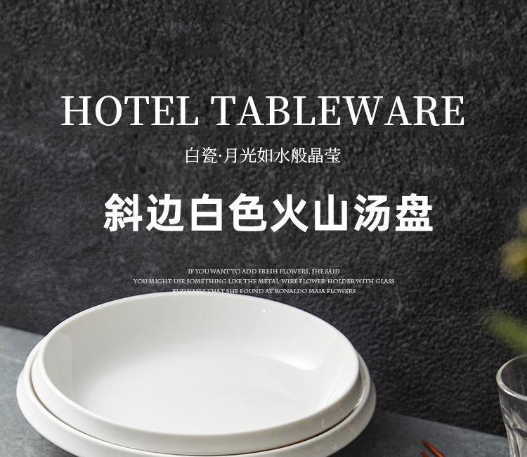 9-inch beveled White volcano soup plate, 9.8-inch beveled white volcanic soup plate, 10.6-inch beveled white volcanic soup plate