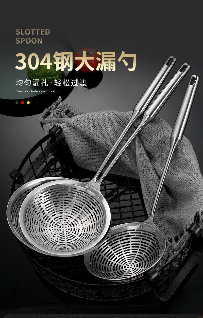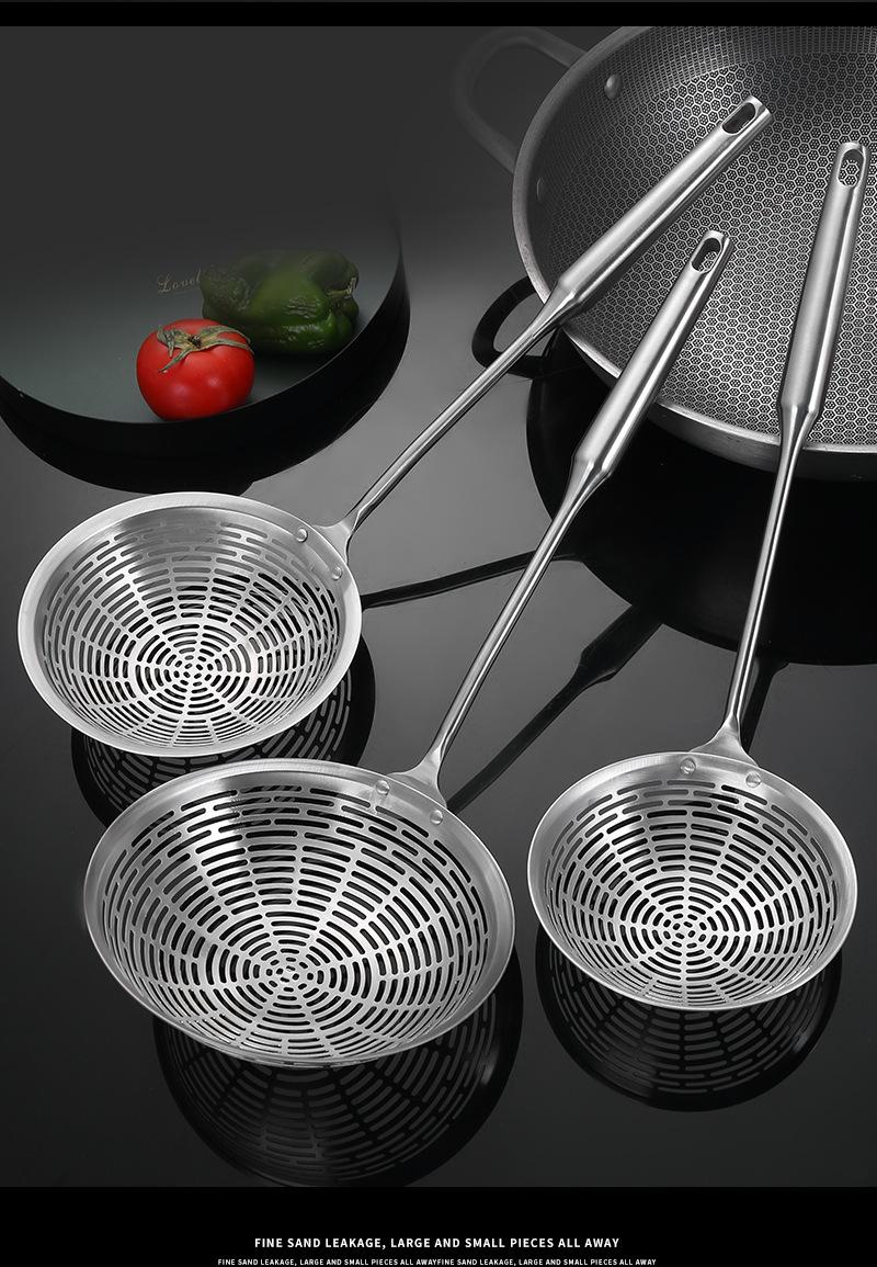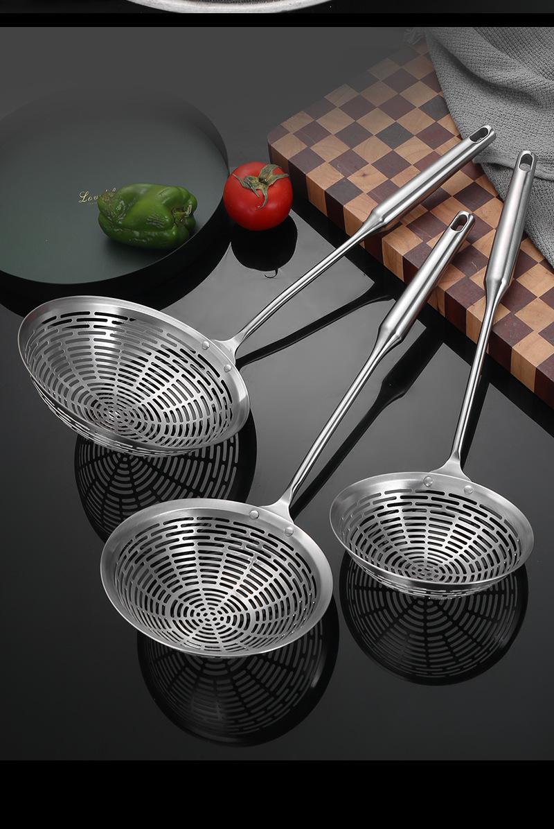 Colador de Acero Inoxidable 304 Hogar Cocina Filtro Malla Criba Olla Caliente Comercial Cuchara para Fideos Frito Espesado Mango Largo Malla Fugas