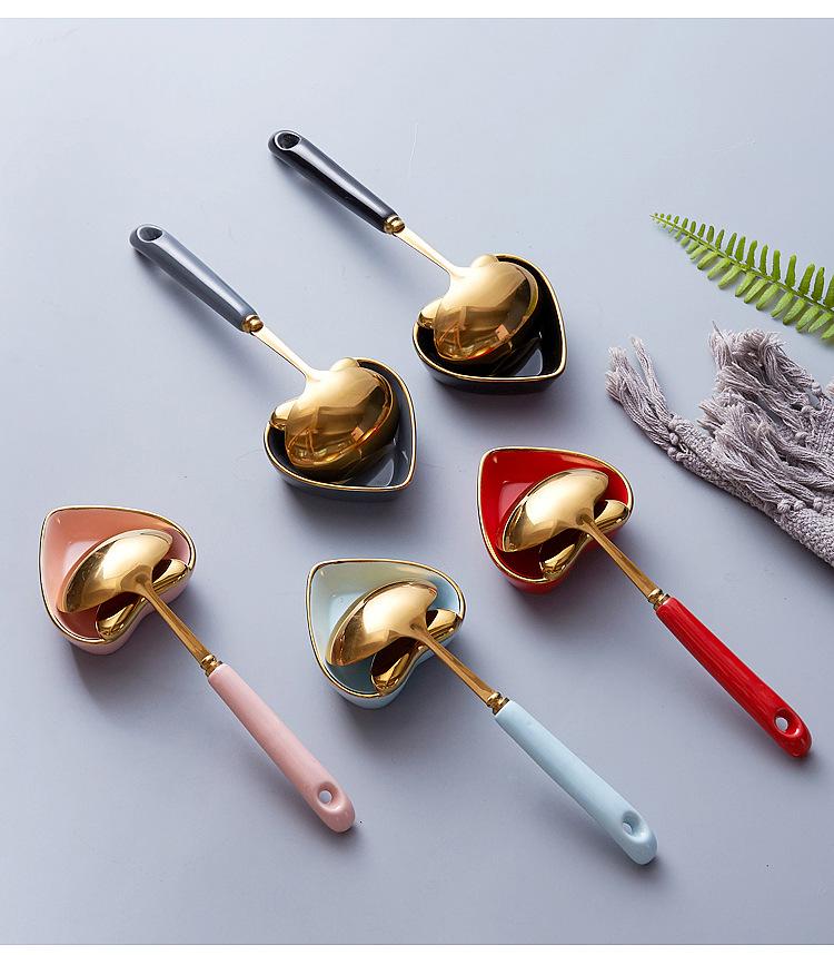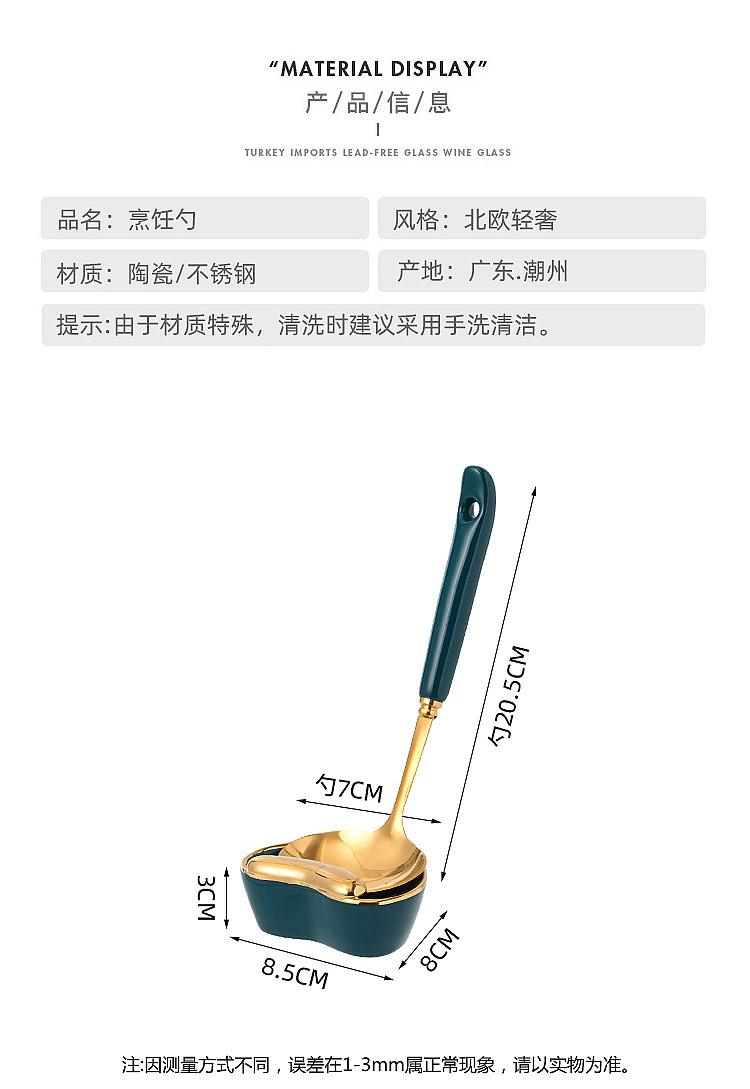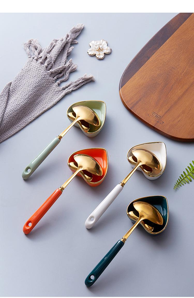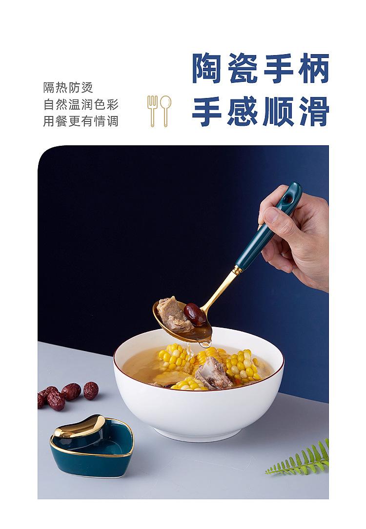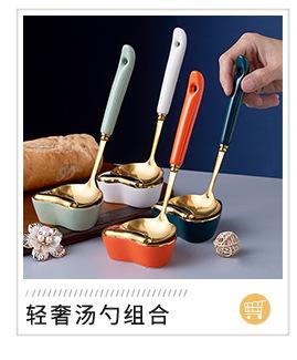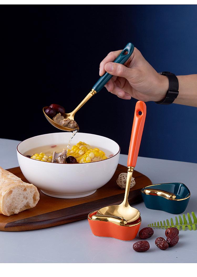 Cuchara sopera de acero inoxidable estilo lujo ligero, suministros de cocina, vajilla, cuchara para olla caliente, mango de cerámica, cuchara para cocinar, cuchara sopera antiquemaduras, venta al por mayor