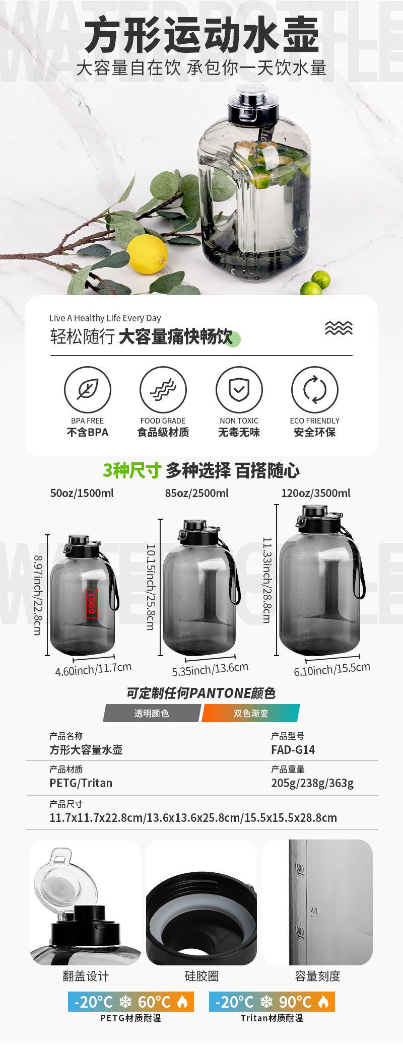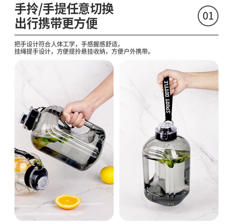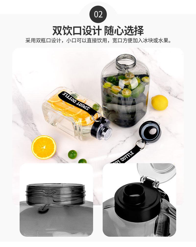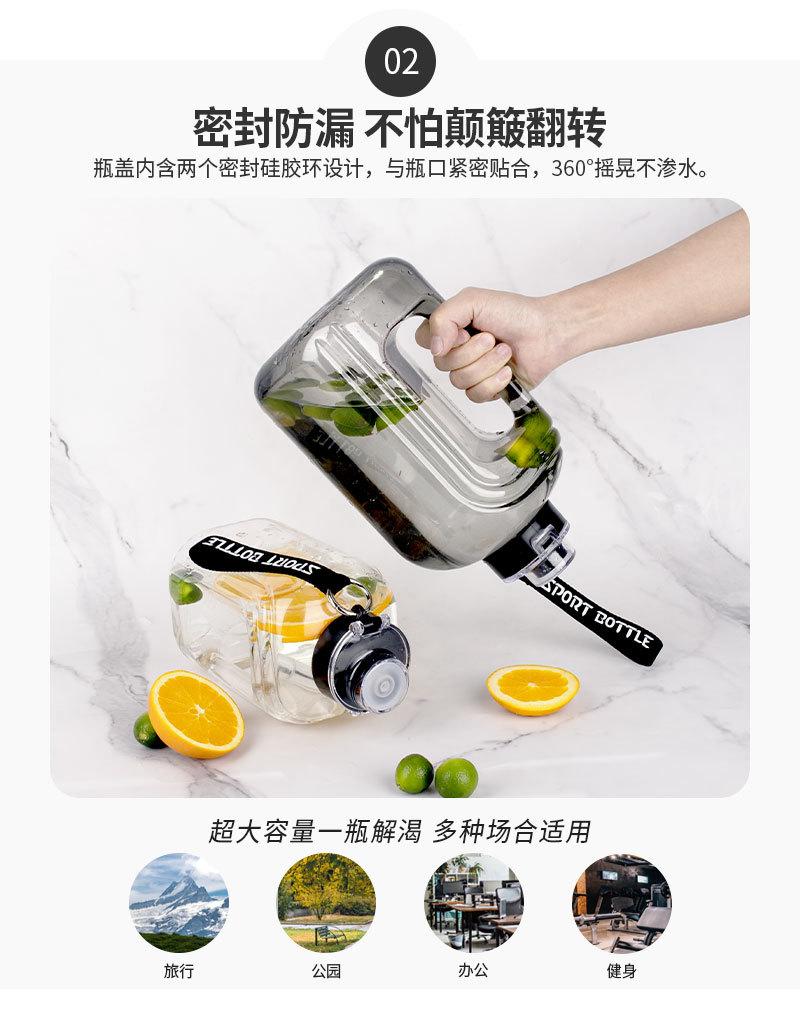 Vaso de agua de plástico cuadrado de gran capacidad transfronterizo, nuevo, para fitness al aire libre, estilo camping al aire libre, 2000 ml, hervidor de agua grande de gran capacidad