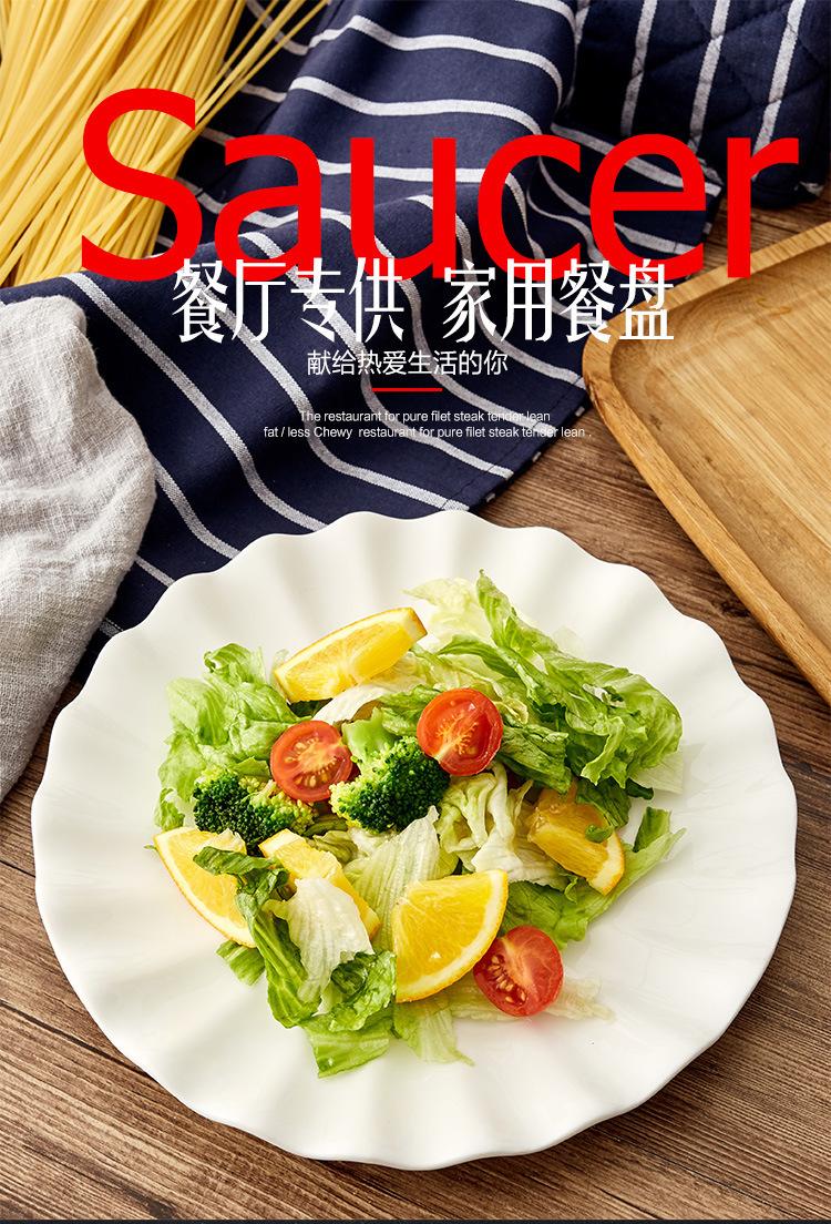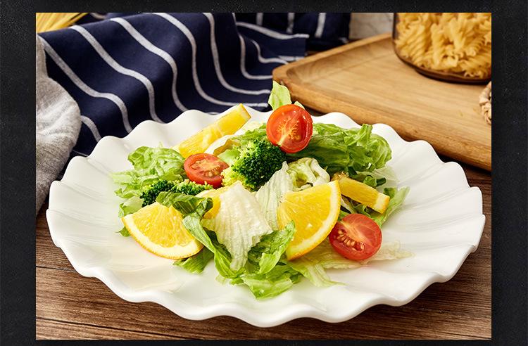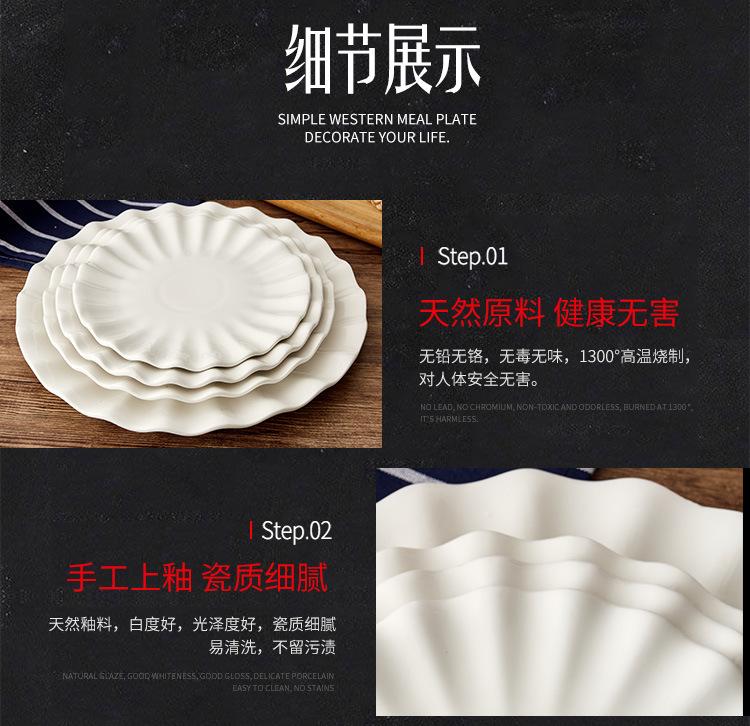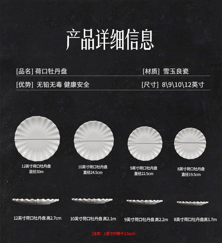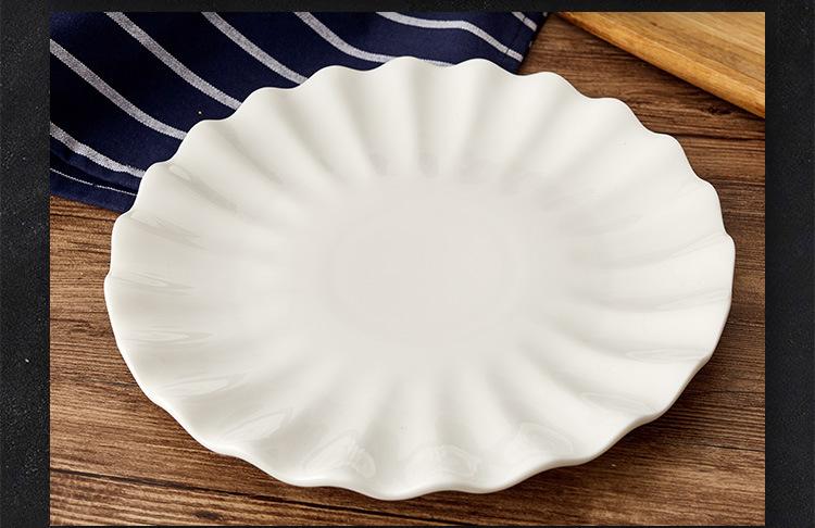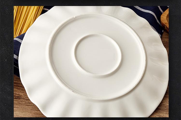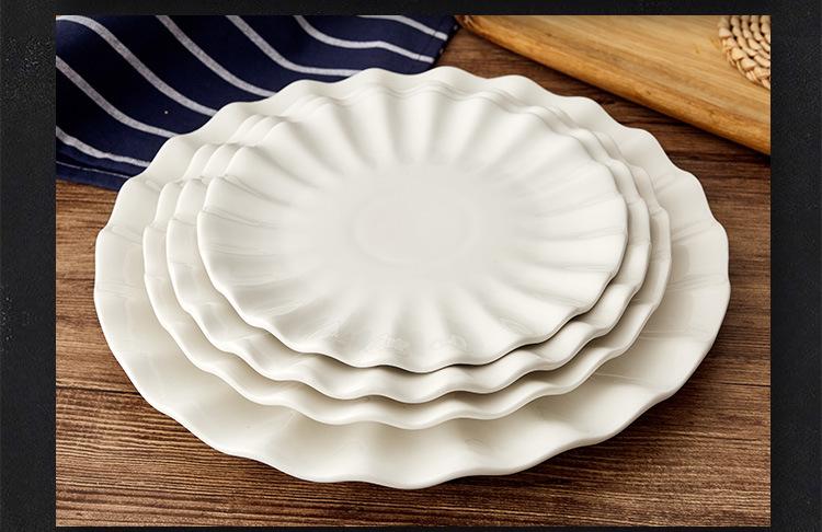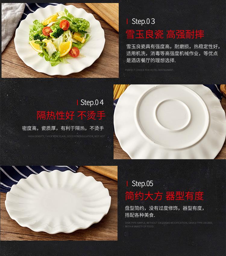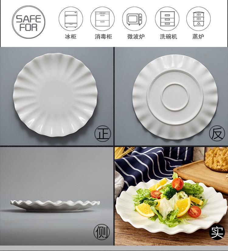 Plato para Bistec Plato Redondo de Cerámica Boca de Loto Plato para Comedor de Hotel Plato de Porcelana Blanca Vajilla de Cerámica