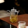 Tetera de Cristal Transparente con Patrón Vertical Simple de Gran Capacidad, Tetera de Vidrio de Borosilicato Alto, Tetera de Madera Torcida