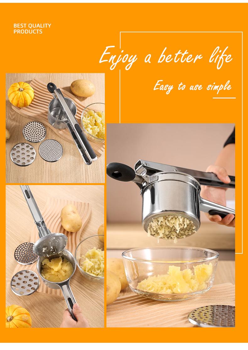 Nombre del producto: Prensa de Patatas de Acero Inoxidable Exprimidor Manual Extractor de Agua de Vegetales Fruta Exprimidor de Limón Machacador de Patatas