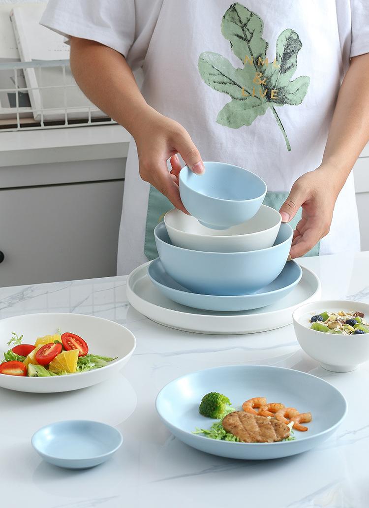 Platos de cerámica mate nórdicos, vajilla para el hogar y juego de vajilla, plato de comida occidental creativo, tazón, tazón de fideos, tazón de sopa