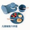 Babero infantil de silicona de grado alimenticio para bebés transfronterizo, tazón redondo con ventosa, taza con pajita, cuchara, juego de vajilla de cuatro piezas