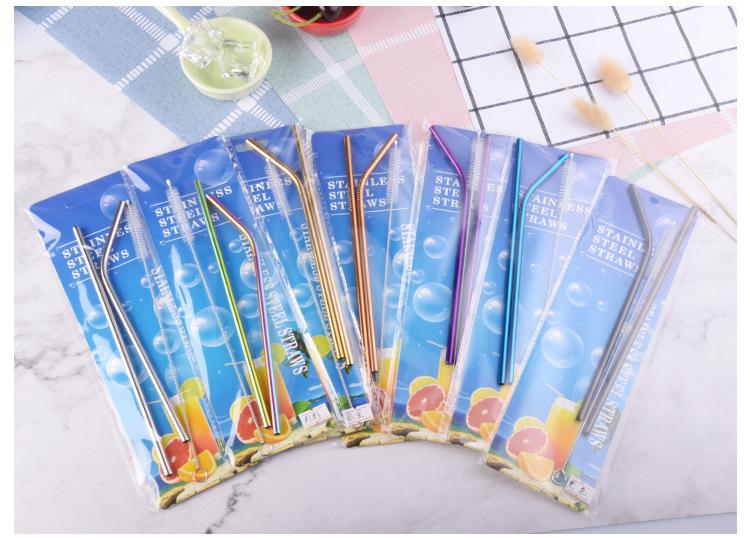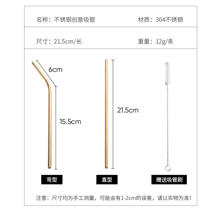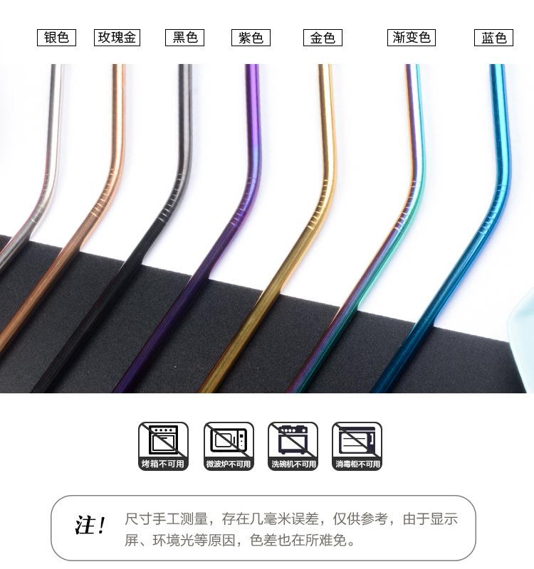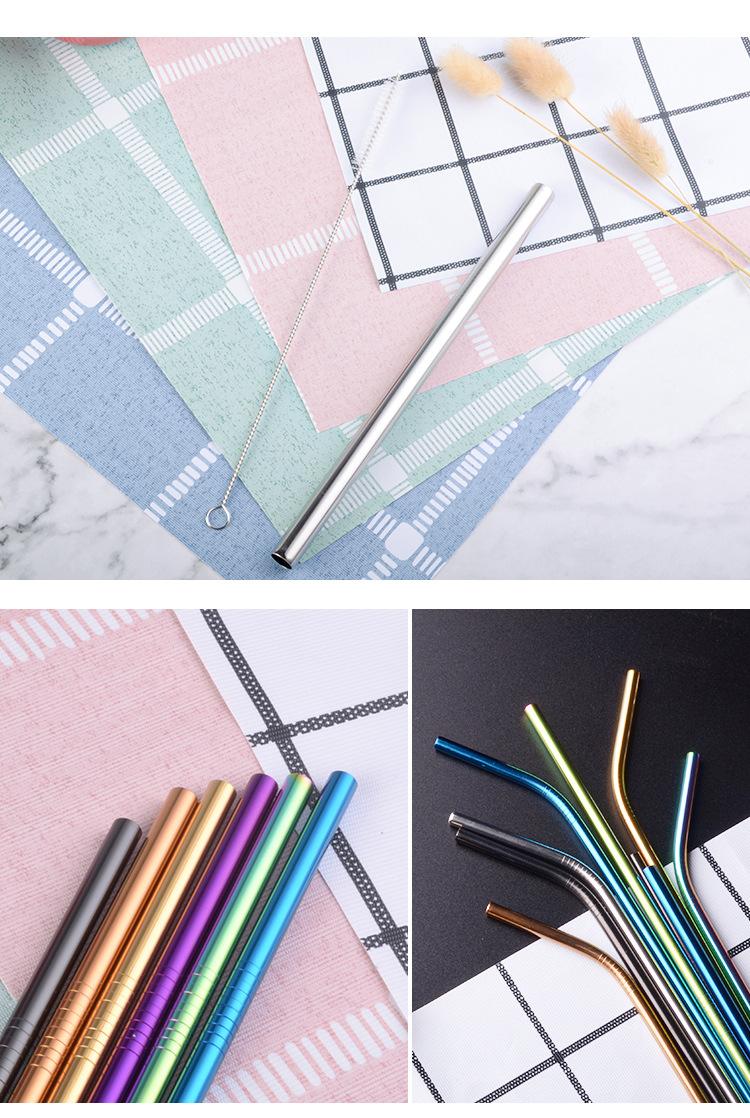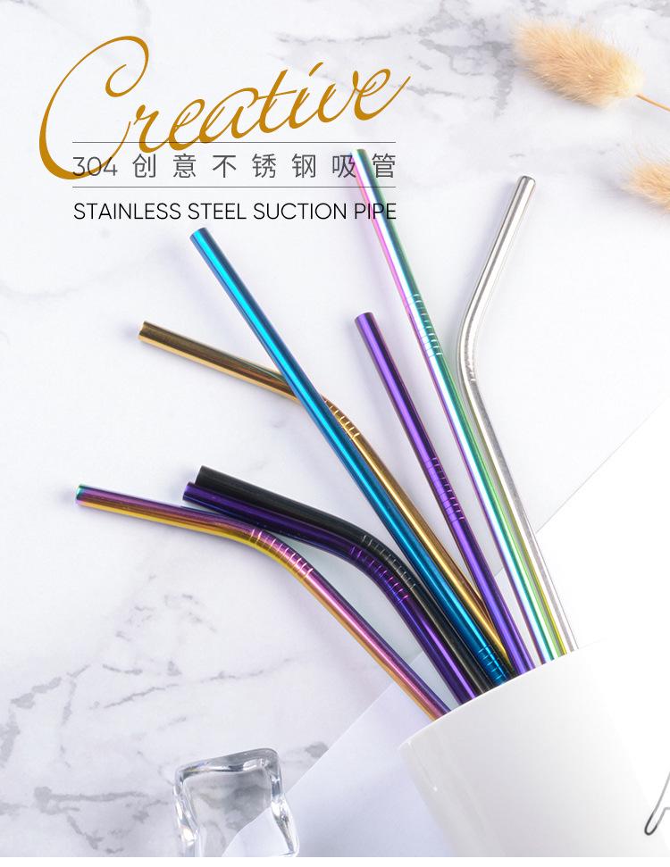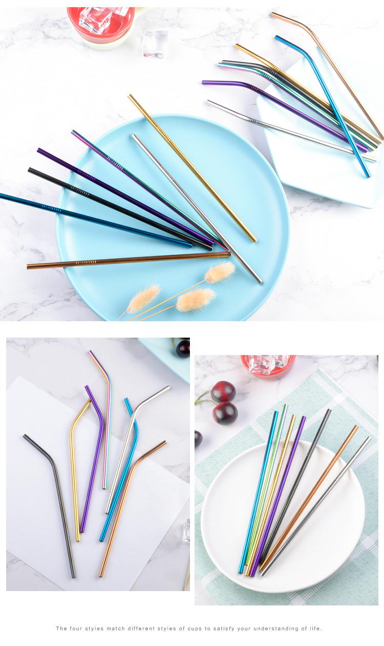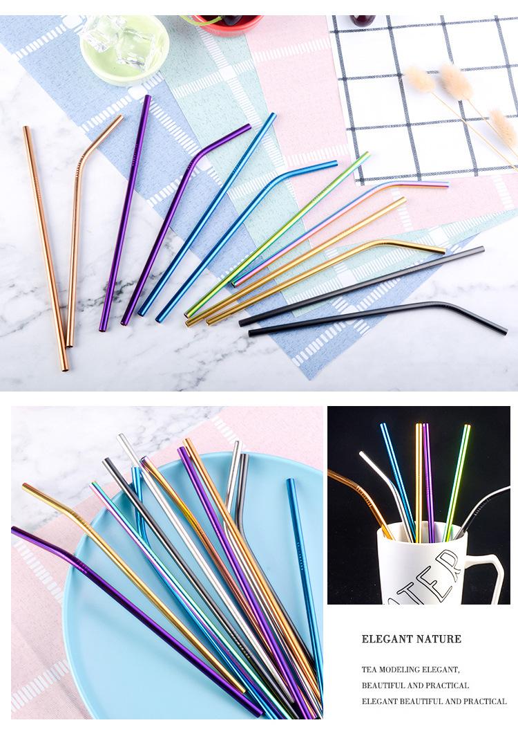 Pajita de acero inoxidable 304, color titanio, metal, leche, té, jugo, recta, curva, juego de pajitas, LOGO