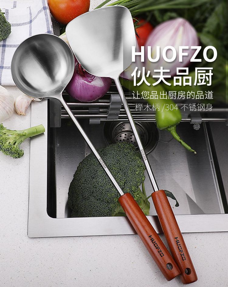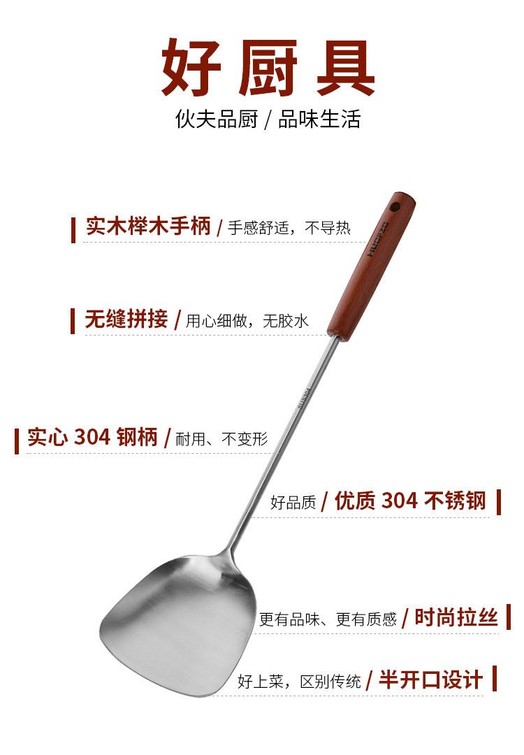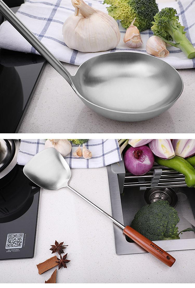 Utensilios de Cocina de Acero Inoxidable 304 para Cocinero Set de Cuchara para Cocinar Espátula Hogar Mango de Madera Espátula para Wok Cucharón Cocina Salteado