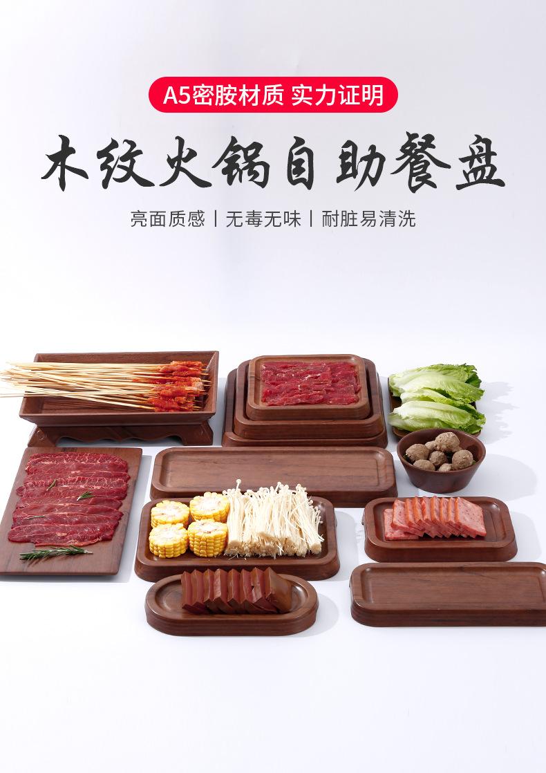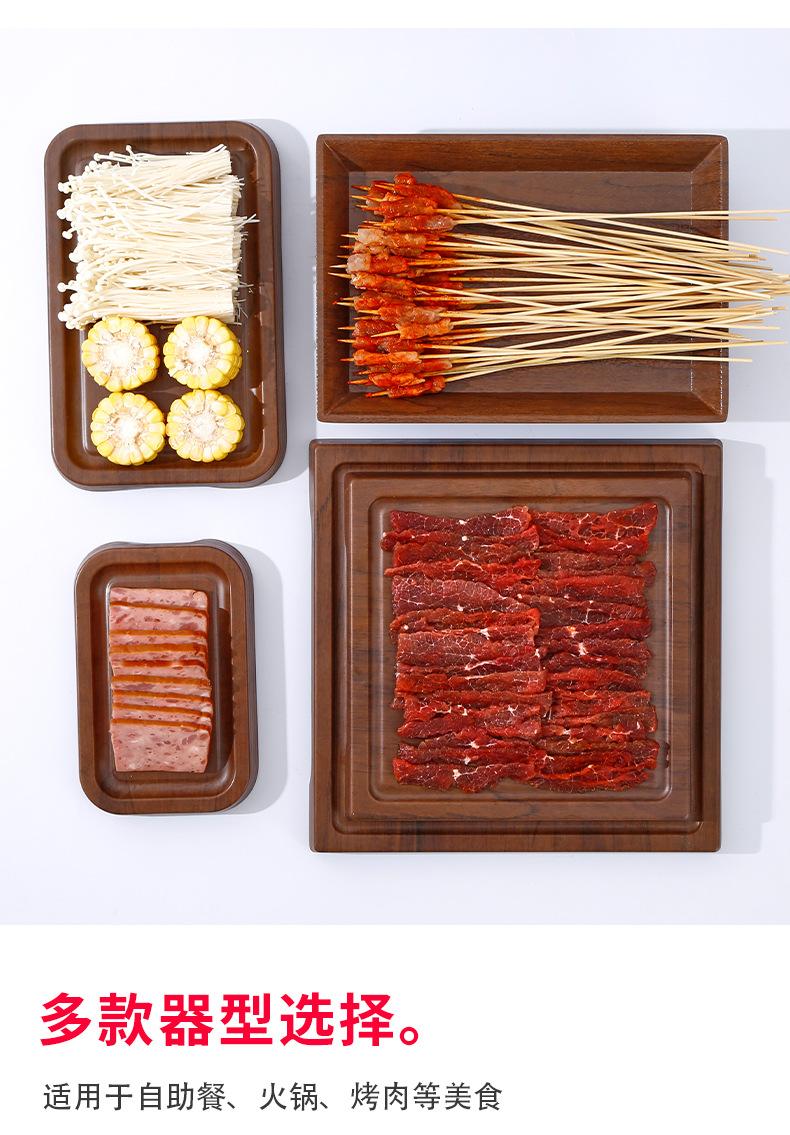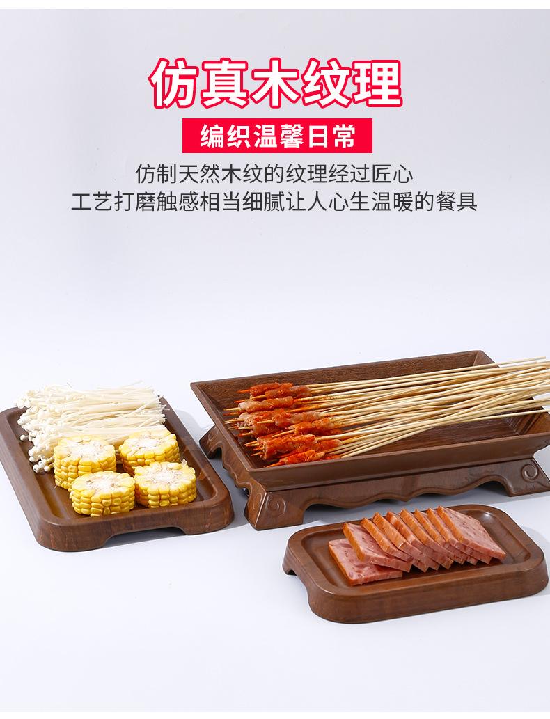 Plato Cuadrado Melamina Imitación Grano de Madera Comercial Plato para Hot Pot Barbacoa Plato para Buffet Plato para Guarnición Plato para Sushi Bandeja de Plástico Vajilla