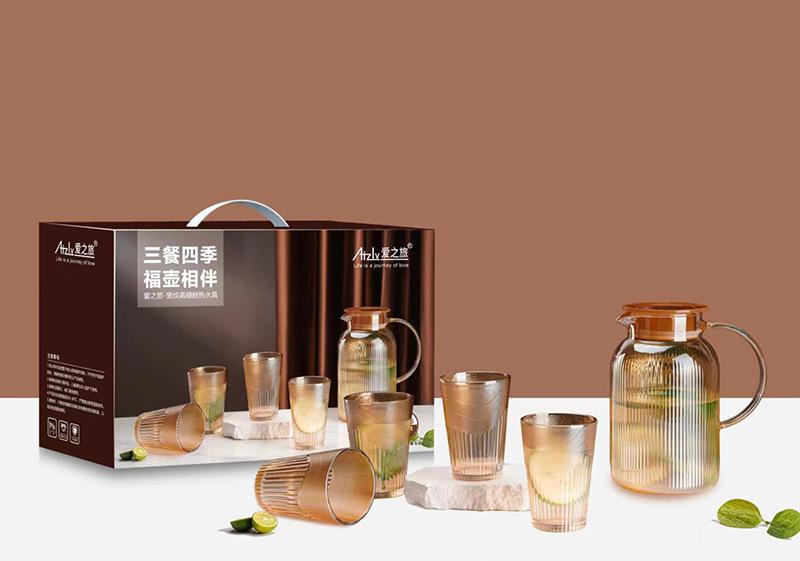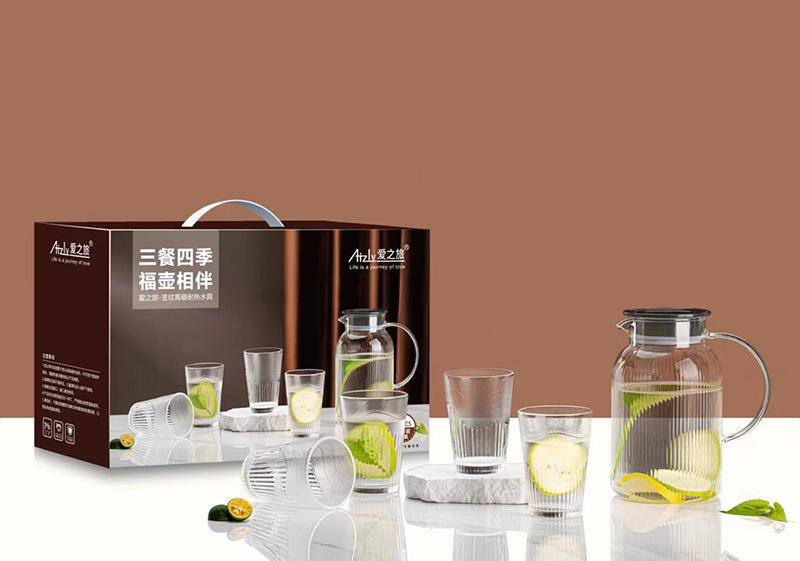 Juego de cinco hervidores de agua fría de borosilicato de alta calidad para el hogar, hervidor de agua de vidrio resistente a altas temperaturas, color de alta calidad.