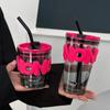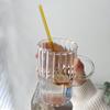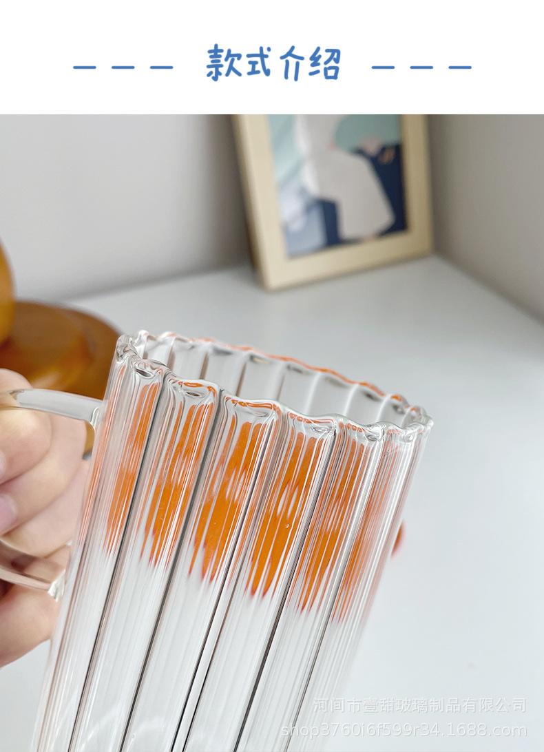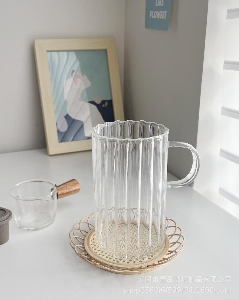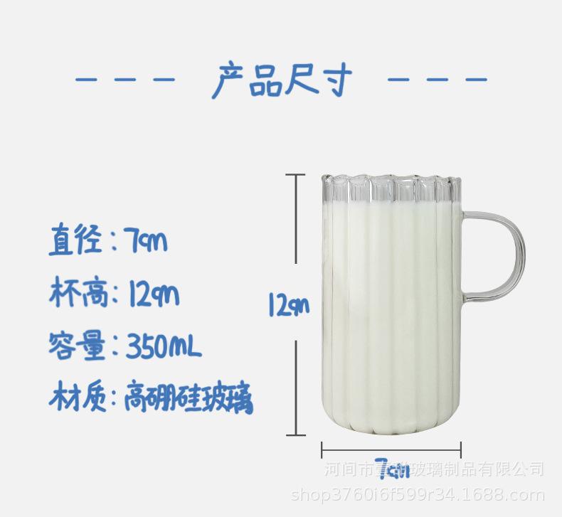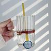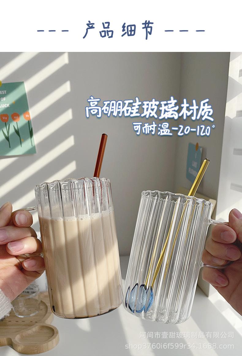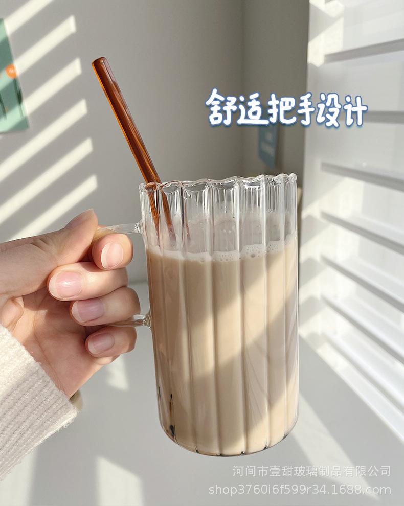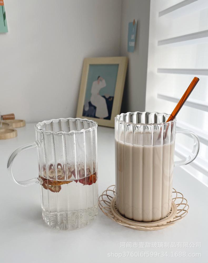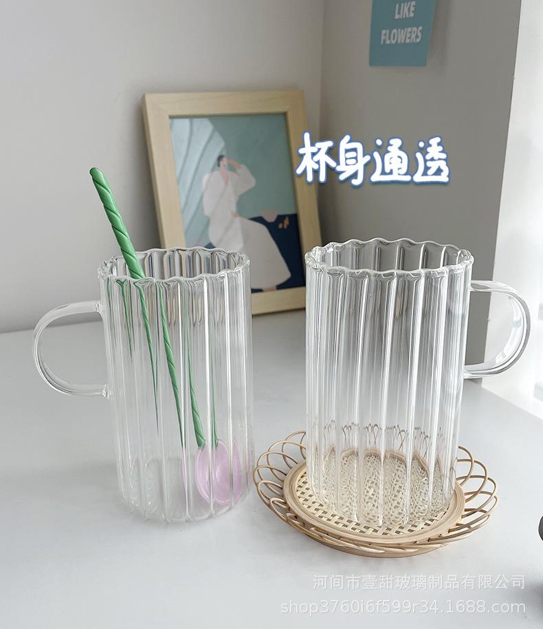 Taza de café, leche y agua de cristal con correa lateral de pétalos creativos de estilo ins y diseño vertical simple y de aspecto alto.