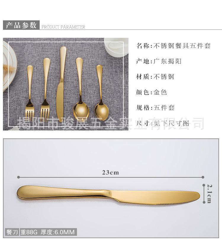 Cuchillo de mesa (23 cm) + tenedor de mesa (20 cm) + cuchara de mesa (20 cm) + tenedor de postre (17 cm) + cuchara de postre (17 cm)