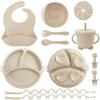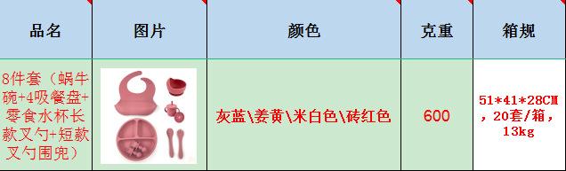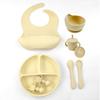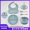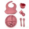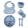 Cuenco de silicona para alimentación de bebés de 8 piezas con ventosa, plato, babero, tenedor y cuchara, taza para refrigerios.