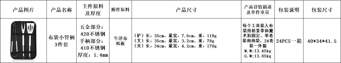 Juego de 3 piezas de parrilla de acero inoxidable Zhongyu Bolsa de tela Oxford Utensilios para barbacoa Parrilla combinada portátil para barbacoa en casa al aire libre