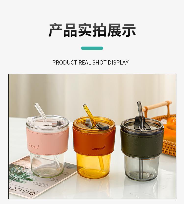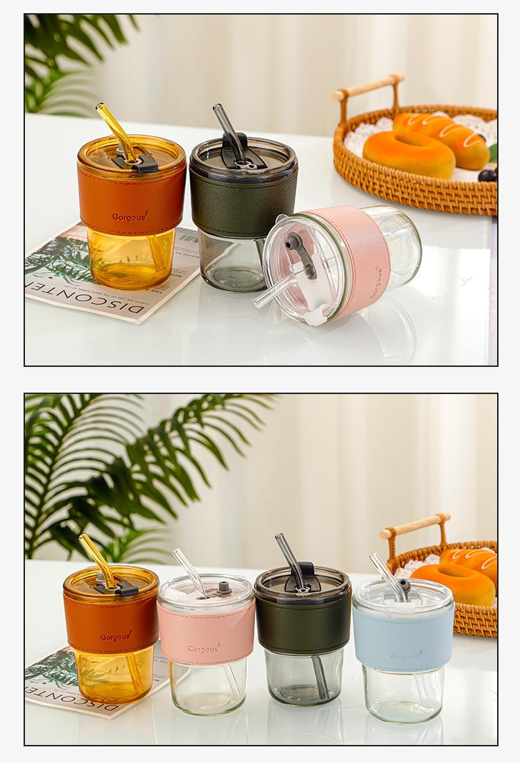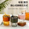 Vaso de Agua de Alta Gama para Celebridad de Internet Vaso de Regalo para Oficina Vaso de Café de Vidrio de Gran Capacidad Vaso con Pajita Vaso de Recuerdo