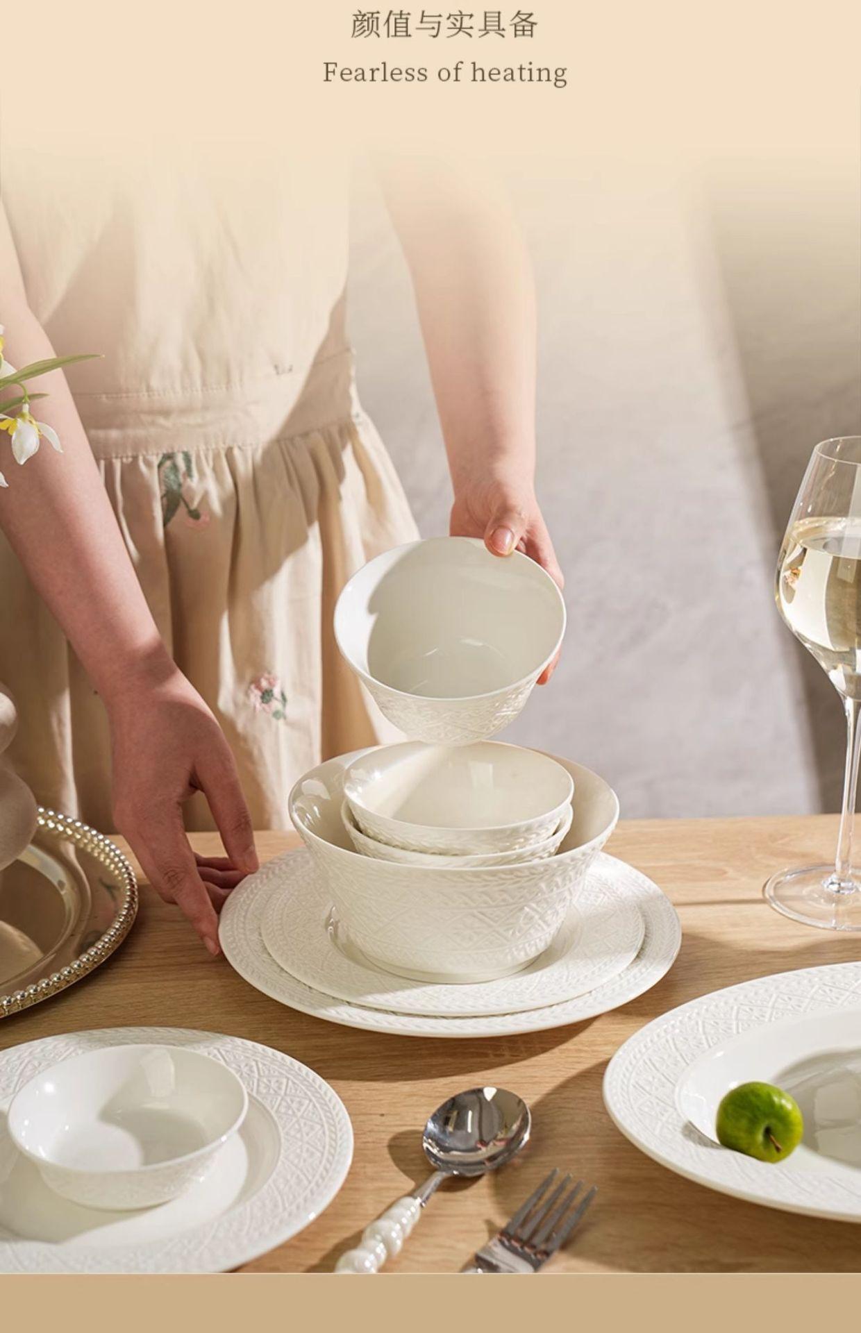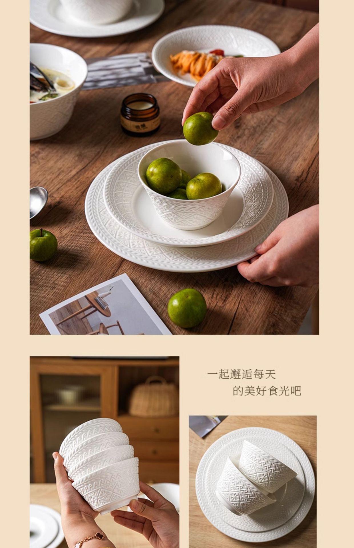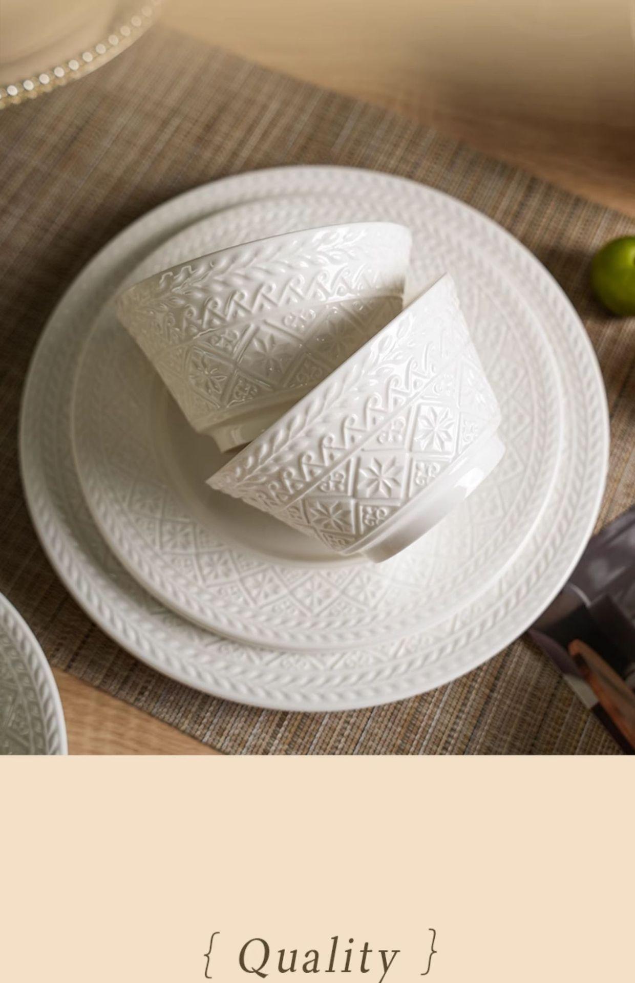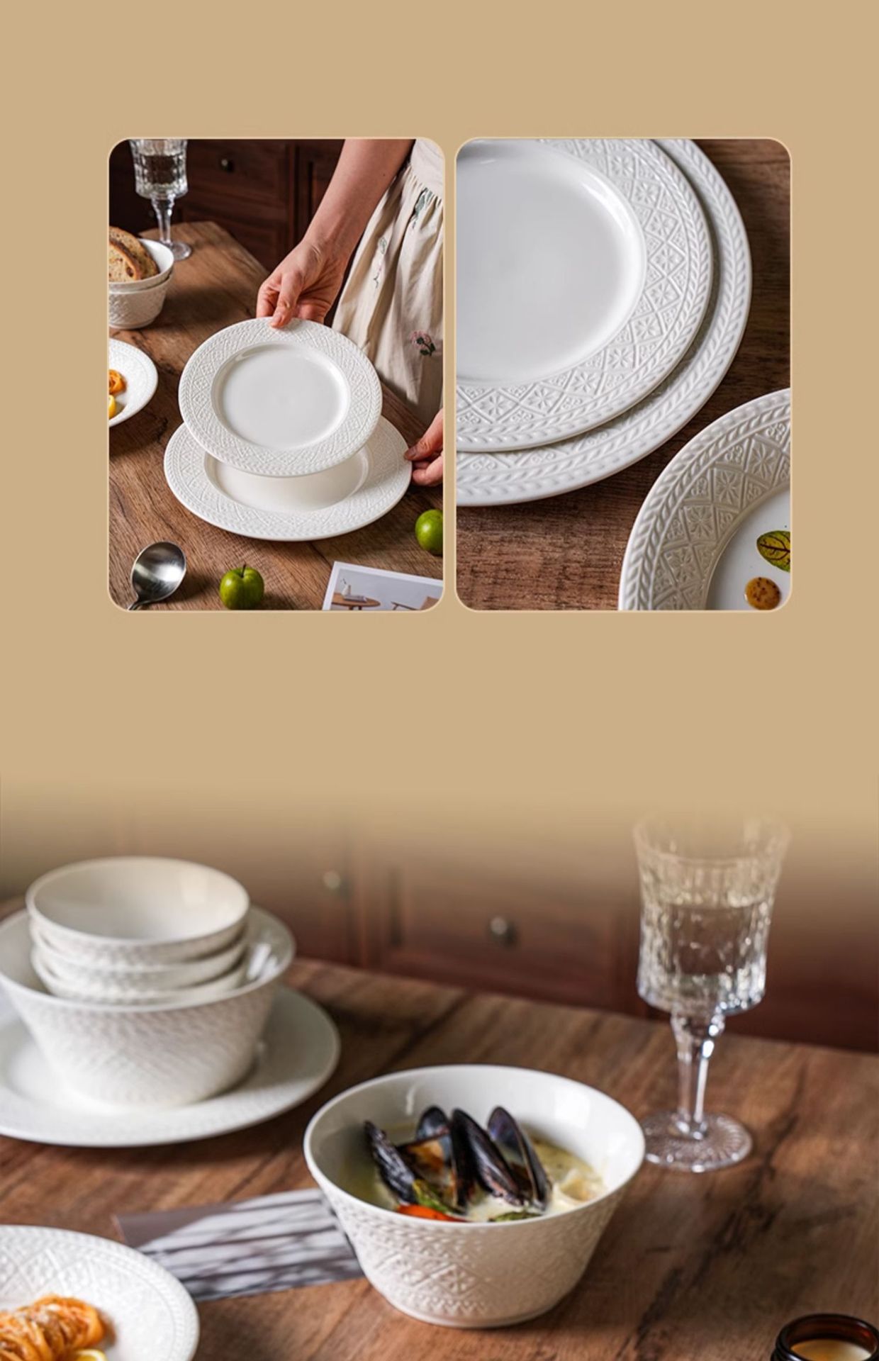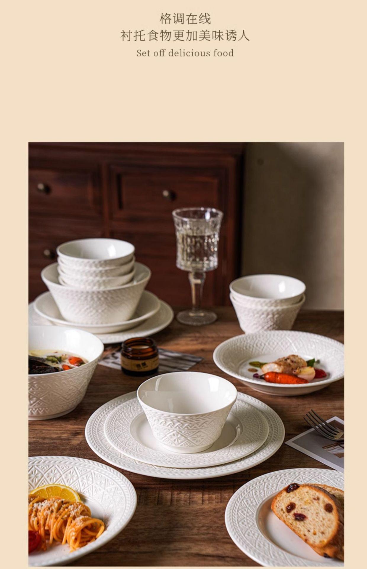 Vajilla Blanca en Relieve Combinación de Tazón de Arroz de Cerámica para el Hogar 2025 Nuevo Tazón de Sopa Plato para Comida Occidental Plato para Verduras Plato para Pescado
