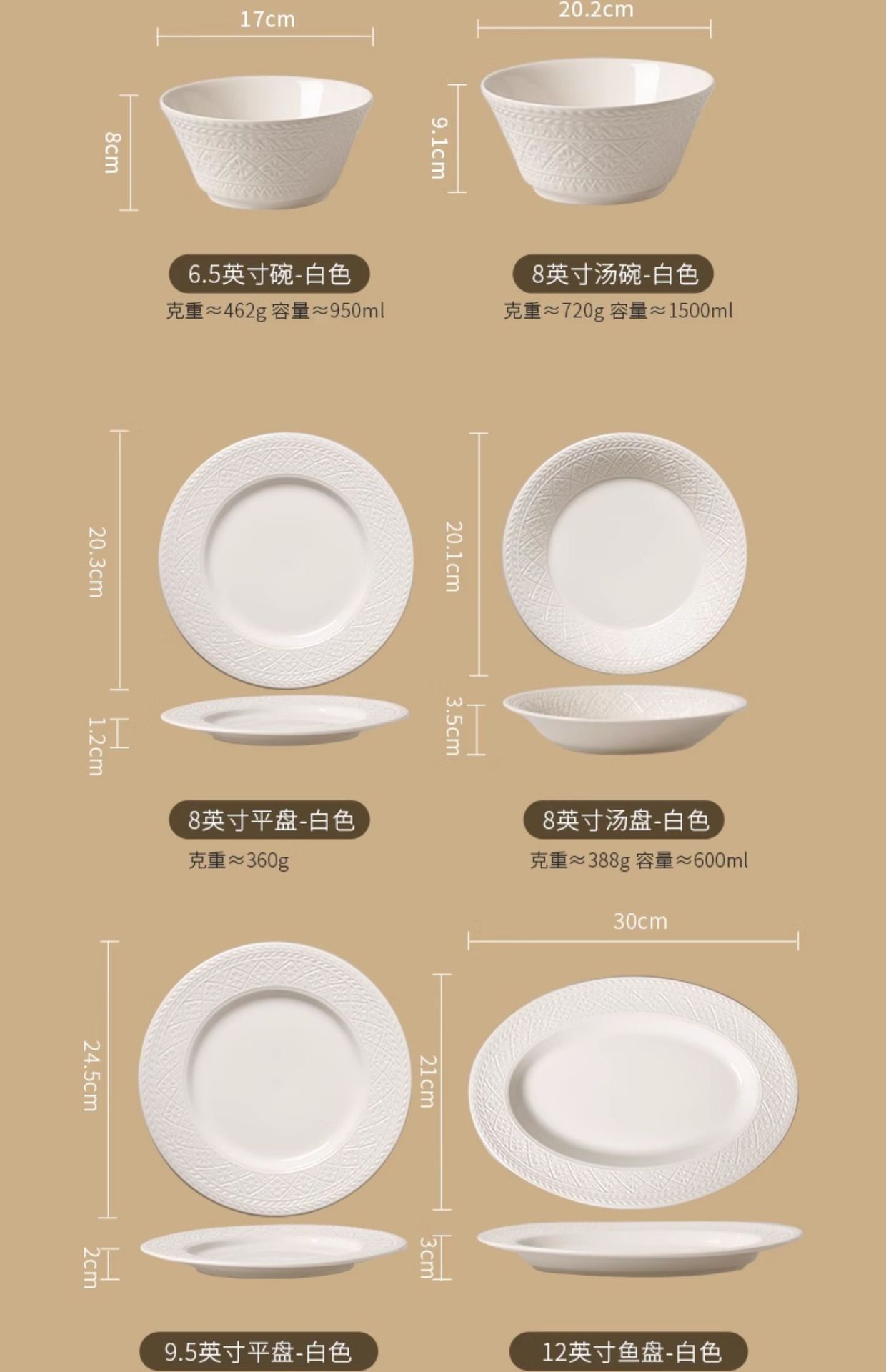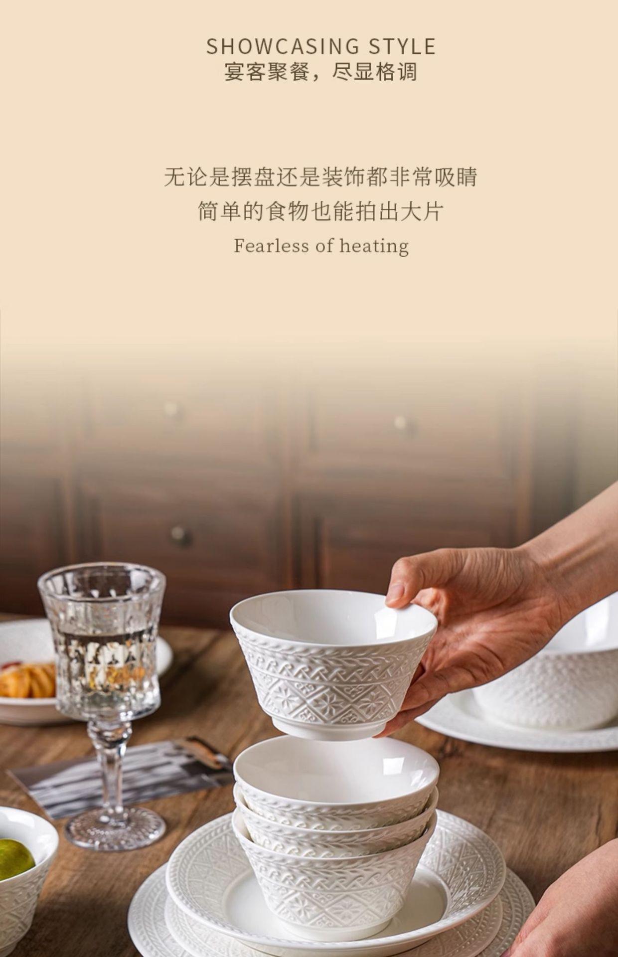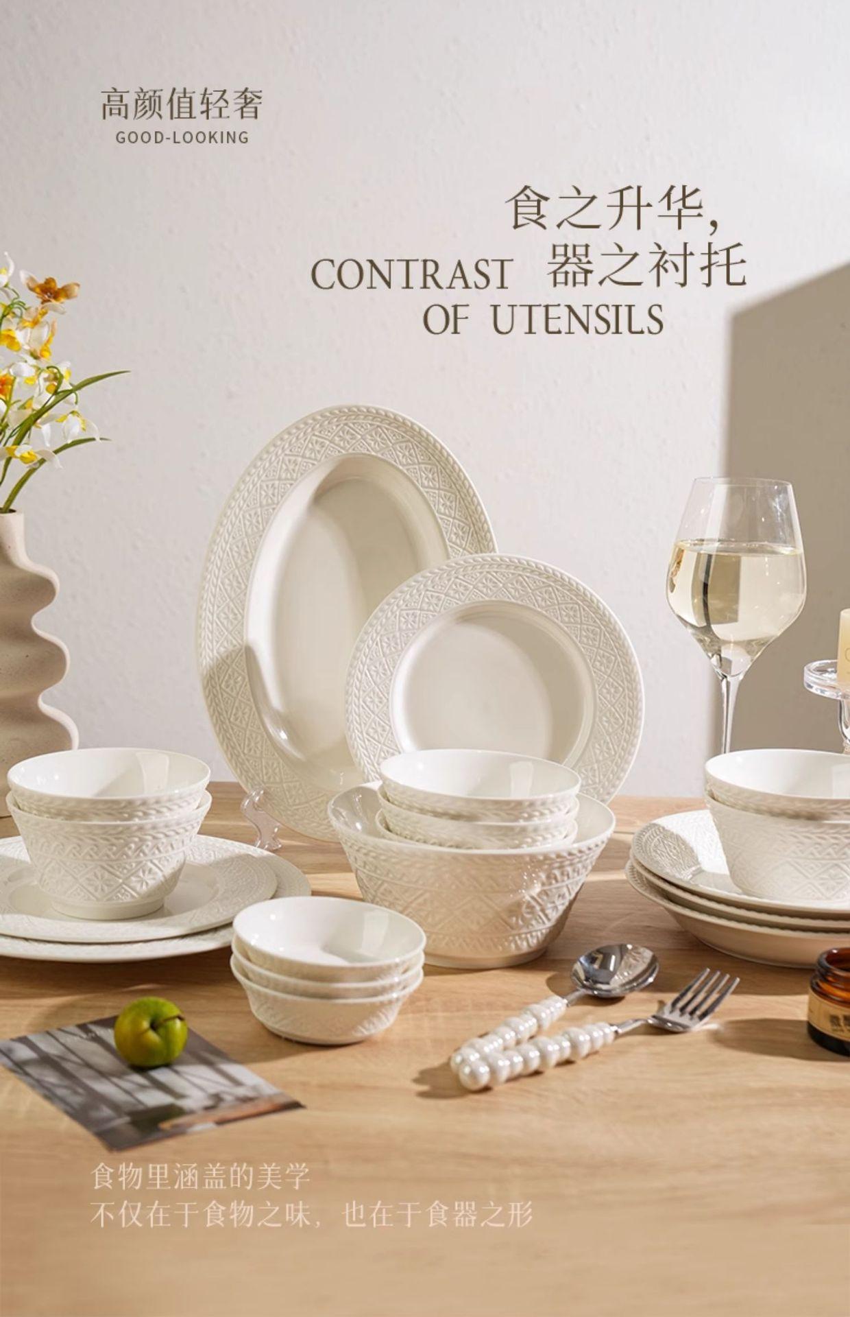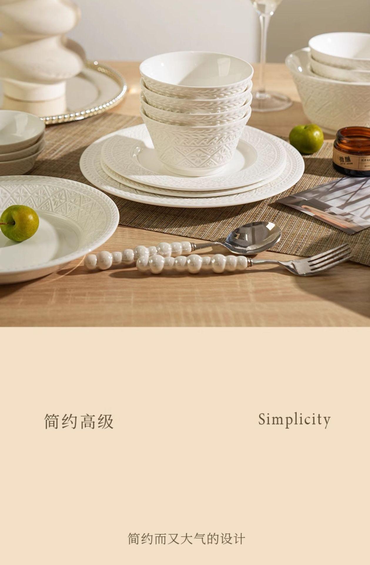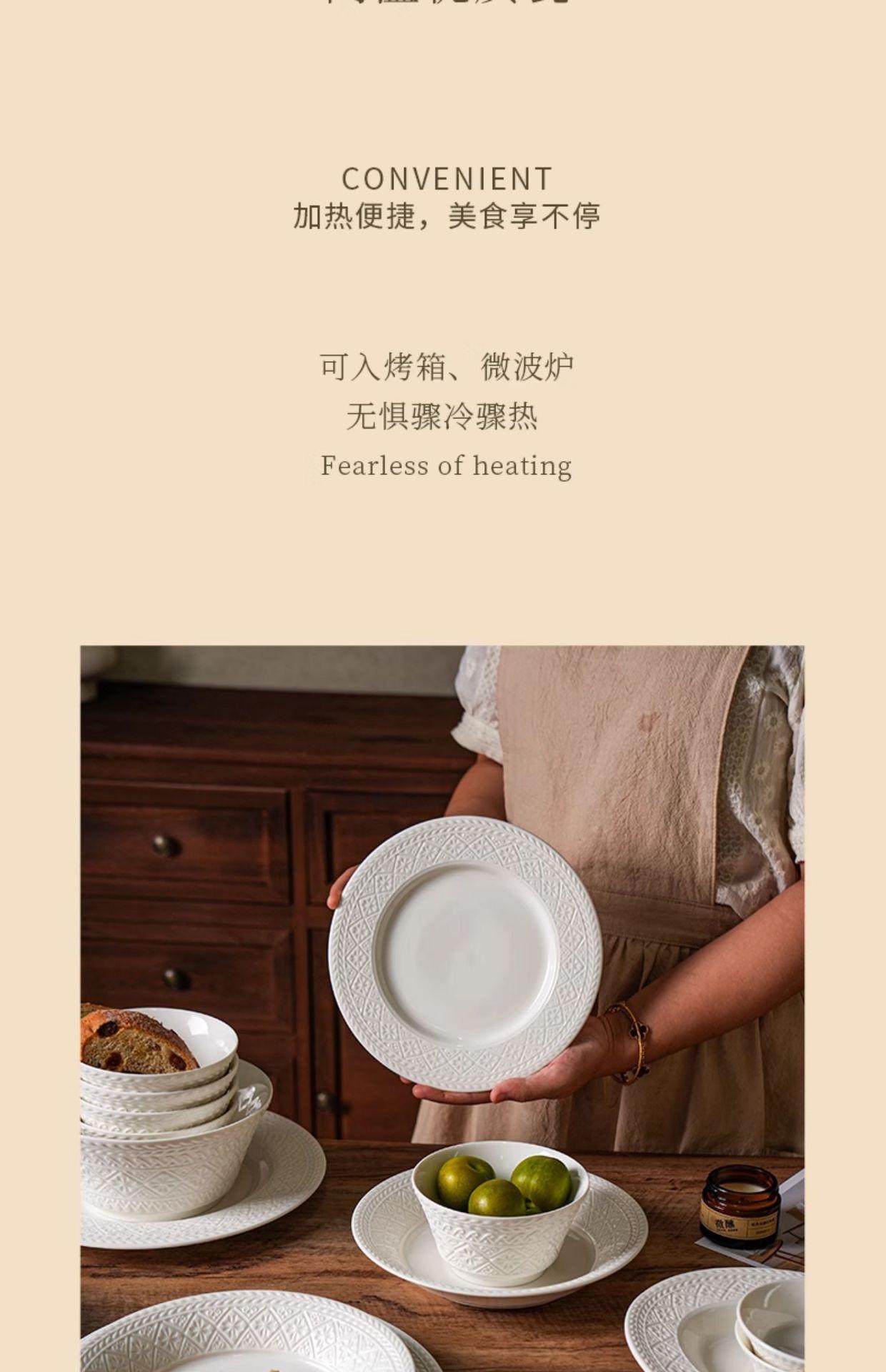 Vajilla Blanca en Relieve Combinación de Tazón de Arroz de Cerámica para el Hogar 2025 Nuevo Tazón de Sopa Plato para Comida Occidental Plato para Verduras Plato para Pescado