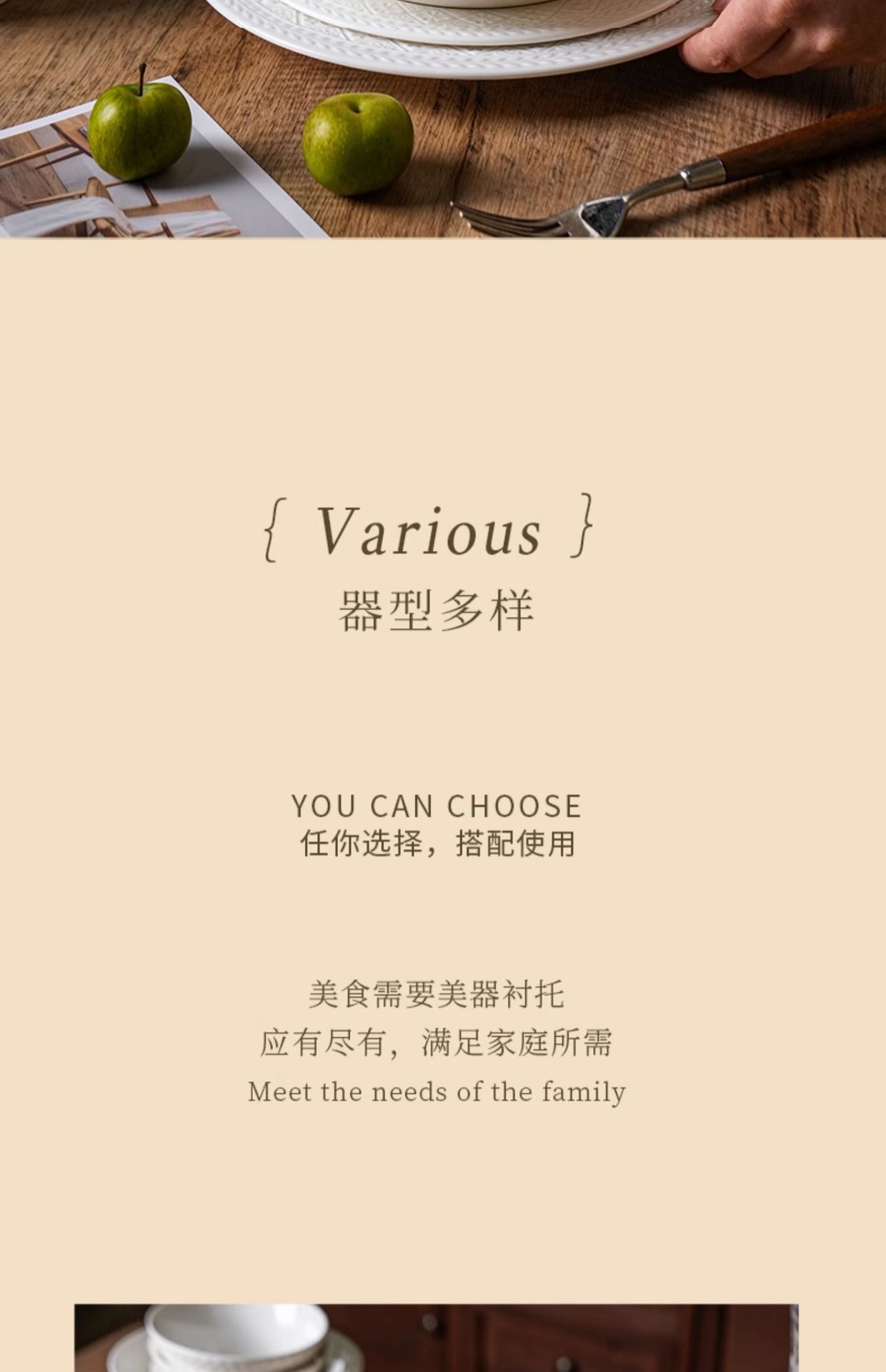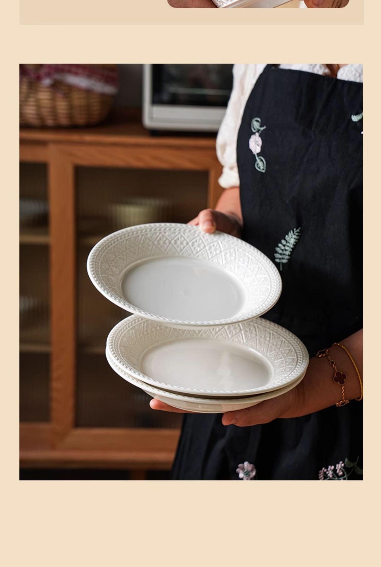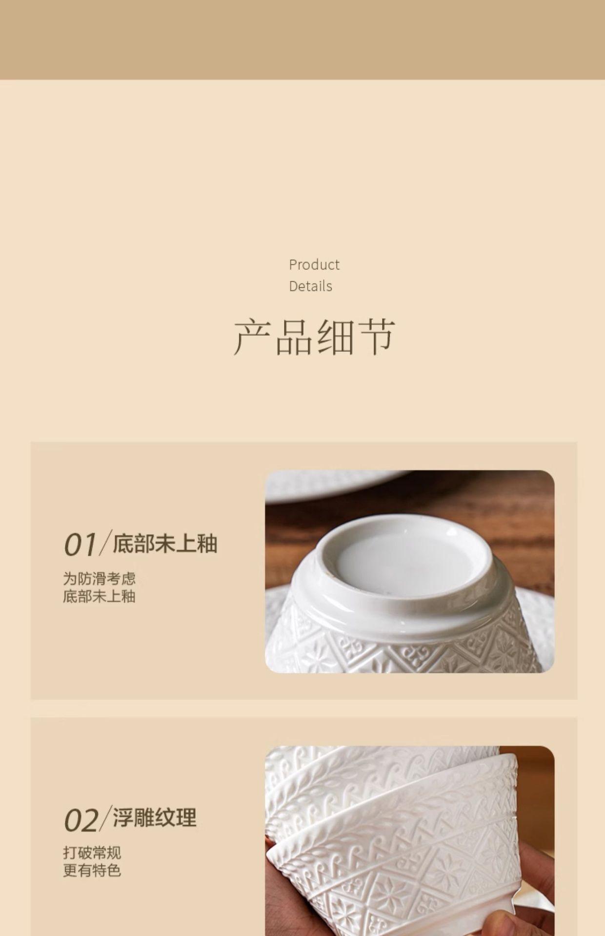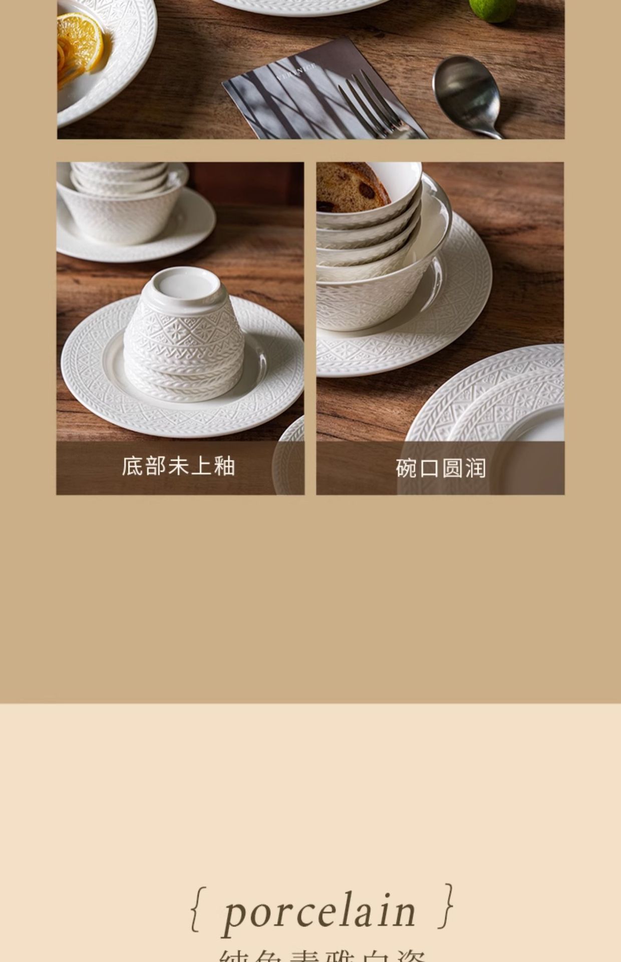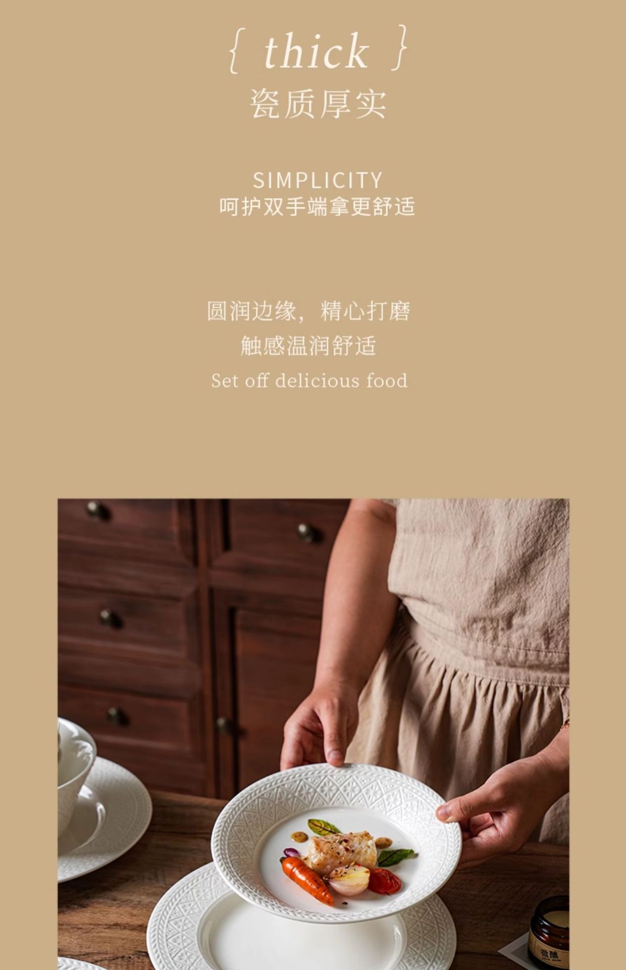 Vajilla Blanca en Relieve Combinación de Tazón de Arroz de Cerámica para el Hogar 2025 Nuevo Tazón de Sopa Plato para Comida Occidental Plato para Verduras Plato para Pescado