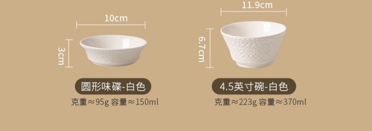 4.5inch bowl-white, 6.5inch bowl-white, 8inch soup bowl-white, 8inch flat plate-white, 8inch soup tray-white, ...