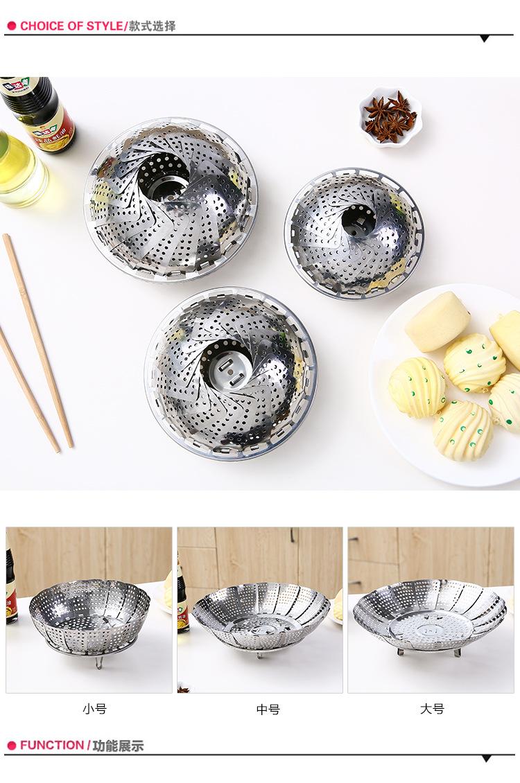 Rejilla de vapor plegable de acero inoxidable, bandeja de vapor retráctil multifuncional para el hogar.