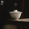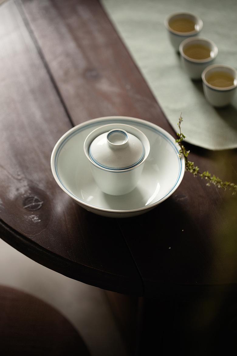 Crepúsculo Cang Zhai antiguo verde doble línea cubierta Tazón Juego de Té Kung Fu Tazón con tapa hecho a mano azul y blanco pintado a mano neumático delgado no quema la mano tetera