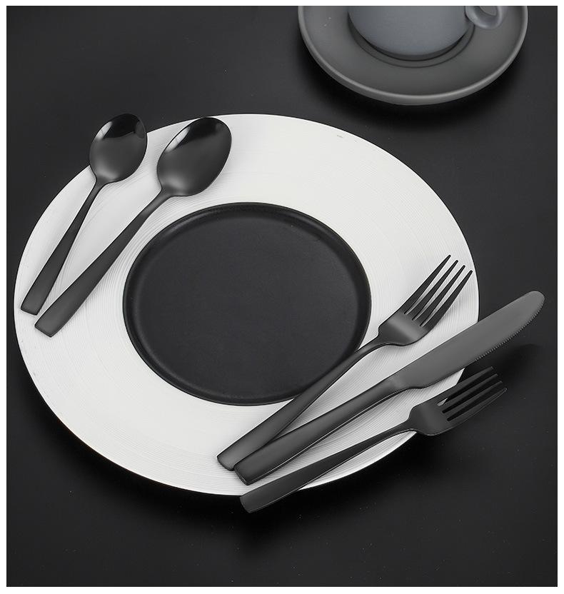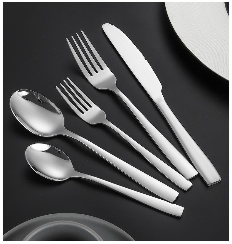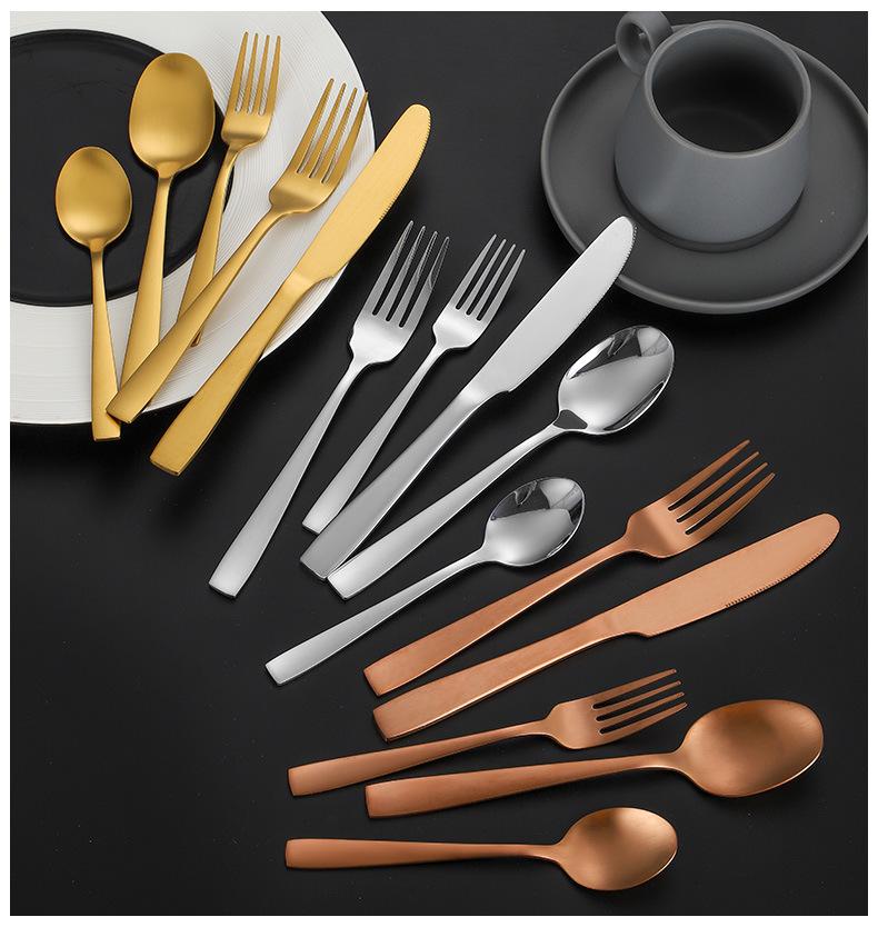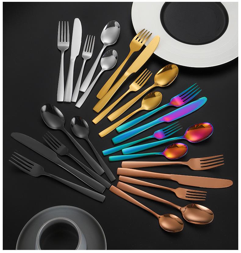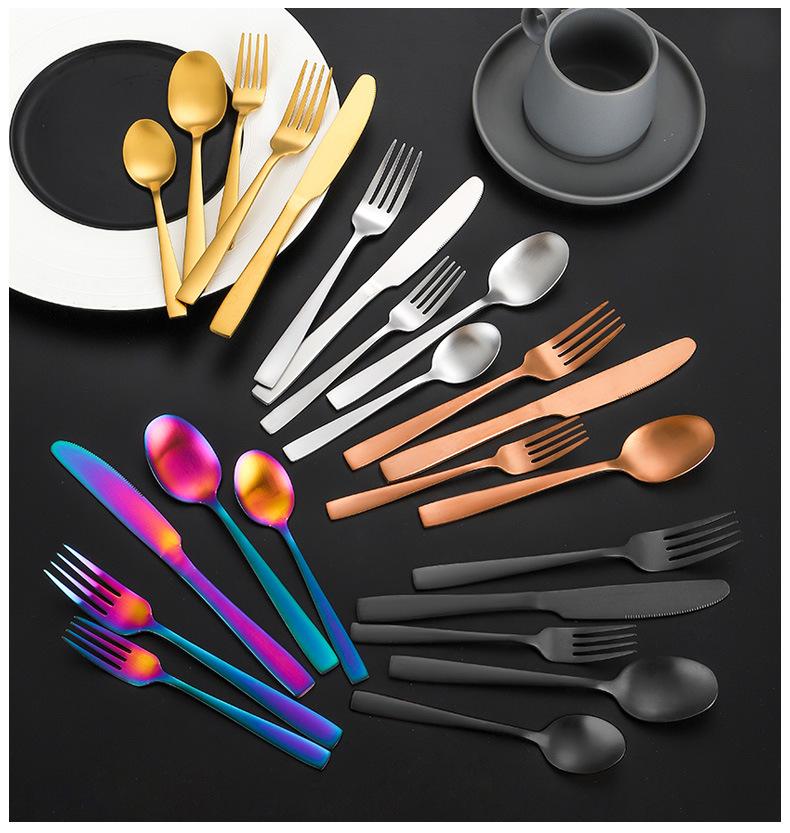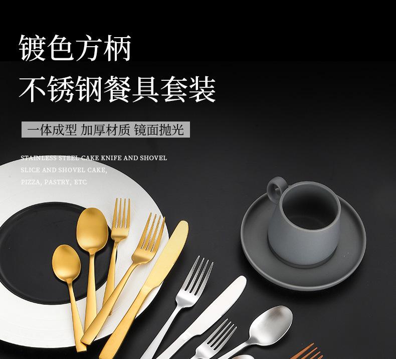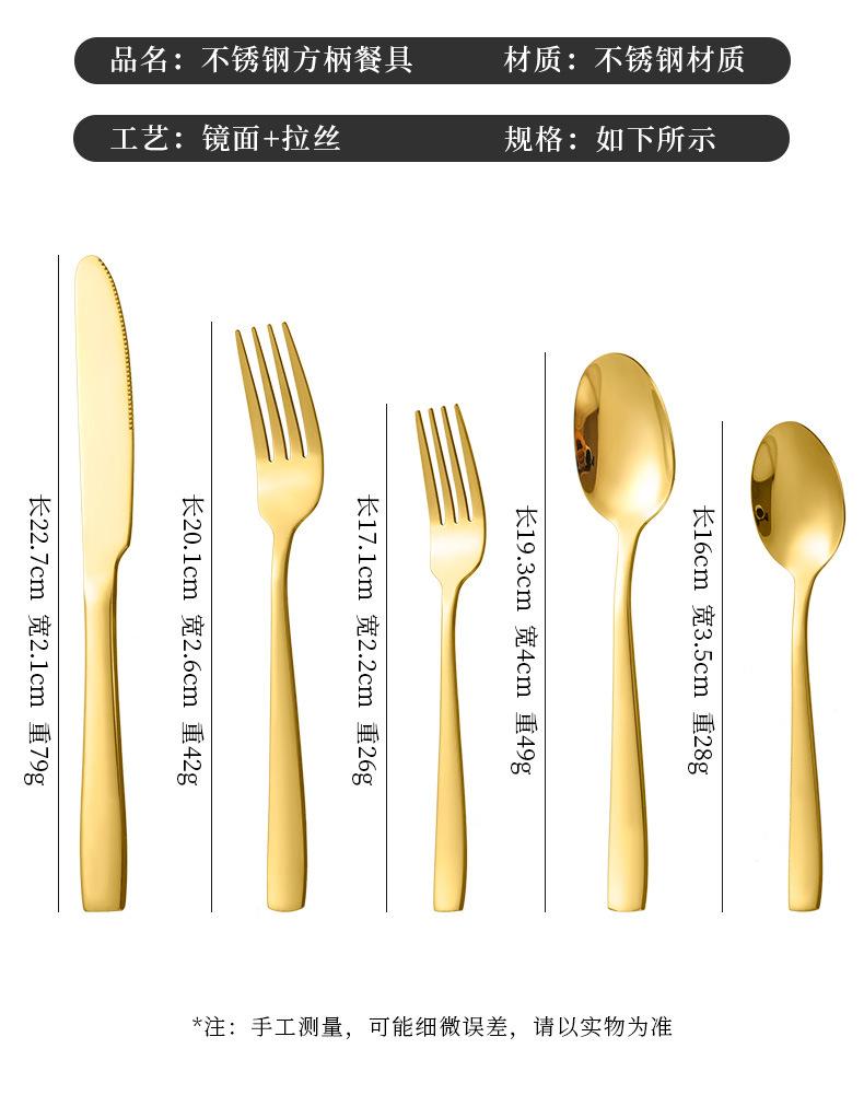Set de Cubiertos de Acero Inoxidable Transfronterizo, Cuchillo, Tenedor y Cuchara de Mango Cuadrado, Vajilla Occidental para Postre, Cuchara y Tenedor, Juego de 5 Piezas para Hotel y Hogar, Chapado en Titanio