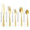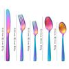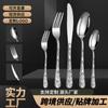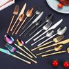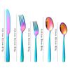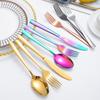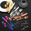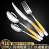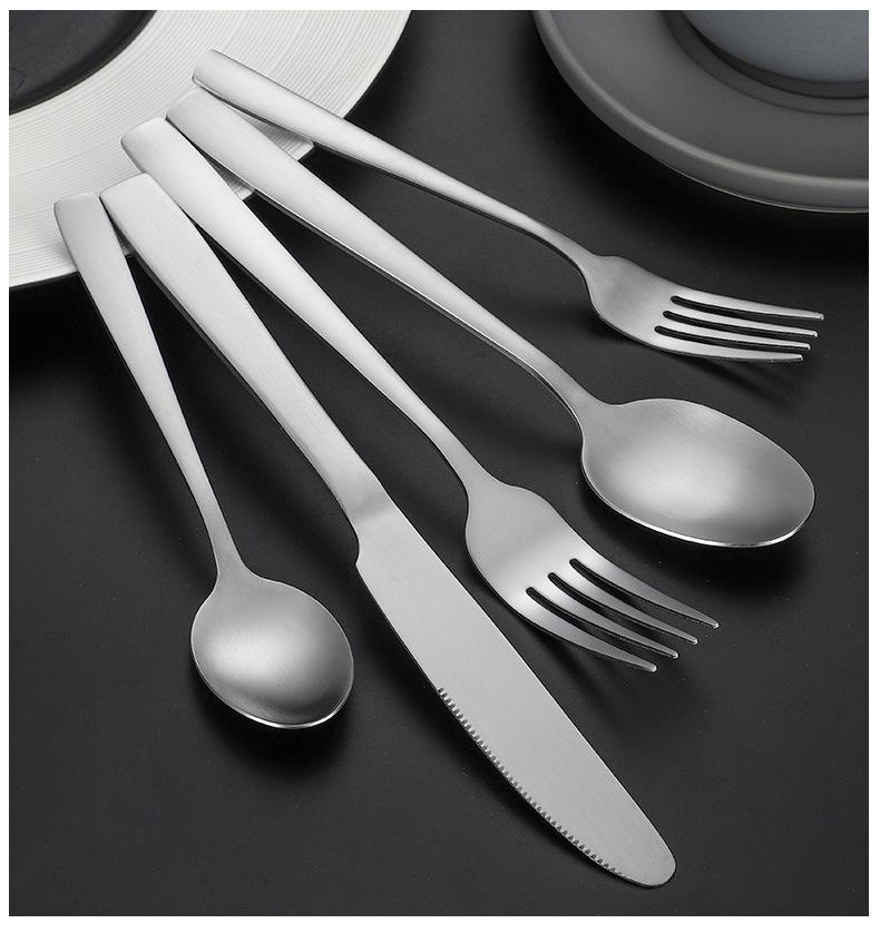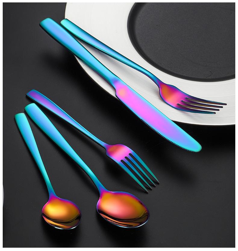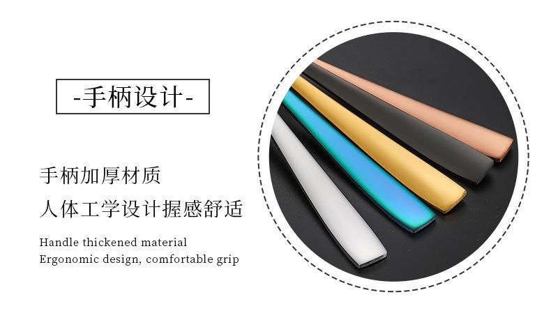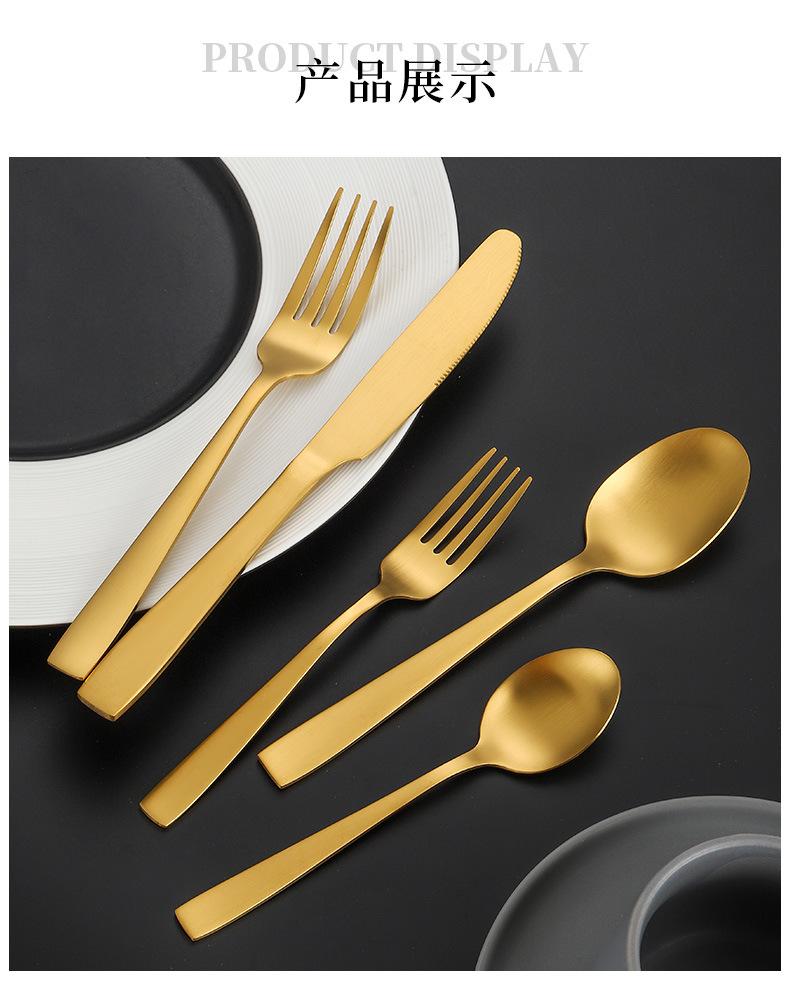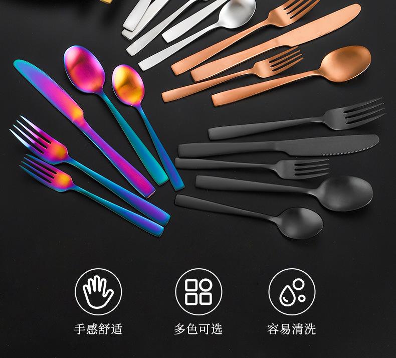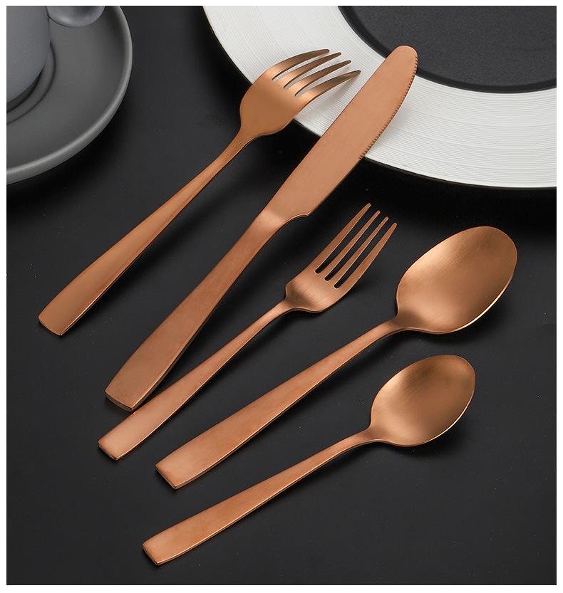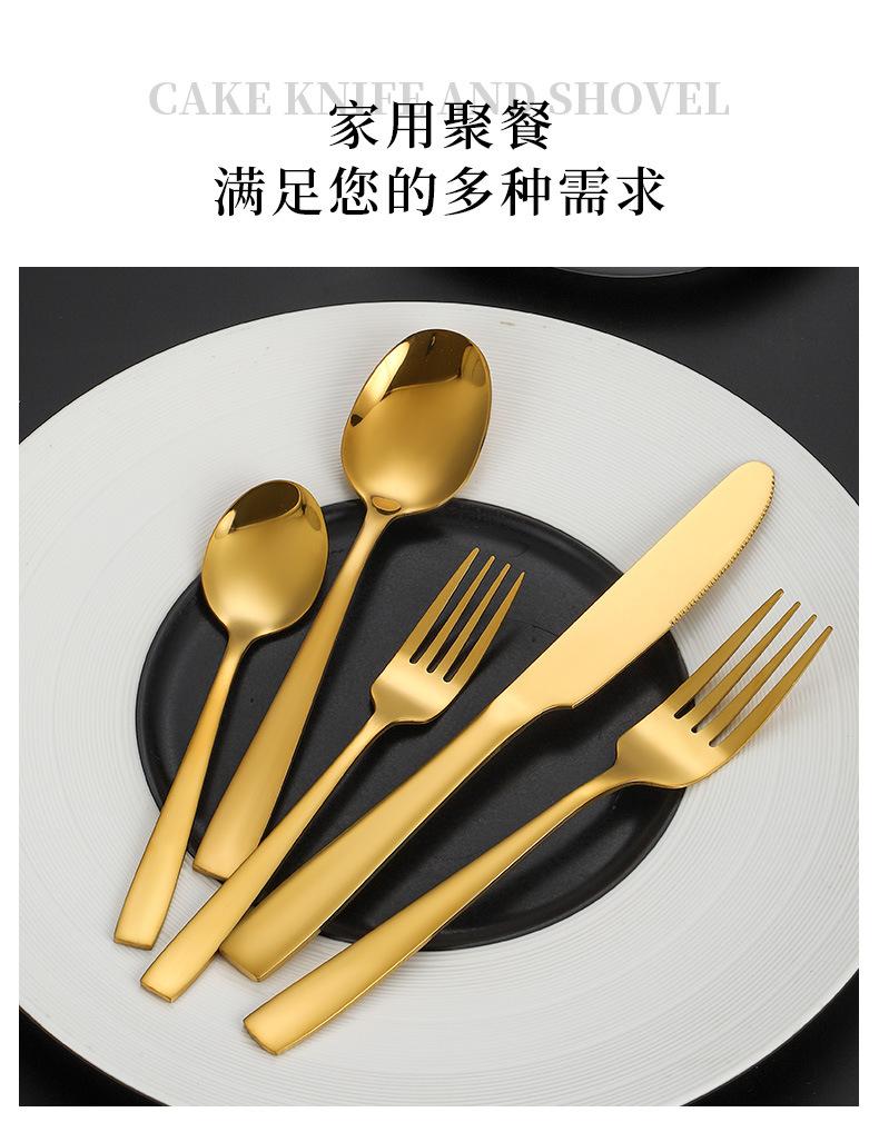 Set de Cubiertos de Acero Inoxidable Transfronterizo, Cuchillo, Tenedor y Cuchara de Mango Cuadrado, Vajilla Occidental para Postre, Cuchara y Tenedor, Juego de 5 Piezas para Hotel y Hogar, Chapado en Titanio