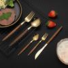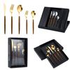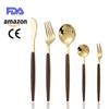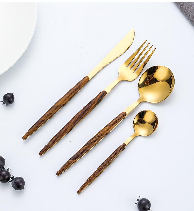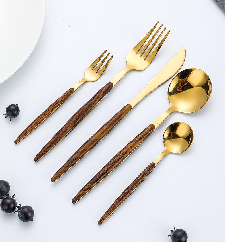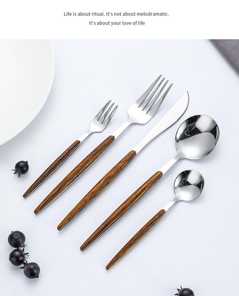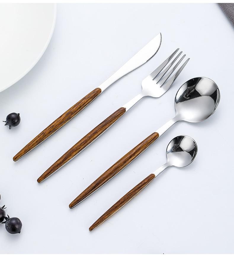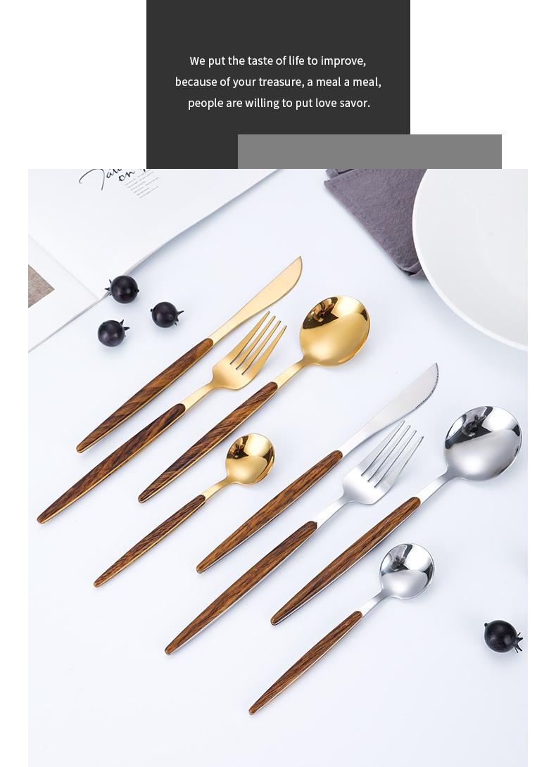 Juego de vajilla de acero inoxidable 430 portugués con mango de clip de madera de imitación, cuchillo y tenedor para carne de acero inoxidable, juego de vajilla de comida occidental.