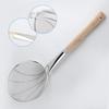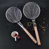 Colador de acero inoxidable de suministro directo, suministros de cocina para hoteles, línea de fugas, mango de madera, malla reforzada, filtro de malla grande