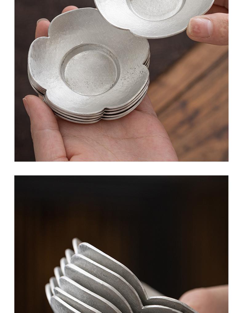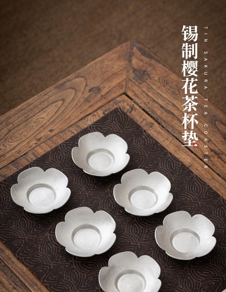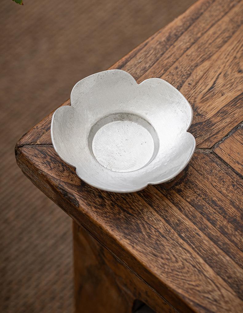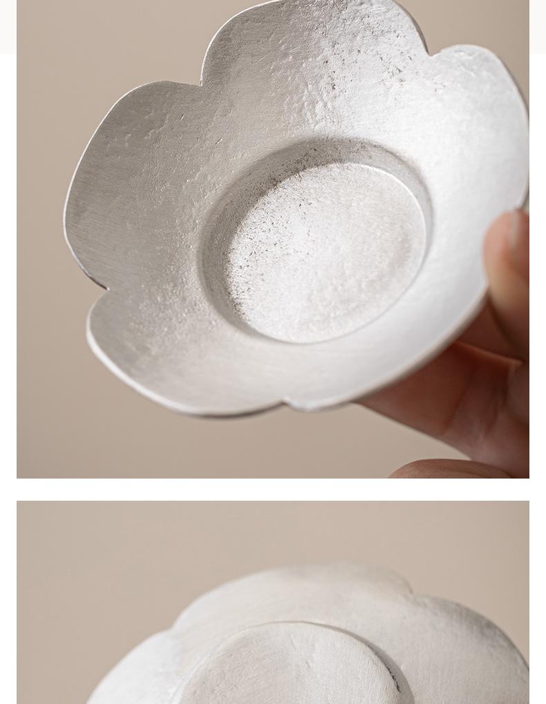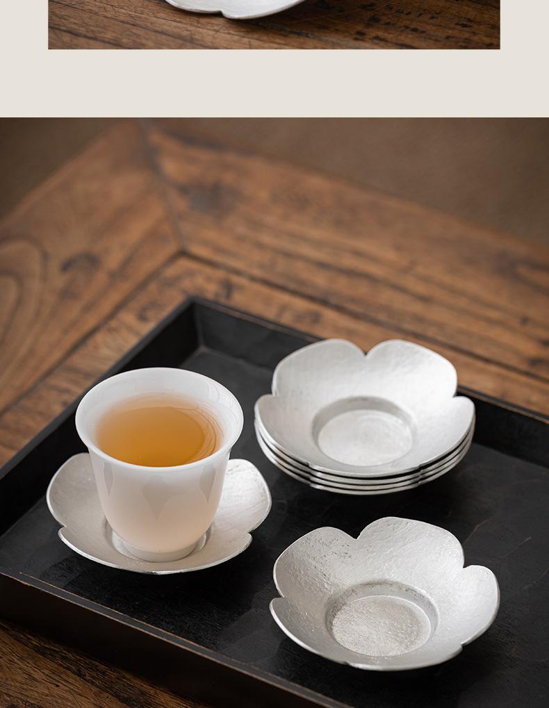 Portavasos de Flor de Estaño Puro, Tapete para Taza de Té, Soporte para Té, Accesorios para Ceremonia del Té, Tapete Aislante de Calor para Taza y Platillo, Pequeño Soporte para Té Hecho a Mano, Estilo Zen Vintage