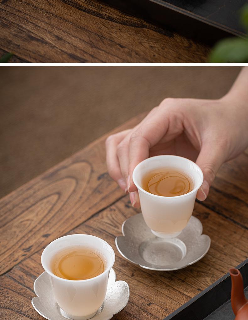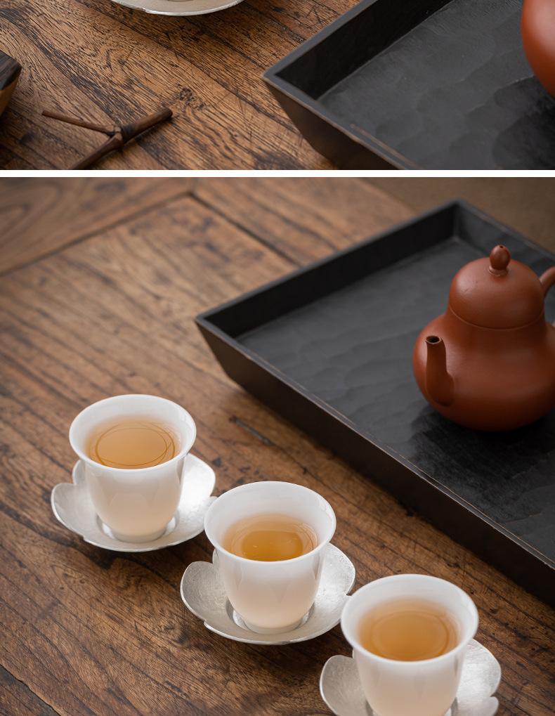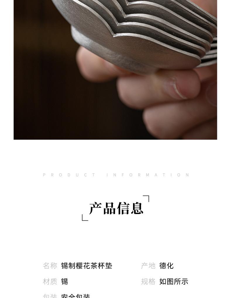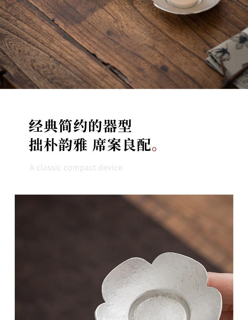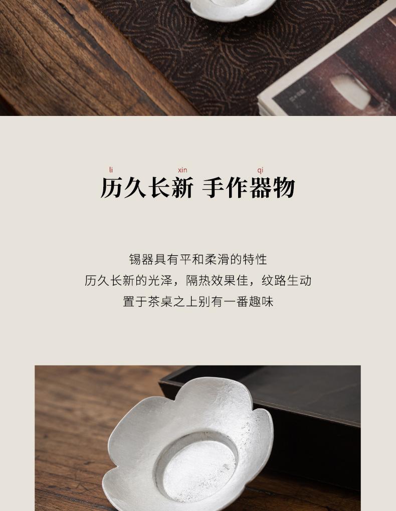 Portavasos de Flor de Estaño Puro, Tapete para Taza de Té, Soporte para Té, Accesorios para Ceremonia del Té, Tapete Aislante de Calor para Taza y Platillo, Pequeño Soporte para Té Hecho a Mano, Estilo Zen Vintage