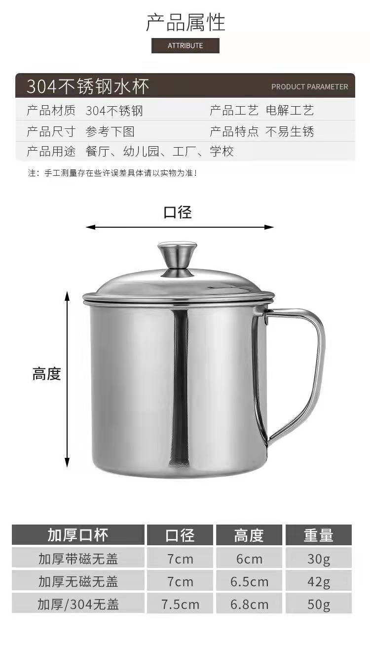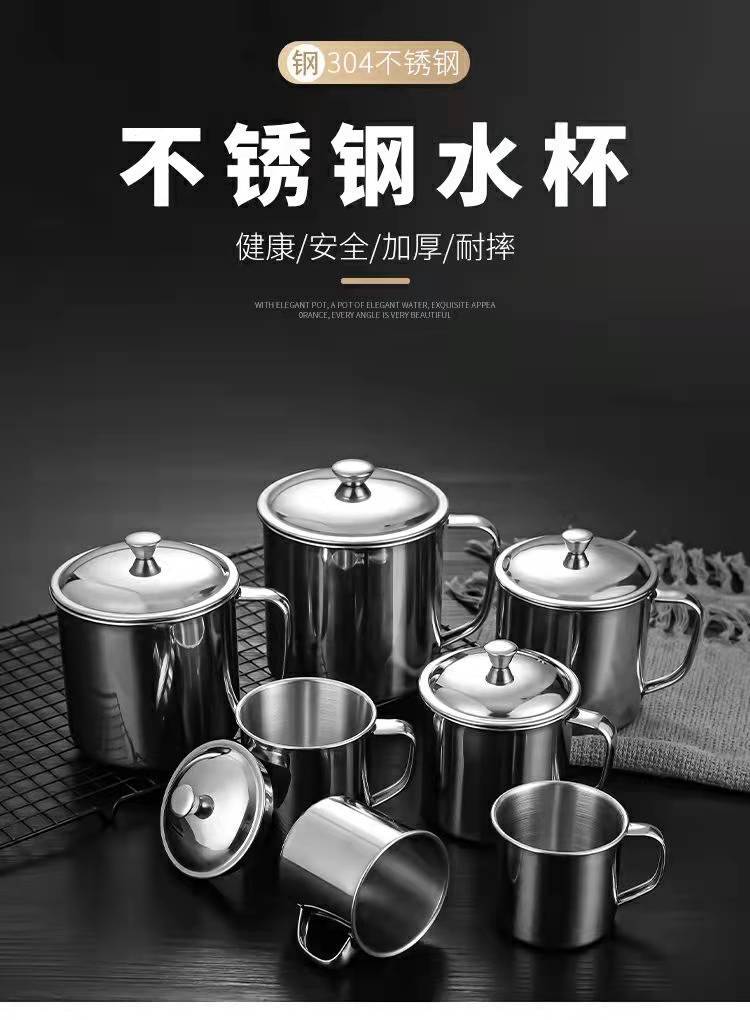 Compra Taza de agua de acero inoxidable 304, de una sola capa, para estudiantes con asa, para niños de jardín de infantes, taza de té con tapa al por mayor en Joom.pro